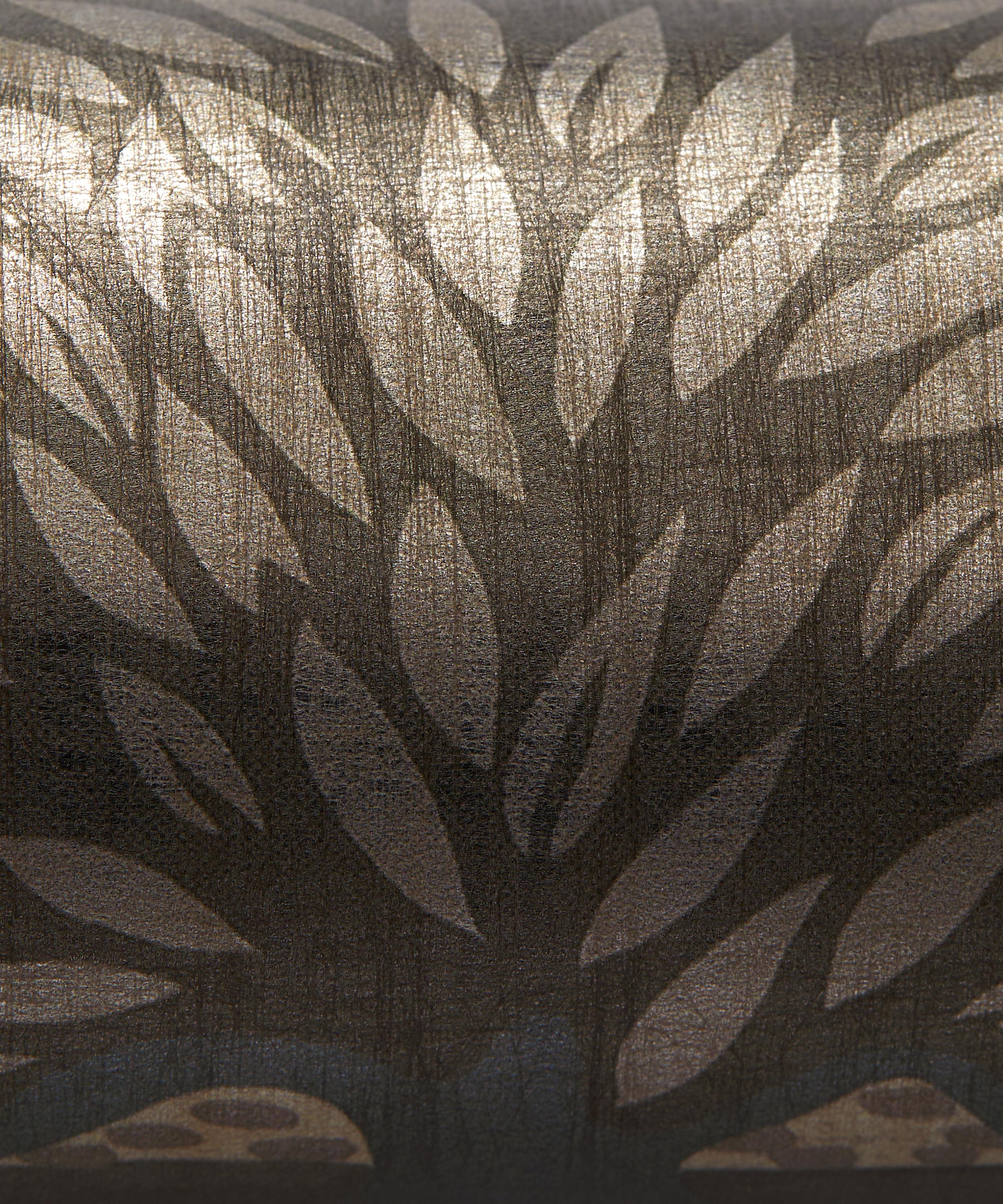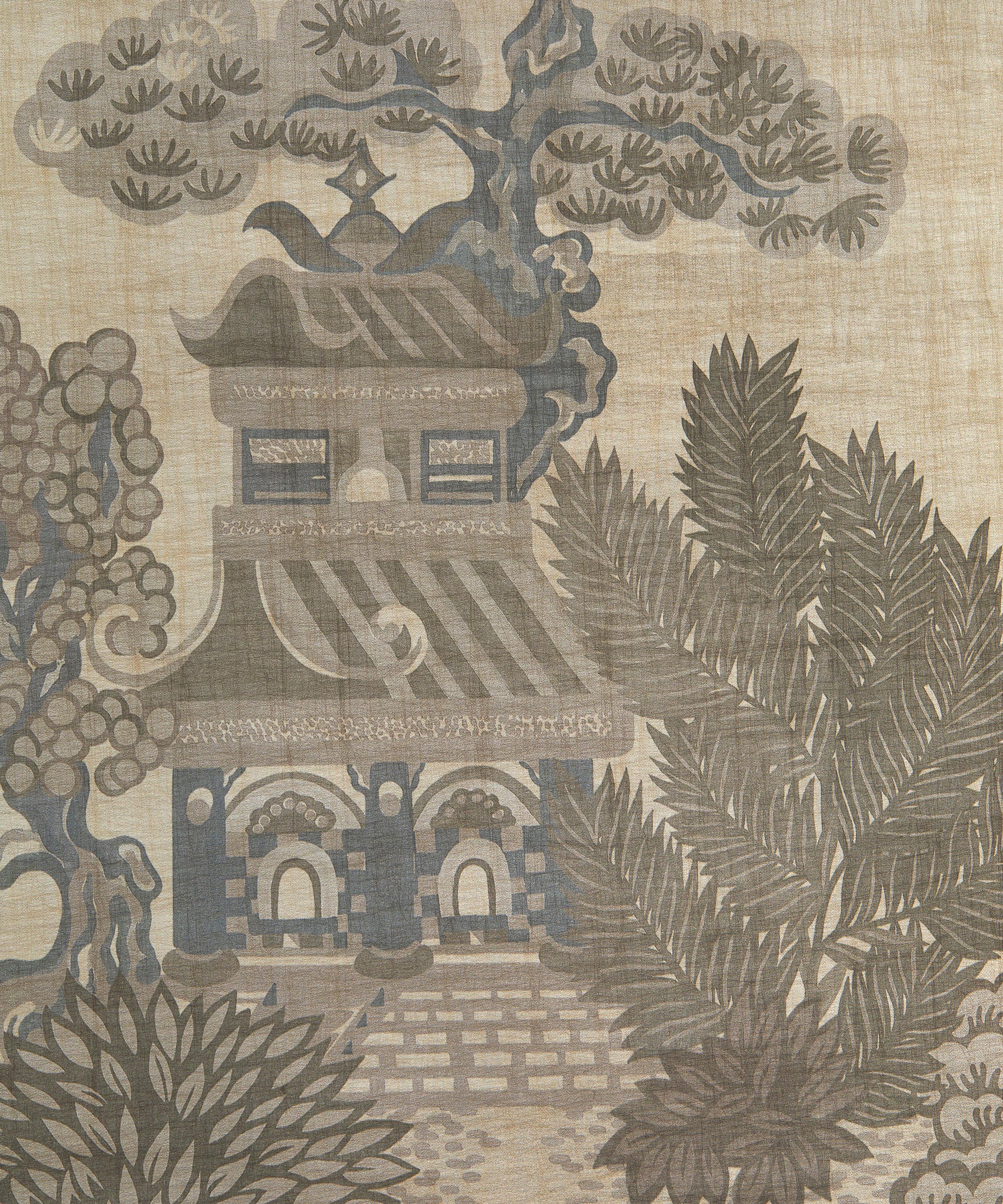 Floating Palace is a reimagined print from the 1970s. Originally a furnishing fabric, it now incorporates new stylistic elements and tonal palettes with intriguing islands filled with lush gardens, oversized lotus flowers, floating sampans, and birds in flight. Inspired by traditional Chinoiserie wallpaper, it’s printed on a textural fibrous metallic base providing richness and depth reminiscent of antique lacquerware and delicate glass.
