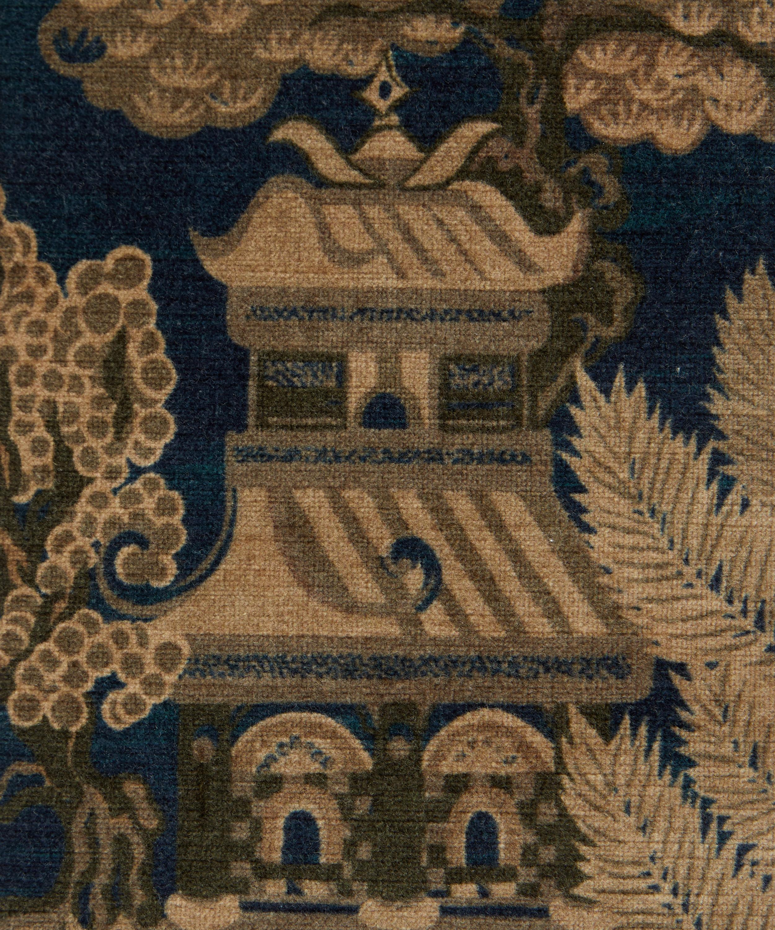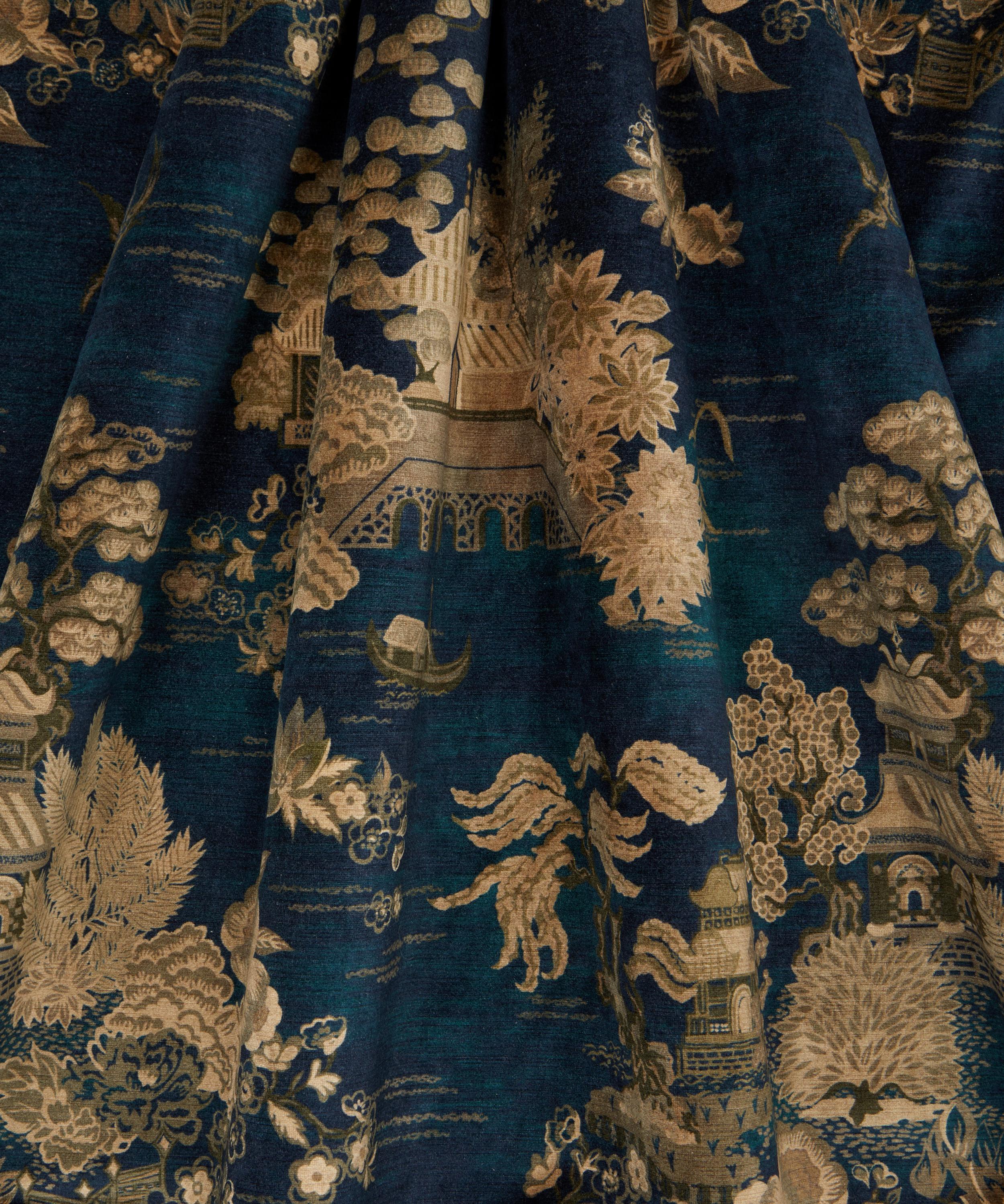 The Botanical Atlas fabric collection celebrates our historic lineage of craftsmanship and design through a cross-pollination of styles and visual narratives. Richly layered embroideries, opulent textured weaves, and contemporary printed velvets and linens are juxtaposed with a selection of elegant stripes and mesmerising geometrics - expertly crafted using traditional and cutting-edge techniques in Italy, Belgium, and India. This magnificent landscape of Floating Pavilion was originally printed as a Liberty furnishing fabric during the 1970s.