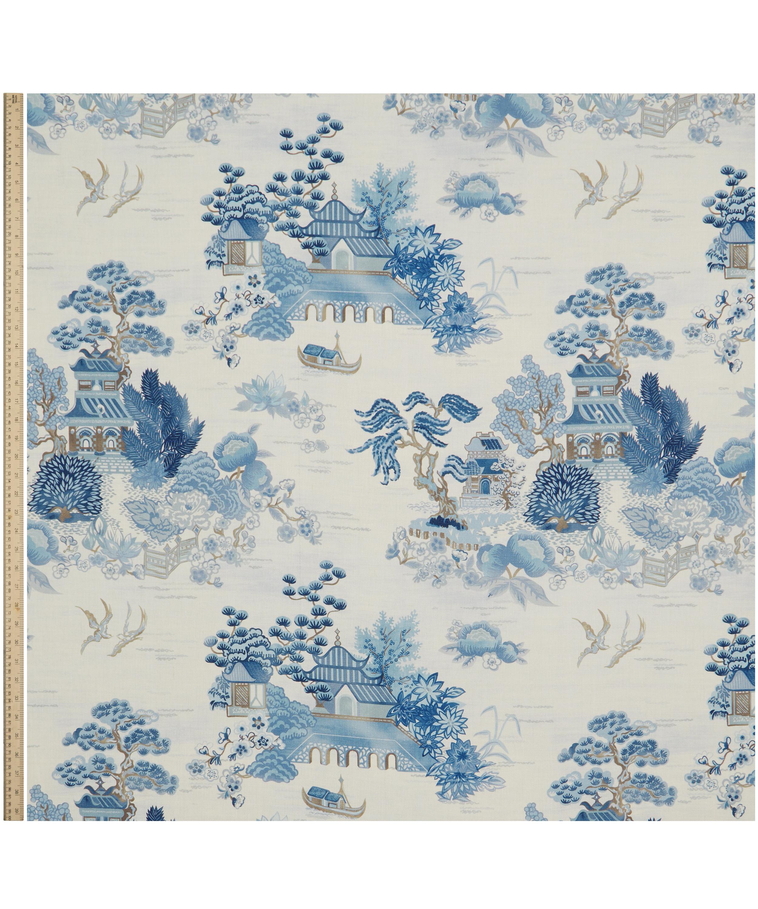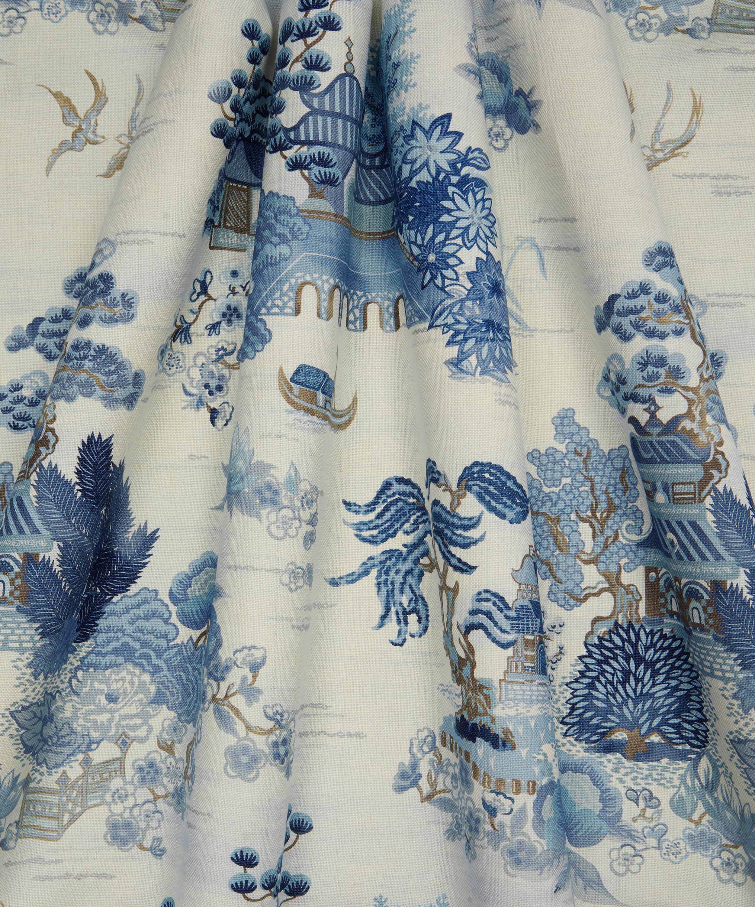 The Botanical Atlas fabric collection celebrates our historic lineage of craftsmanship and design through a cross-pollination of styles and visual narratives. Richly layered embroideries, opulent textured weaves, and contemporary printed velvets and linens are juxtaposed with a selection of elegant stripes and mesmerising geometrics - expertly crafted using traditional and cutting-edge techniques in Italy, Belgium, and India. The magnificent landscapes of Floating Pavilion were originally printed as a Liberty furnishing fabric during the 1970s.