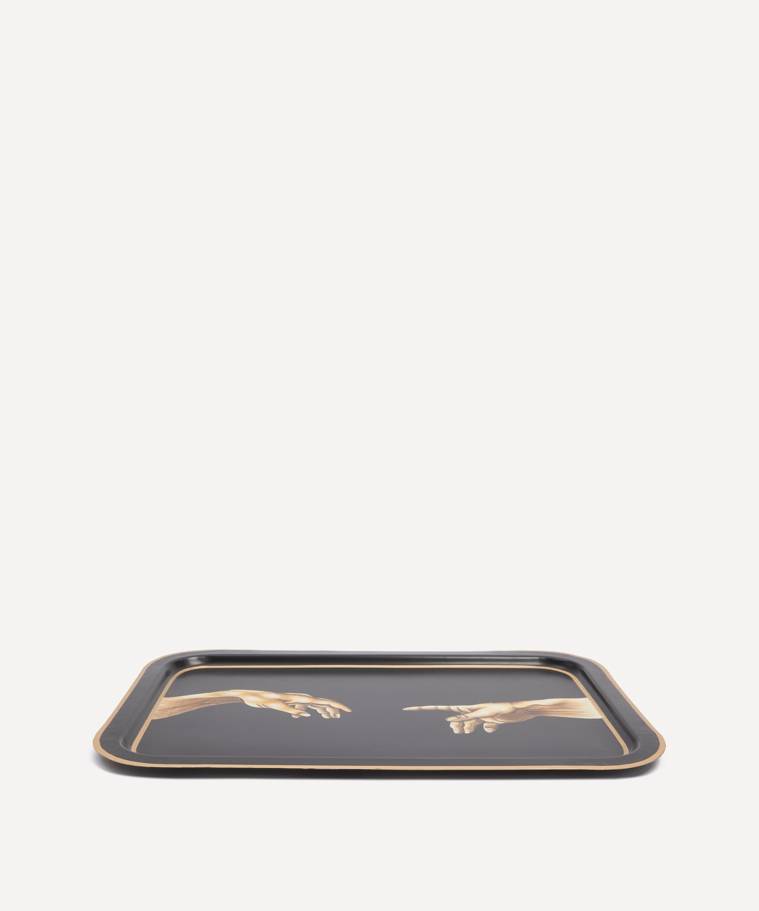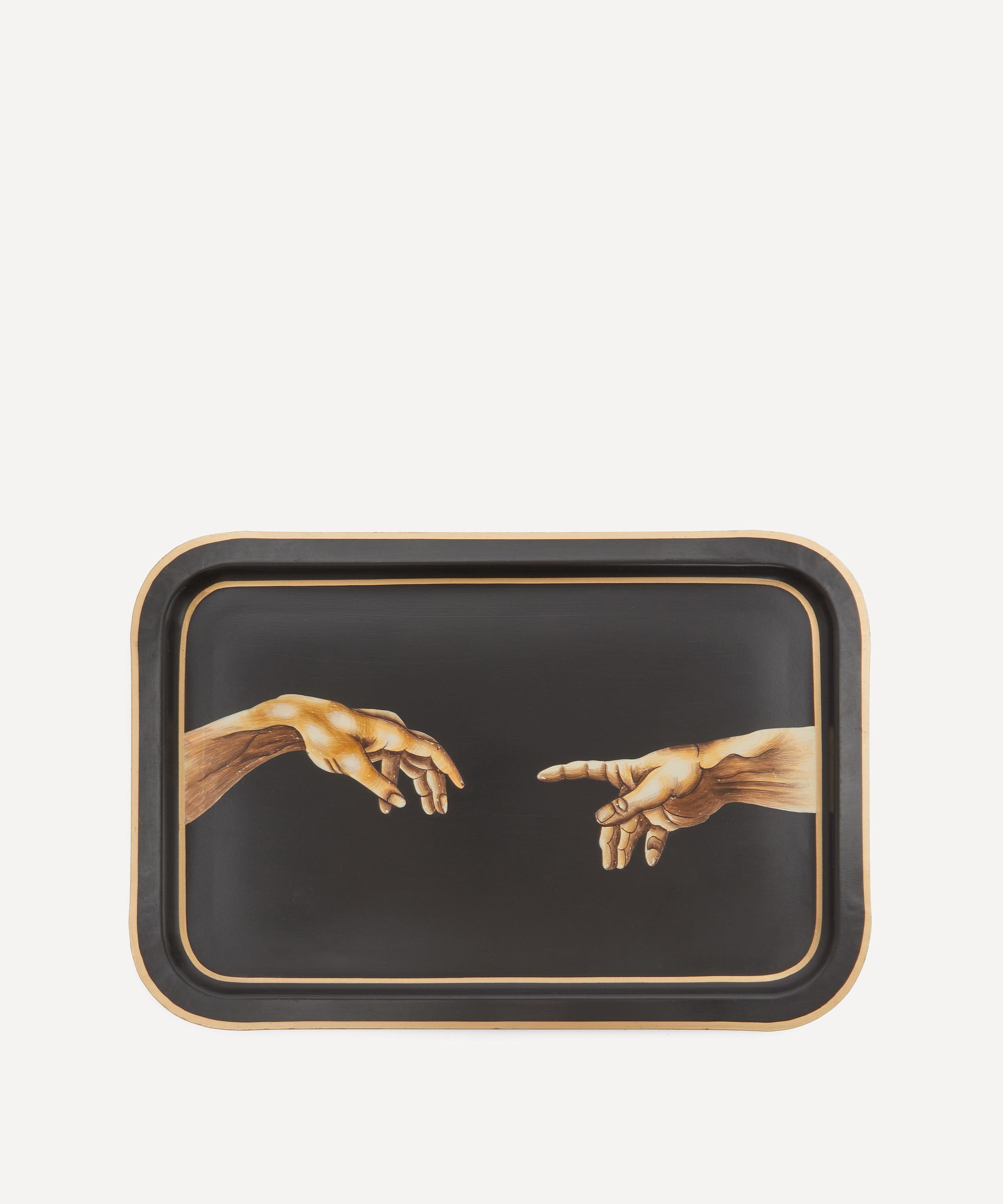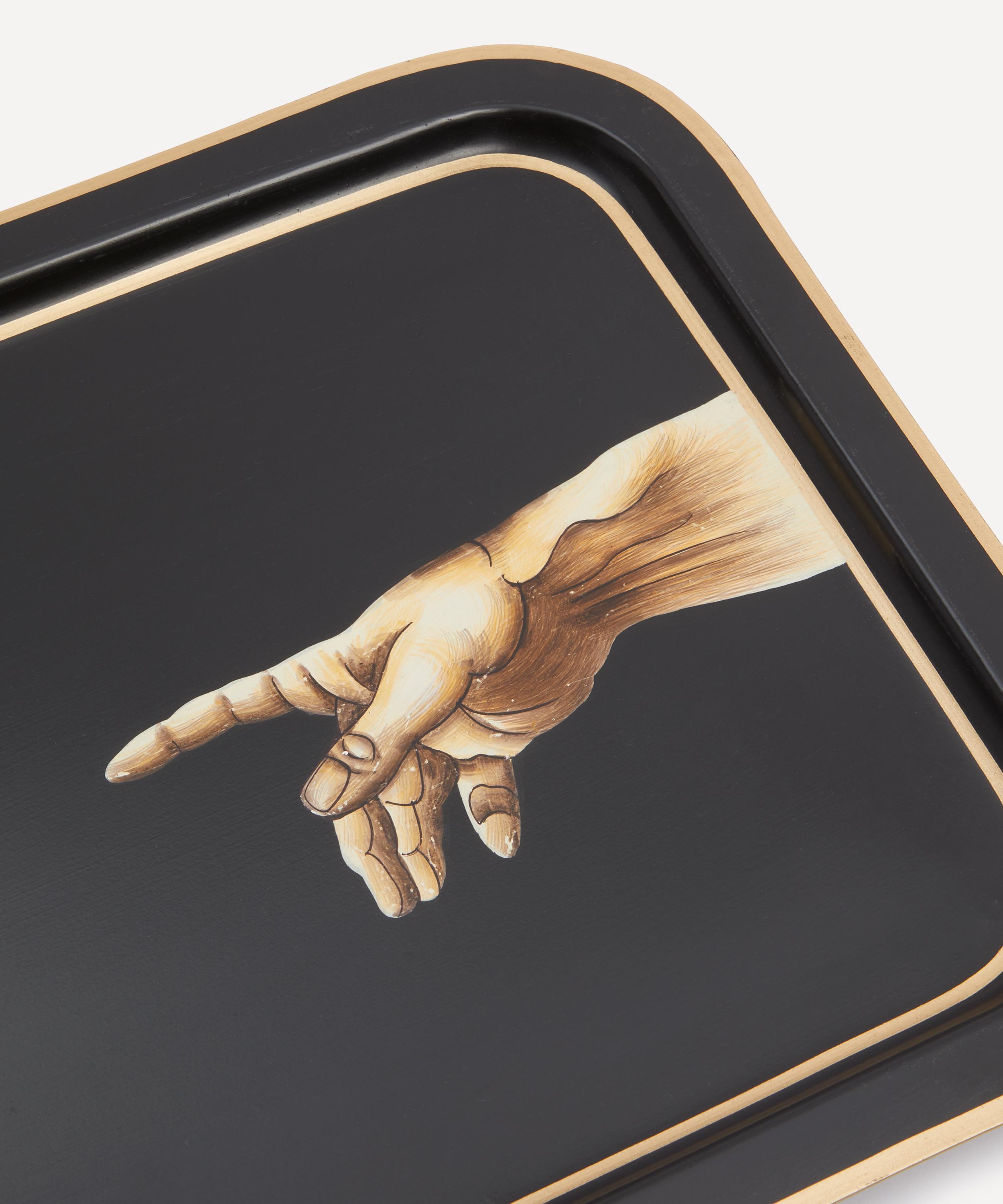 Part of Les Ottomans’ Flora collection, this hand-painted iron tray unites the rich hues and nature-inspired motifs that continue to inform the brand’s eclectic homeware offering. Inspired by founder Bertrando di Renzo’s great love for the historical art and visual culture of Turkey, it is made from iron and hand-painted with a detailed hands of God and Adam motif. Use the tray for serving drinks and snacks or set it on a tabletop to display decorative candles and ornaments.