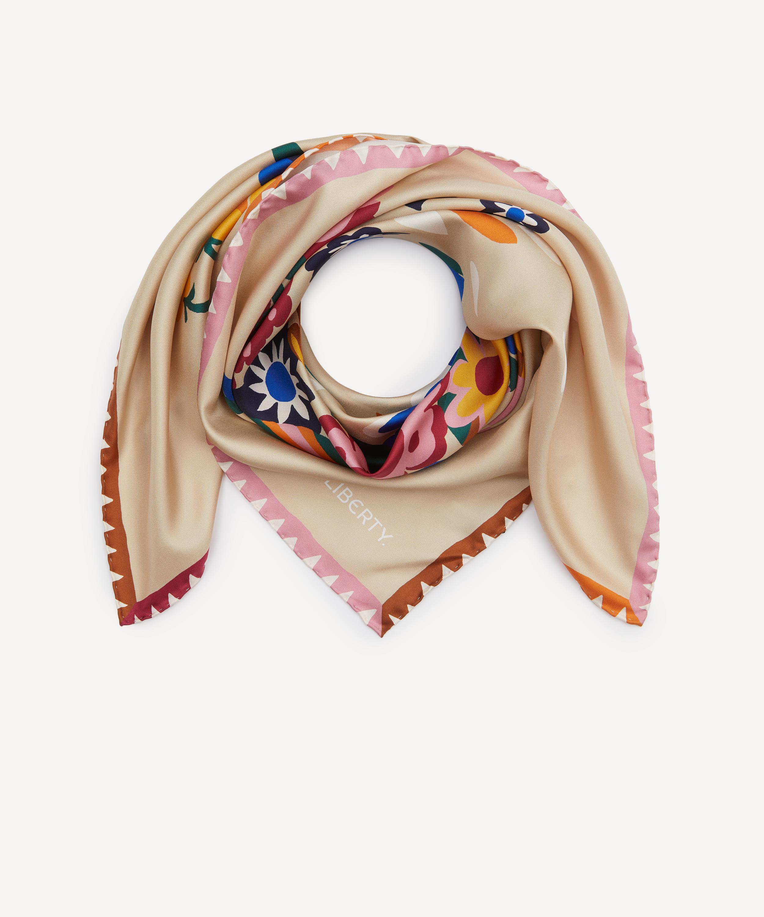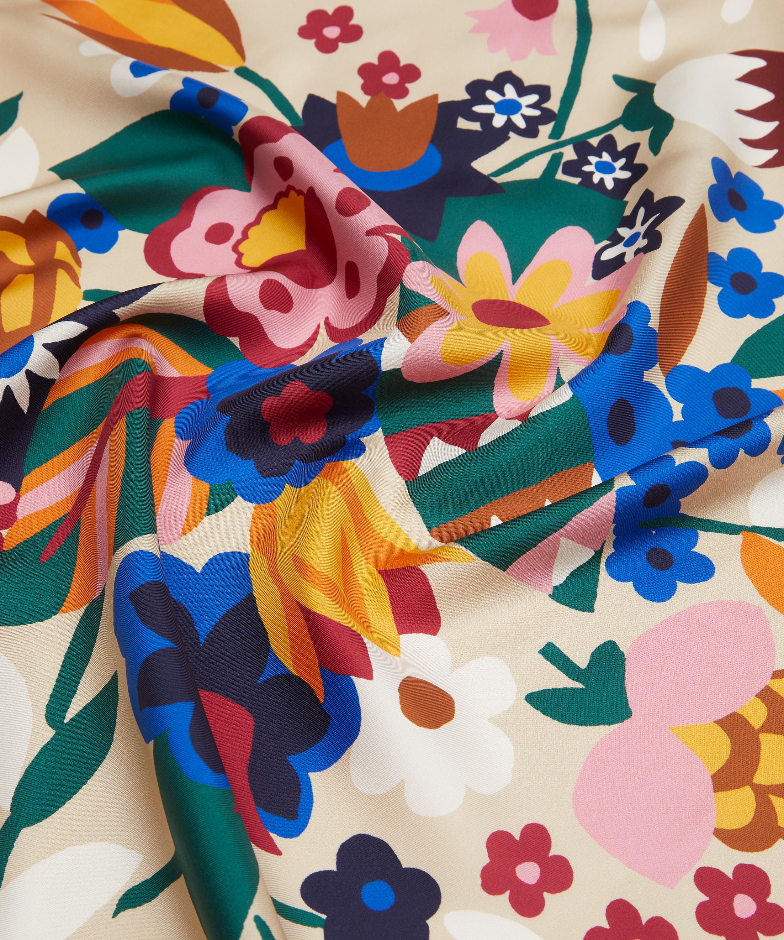 Meticulously crafted in Italy from a luxurious and ultra-soft silk twill fabric with hand-rolled hems, it’s characterised by our showstopping Floral Ballet print – a lively botanical featuring floral elements drawn from a 1966 Liberty scarf design, with a decadent free-spirited mood reminiscent of pop Art Deco patterns. Designed to stand the test of time, this versatile accessory staple will breathe new life into your wardrobe with its rich colouration and texture. Try draping it over neutral outerwear for an elevated finishing touch, knot it close to the neck to lock in warmth, or let it become a chic hair accessory, the possibilities are endless.