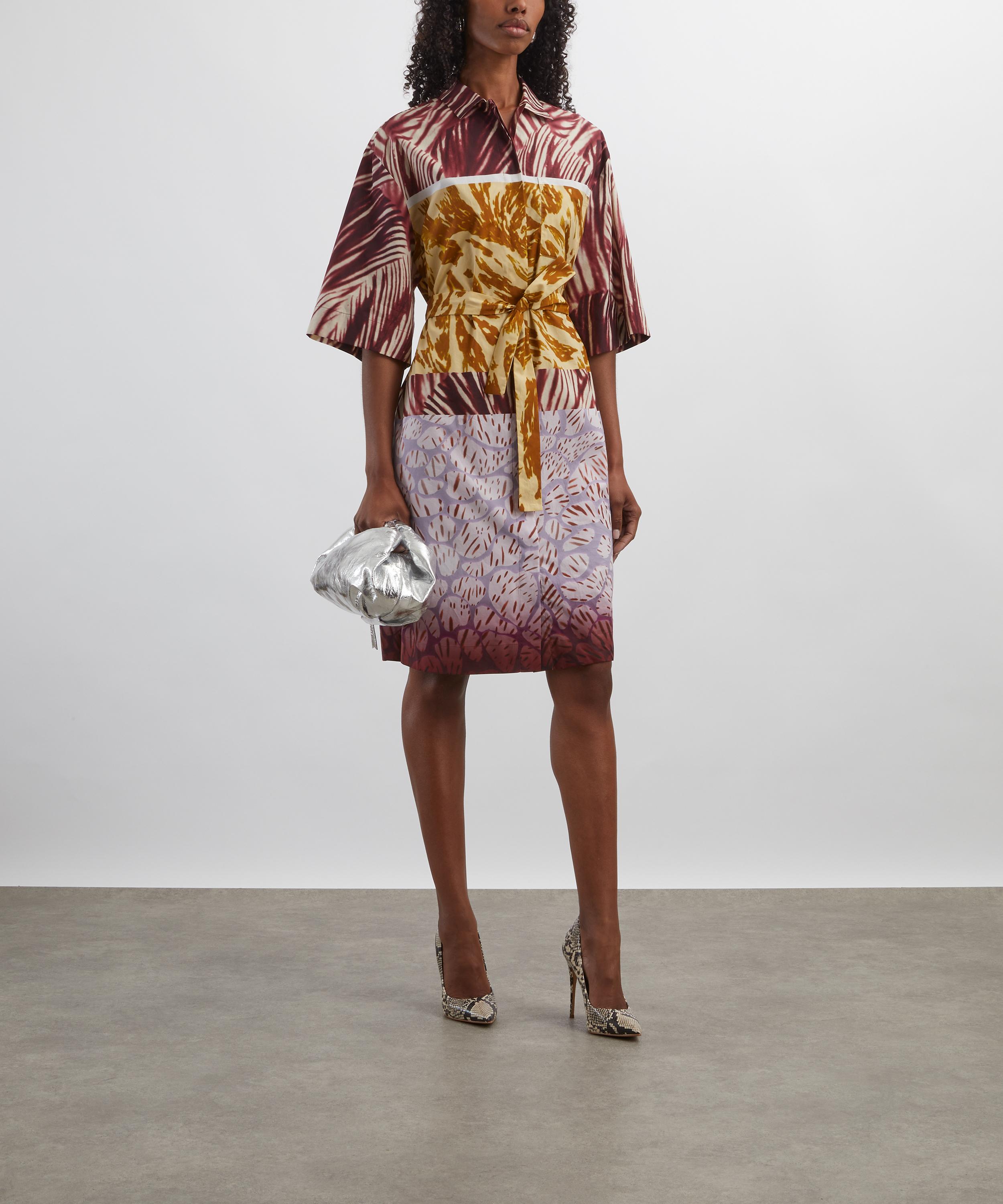 The Floral Composition Shirt Dress from Dries Van Noten exemplifies the Belgian label’s avant-garde approach to contemporary fashion.