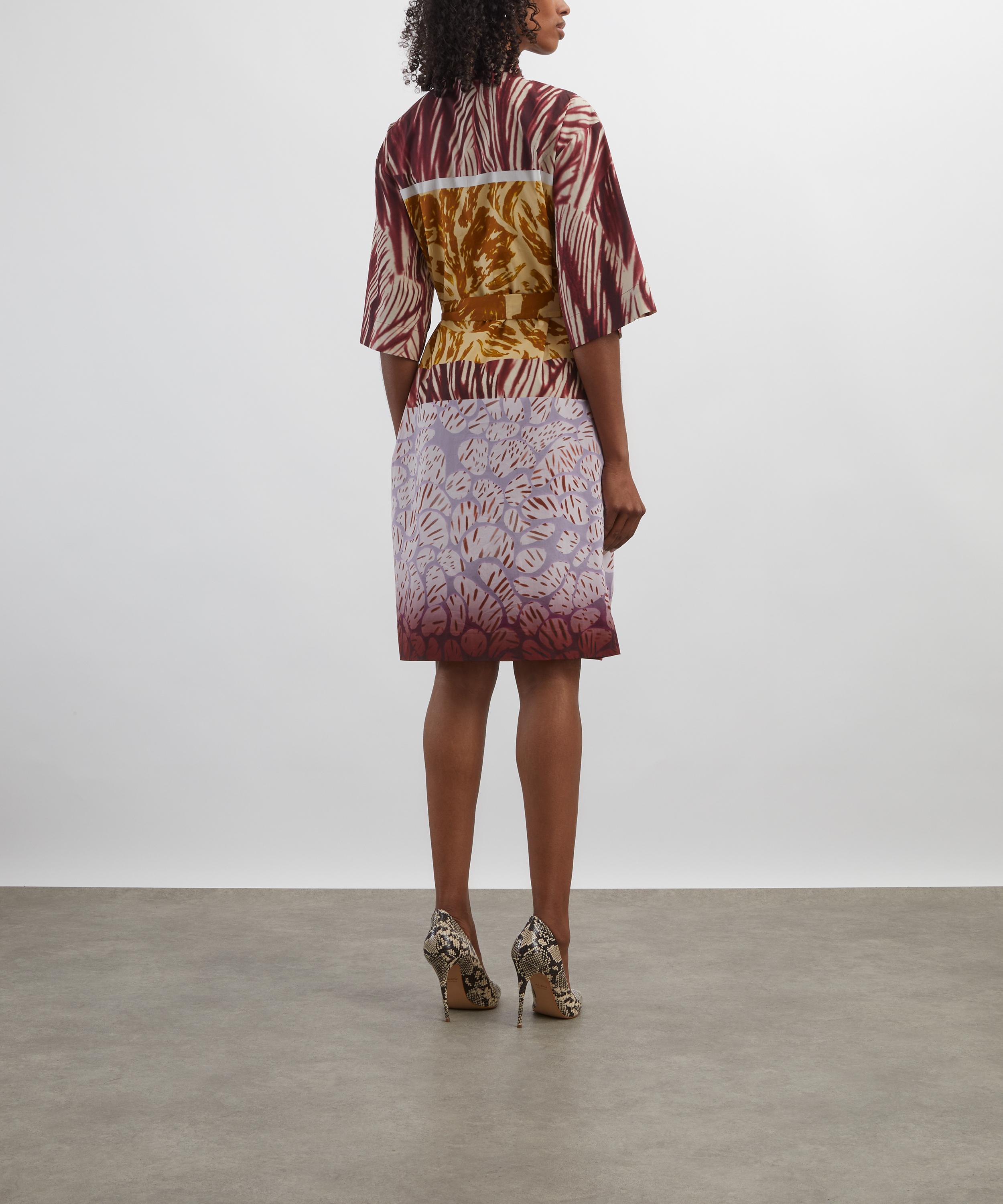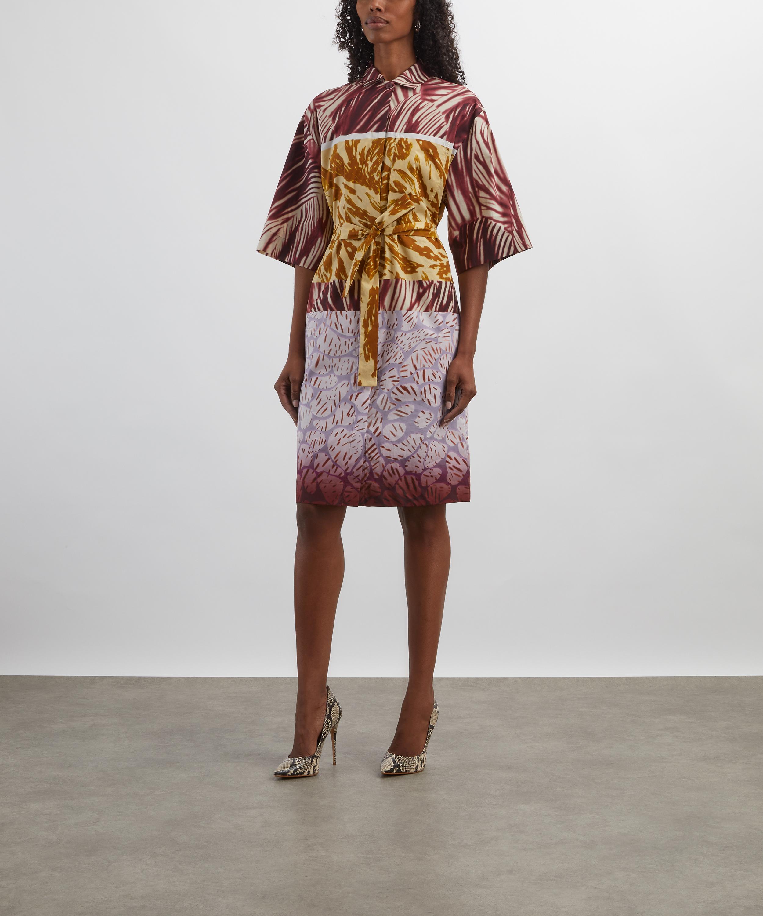 Crafted from crisp cotton poplin and adorned with the vibrant, multi-printed Floral Composition design, this loose-fitting shirt dress features a concealed button placket, two chest patch pockets, and a detachable waist belt for a customisable, tailored fit.