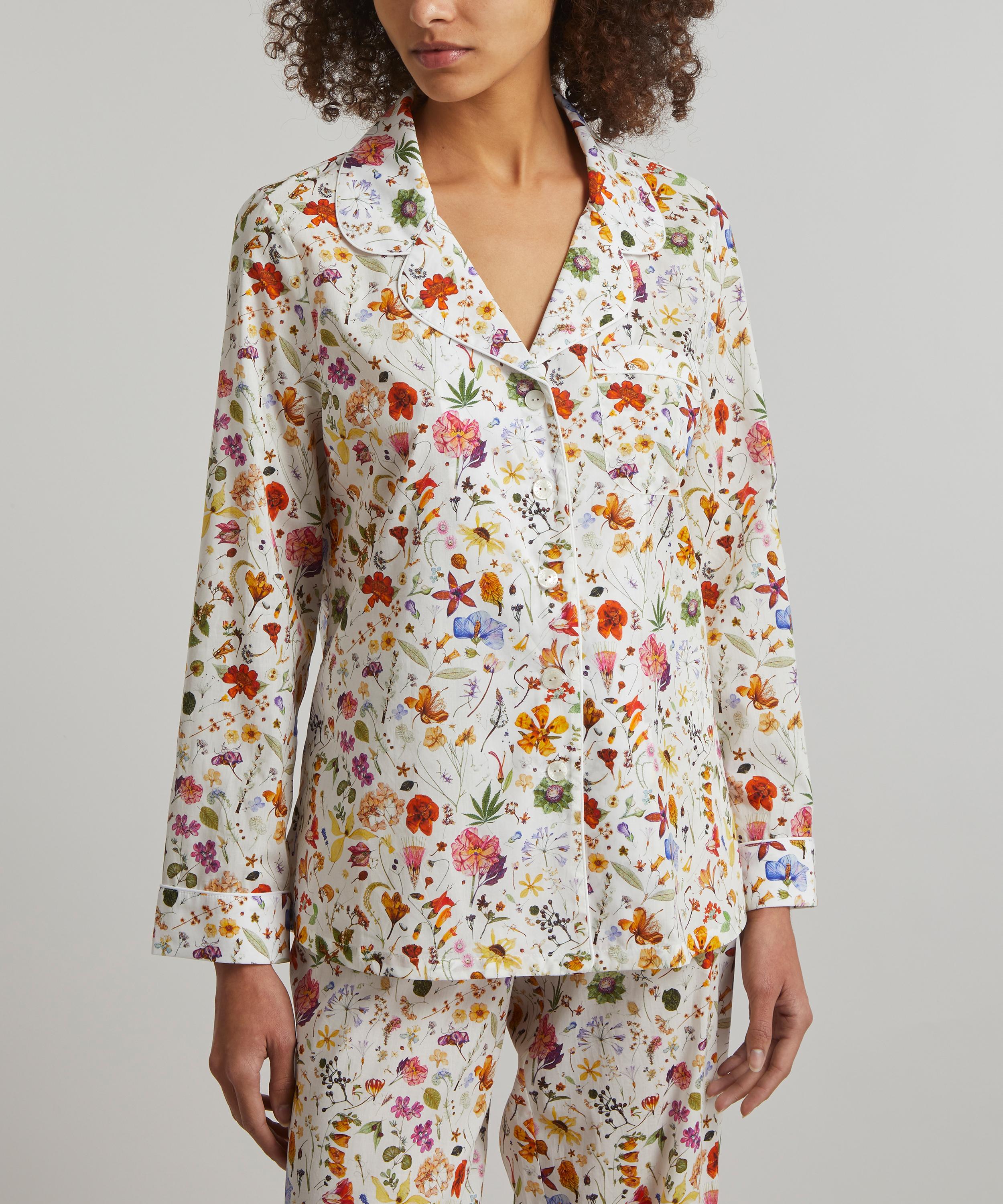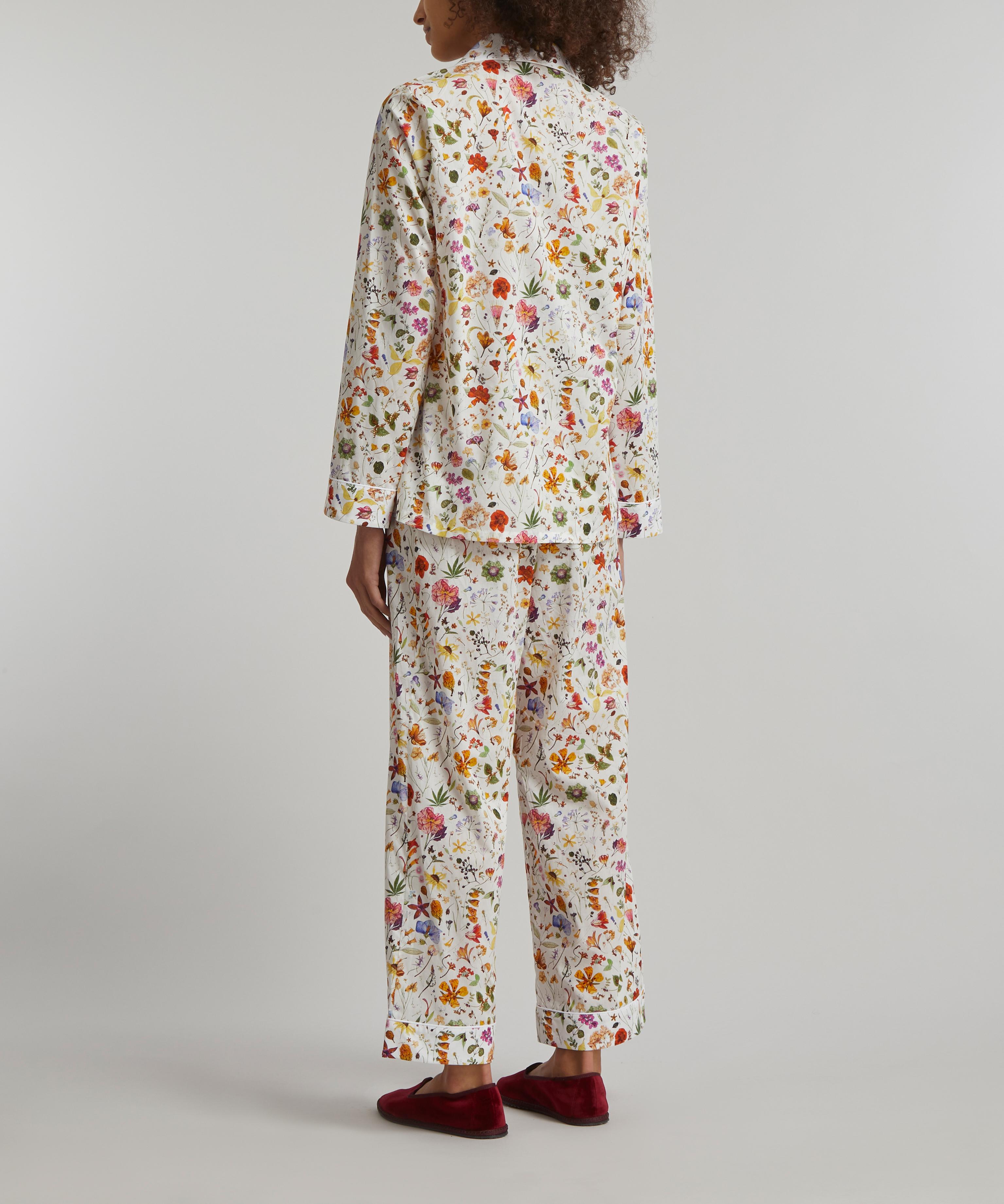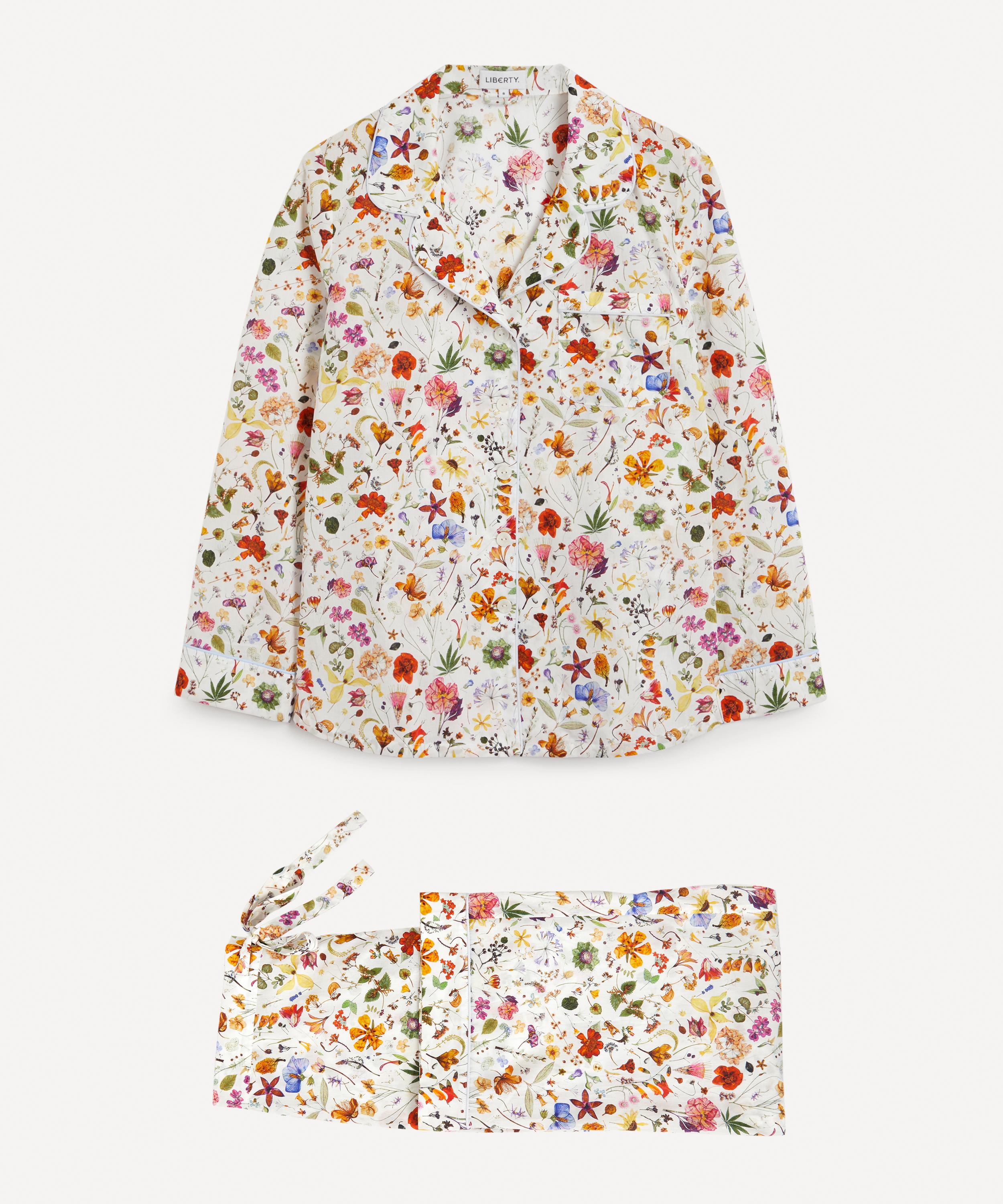 Tana is a true Liberty signature – a light, fluid revelation of a fabric that we’ve been perfecting for over a century, ultra-smooth to the touch and ideal for keeping cosy yet cool at night. Finished with elegantly piped trims, notched lapels and an adjustable drawstring waist, this traditional two-piece pyjama set spotlights our Floral Eve print – taken from a large botanical painting by Rachel Pedder Smith, entitled The Herbarium Specimen, the artwork depicts over 700 diverse plant specimens in an intricate and painstakingly beautiful manner.