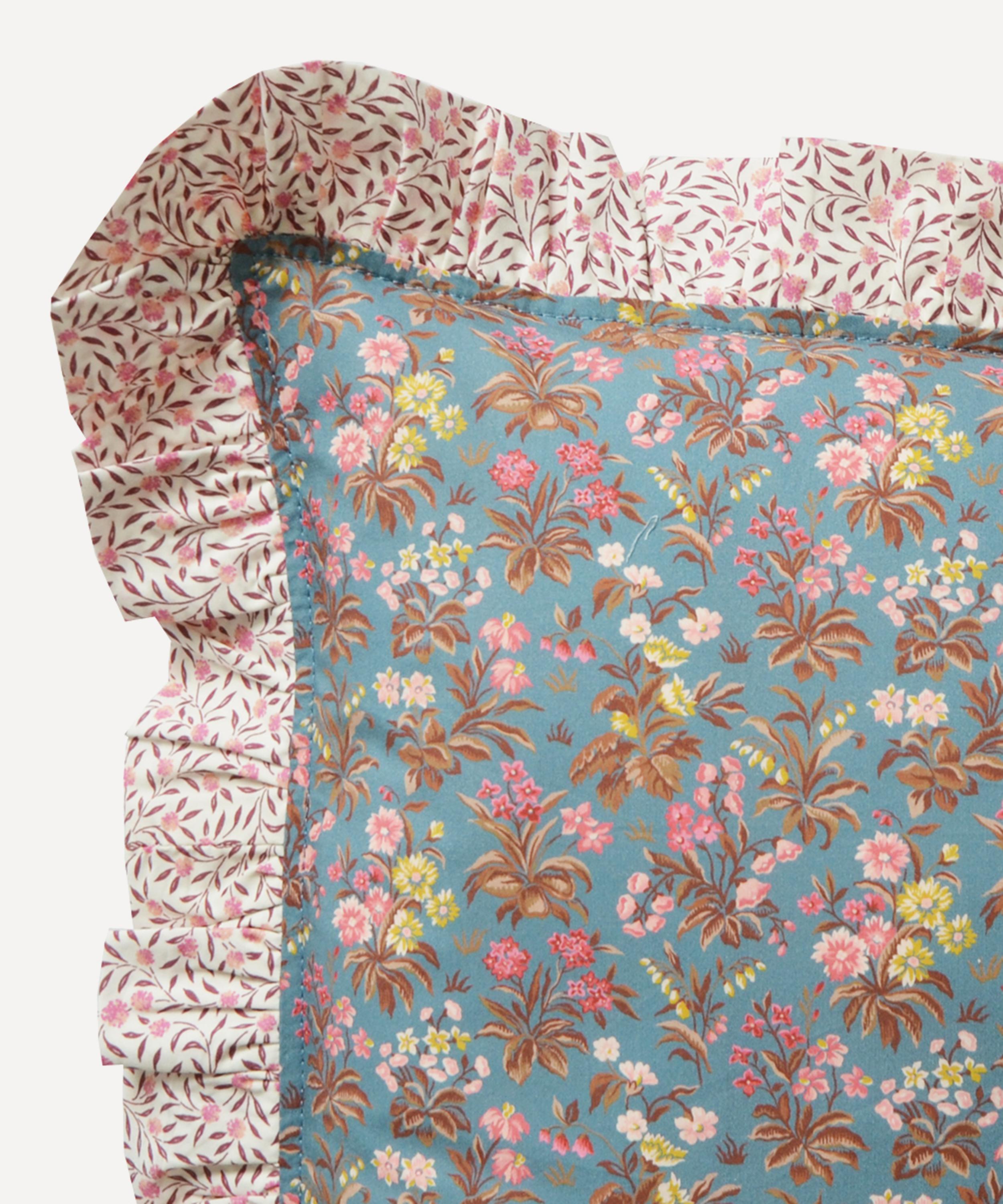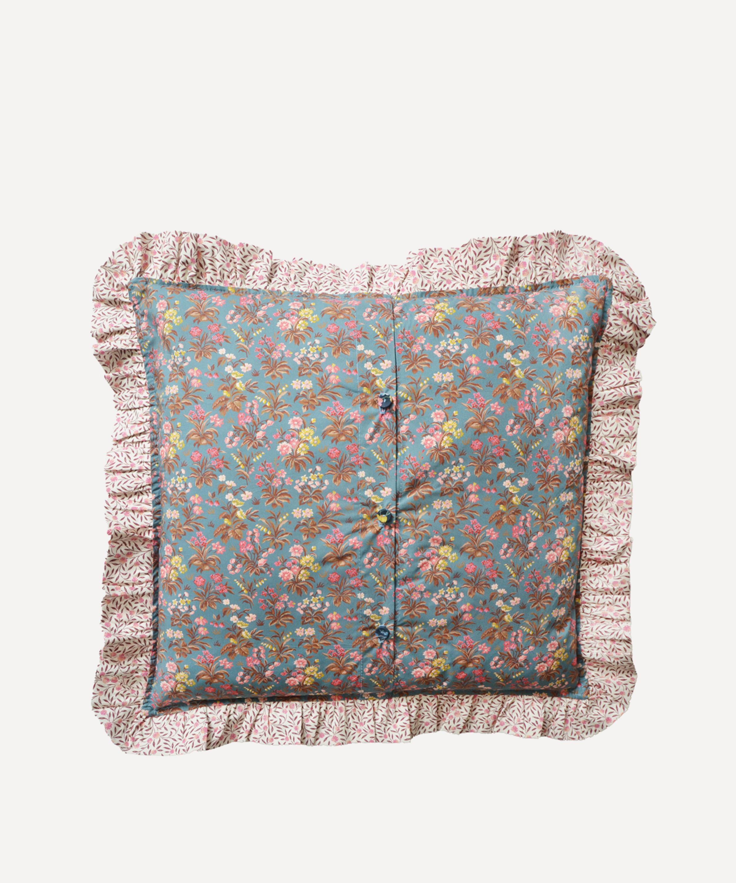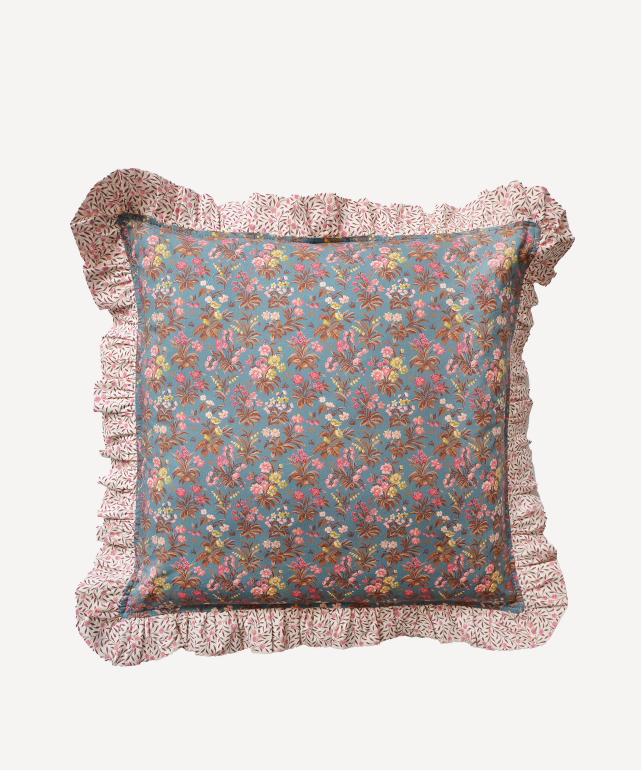 This Liberty print ruffle square cushion from Coco & Wolf is set to brighten up bedding and seating arrangements.