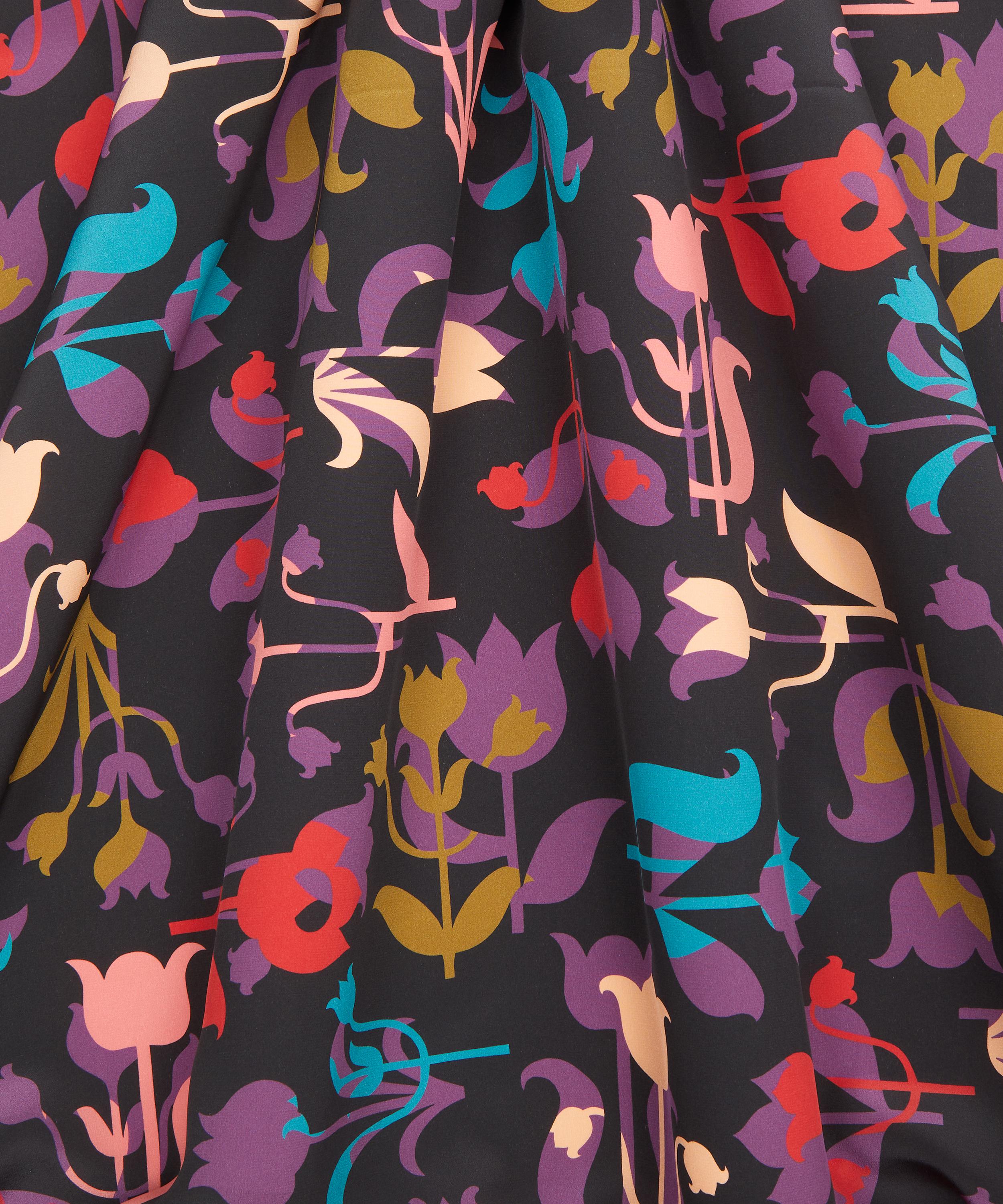 Sitting at the crossroads between old and new, Floral Frieze pays homage to the Arts & Crafts furniture sold by Liberty during the early 1900s. Using the traditional woodworking technique of marquetry as inspiration, the design studio has crafted this bold, large-scale floral pattern, echoing the refinement of inlay motifs. Silhouettes of cut and collaged tulip shapes intersect, lending an intriguing illusion of flat three-dimensionality. This print is part of the Craftsmanship narrative of this collection, exploring the creative process from within the Liberty archive, from print impressions and embroidered studies, to ceramics, jewellery, and furniture. Uncover the origins of the designers’ musings through artworks inspired by their sketchbooks and prototypes.