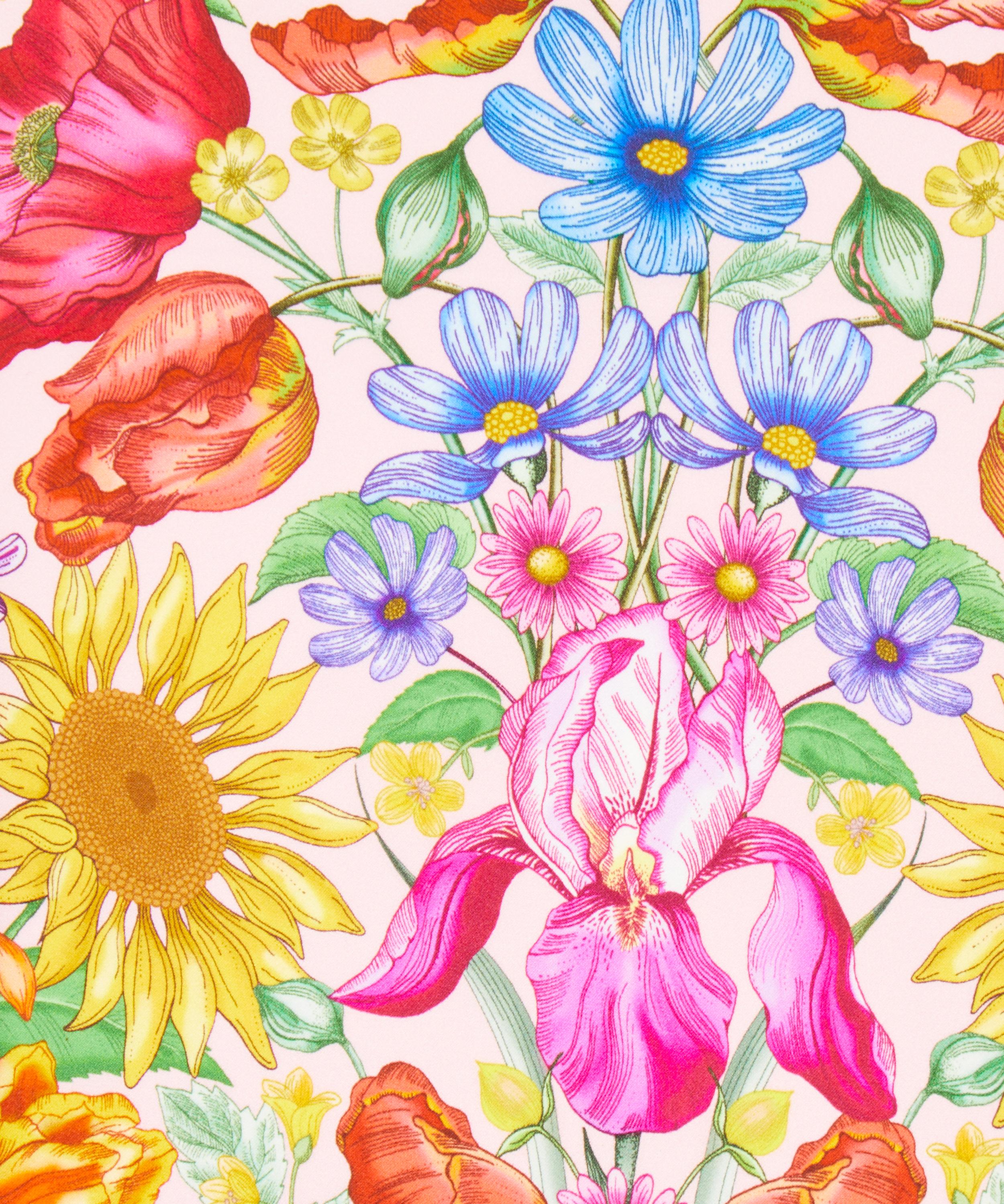 A nod to Liberty’s Art Nouveau revival period of the 1960s, this hand drawn design is overflowing with botanical splendour with a variety of colourful blooms including poppies, daisies, sunflowers, irises, tulips and lavender. Floral Muse is part of The Audience act of Retold, celebrating the characterful and lively Liberty shopper, from Oscar Wilde in the 19th century to the artists, writers, musicians, rock legends, models and actors that have flocked to Regent Street since – our discerning audience is one of Liberty’s most inspiring muses for SS25.