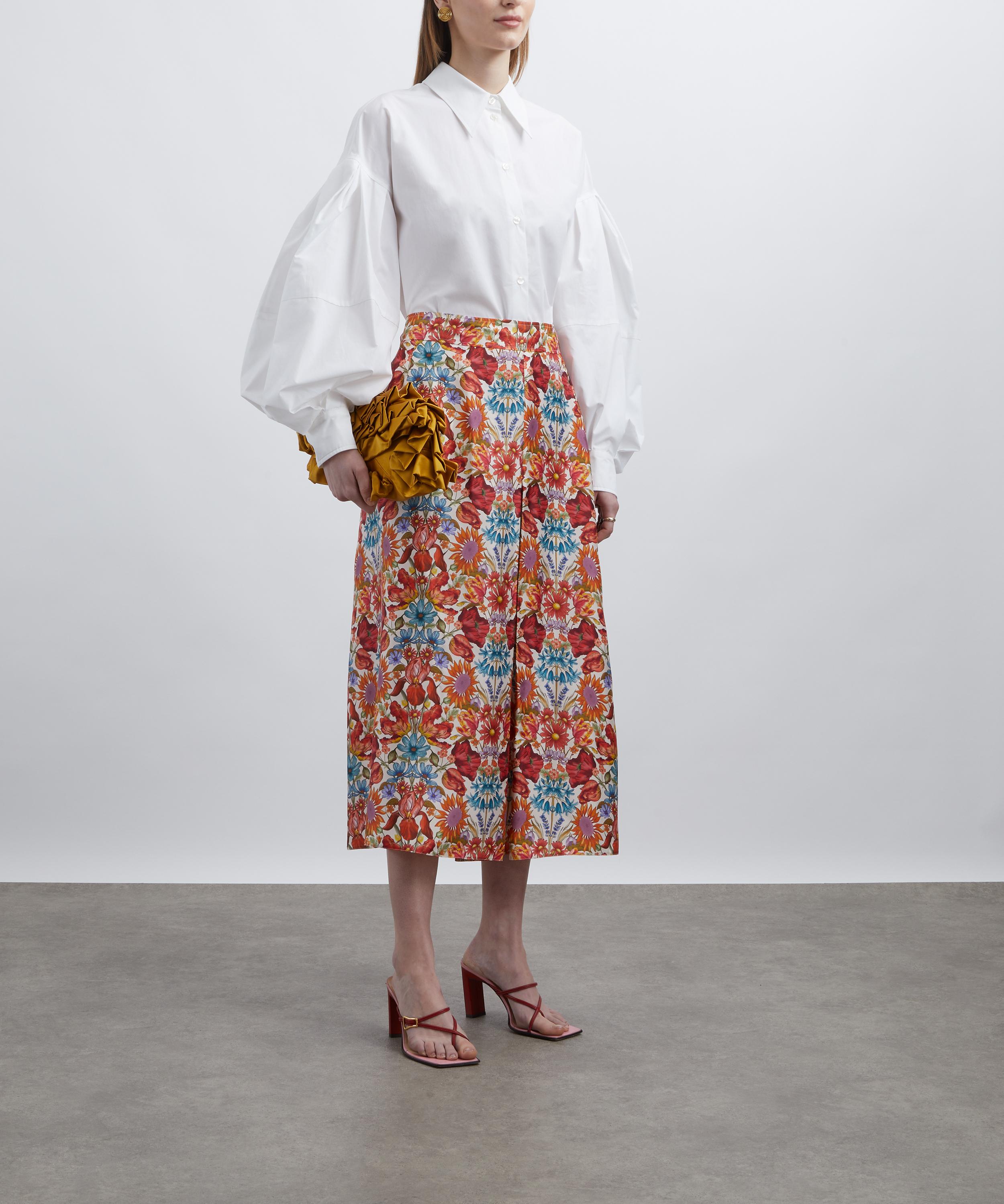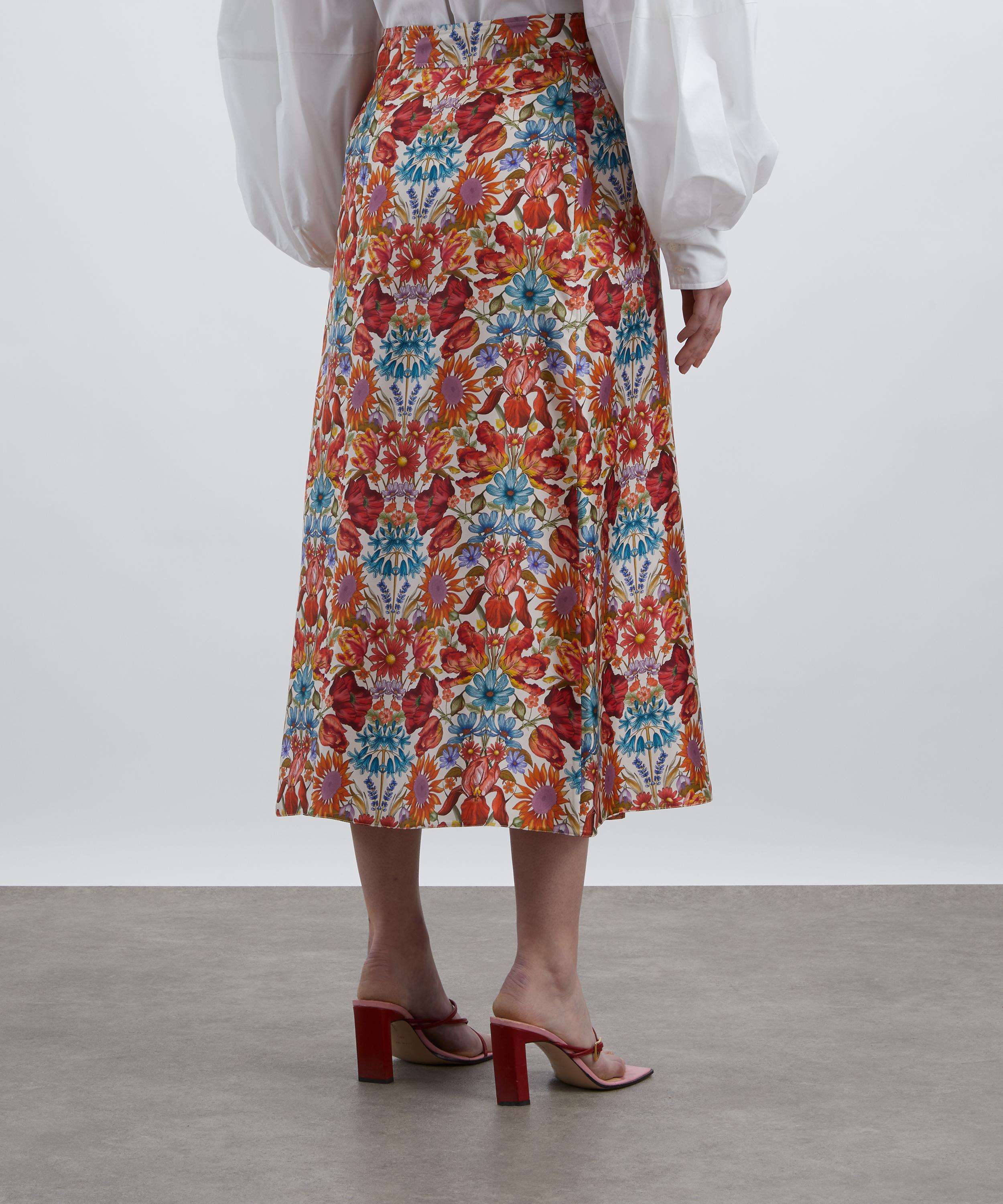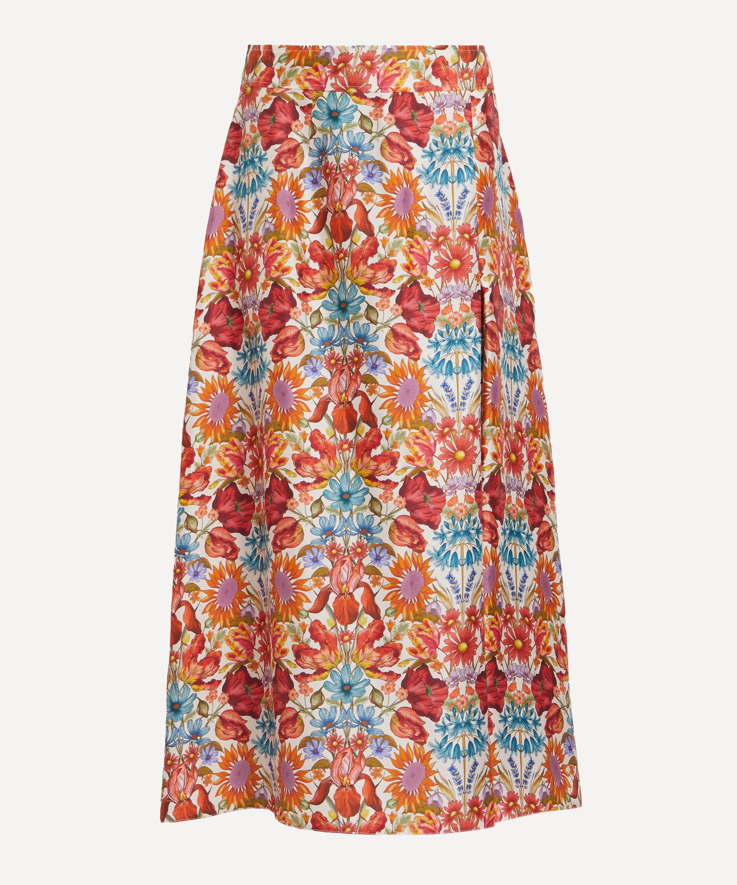 Printed in our very own cutting-edge Liberty fabric mill in northern Italy, this particular style of skirt showcases the Floral Muse print - a nod to Liberty’s Art Nouveau revival period of the 1960s, this hand drawn design is overflowing with botanical splendour with a variety of colourful blooms including poppies, daisies, sunflowers, irises, tulips and lavender.