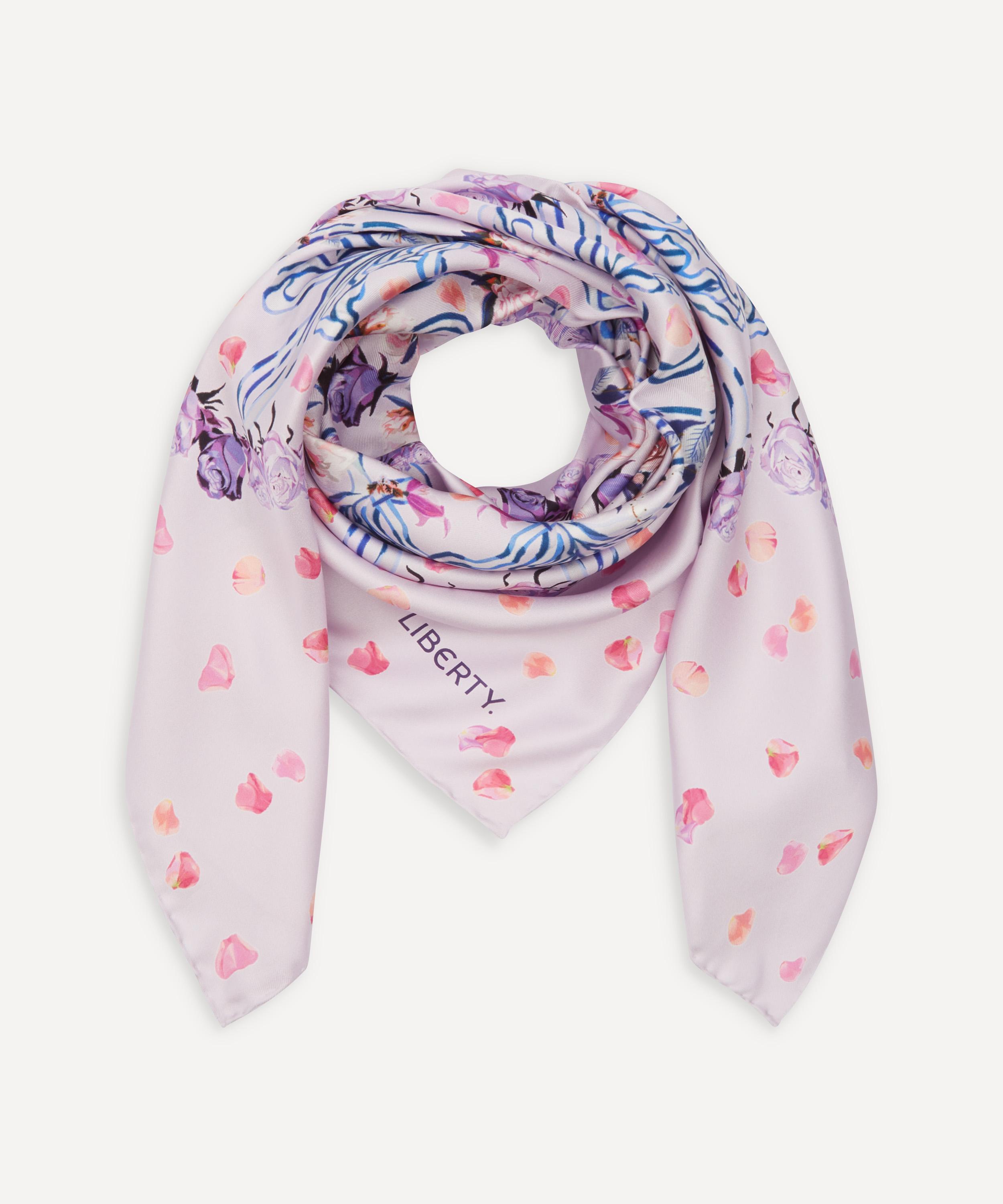 Whether looped around your neck or slipped through the handles of a tote, a Liberty scarf is a heroine of versatile styling. This silk twill scarf is printed with Floral Storm – hand painted in our London design studio, the rich shades of pink, blush and purple are inspired by our famous Liberty flower stall, with loose petals tumbling away down the scarf.