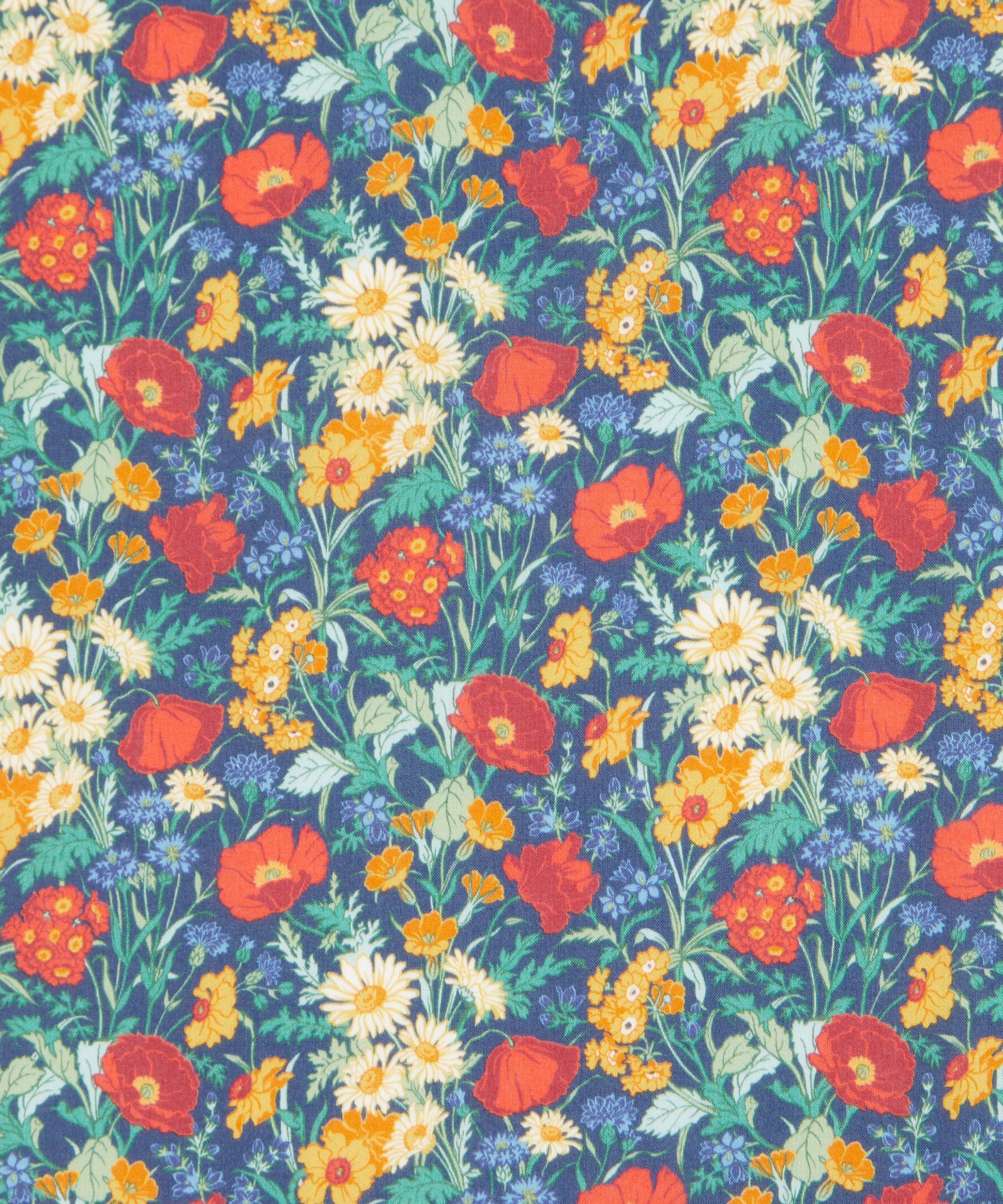 Based on a hand-painted artwork discovered in the Liberty archive, Florence May features a plethora of wild flowers typically growing in the English countryside. Elegant poppies, daisies, daffodils, primroses, pinks, corn flowers and forget-me-nots follow a subtle trailing pattern, conjuring up images of long walks through dazzling spring meadows.