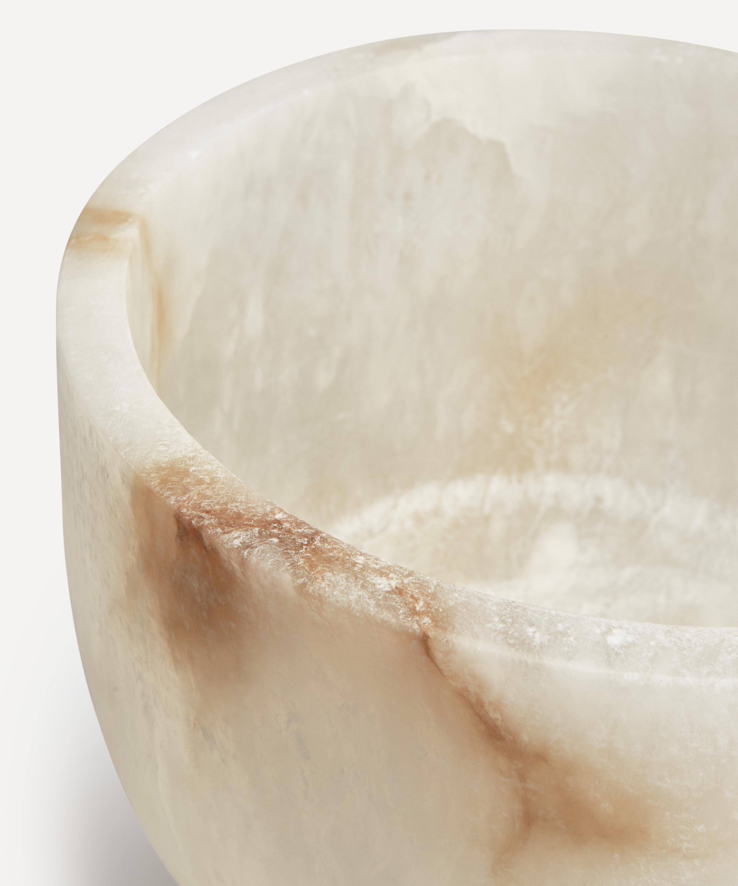 Handmade in India, each champagne bowl is features unique variations in the white alabaster, with the naturally watertight stone hand polished to a luxe finish. Serving a dual purpose as an eye-catching centrepiece while keeping bottles chilled – this piece is a sleek statement addition to any tablescape.