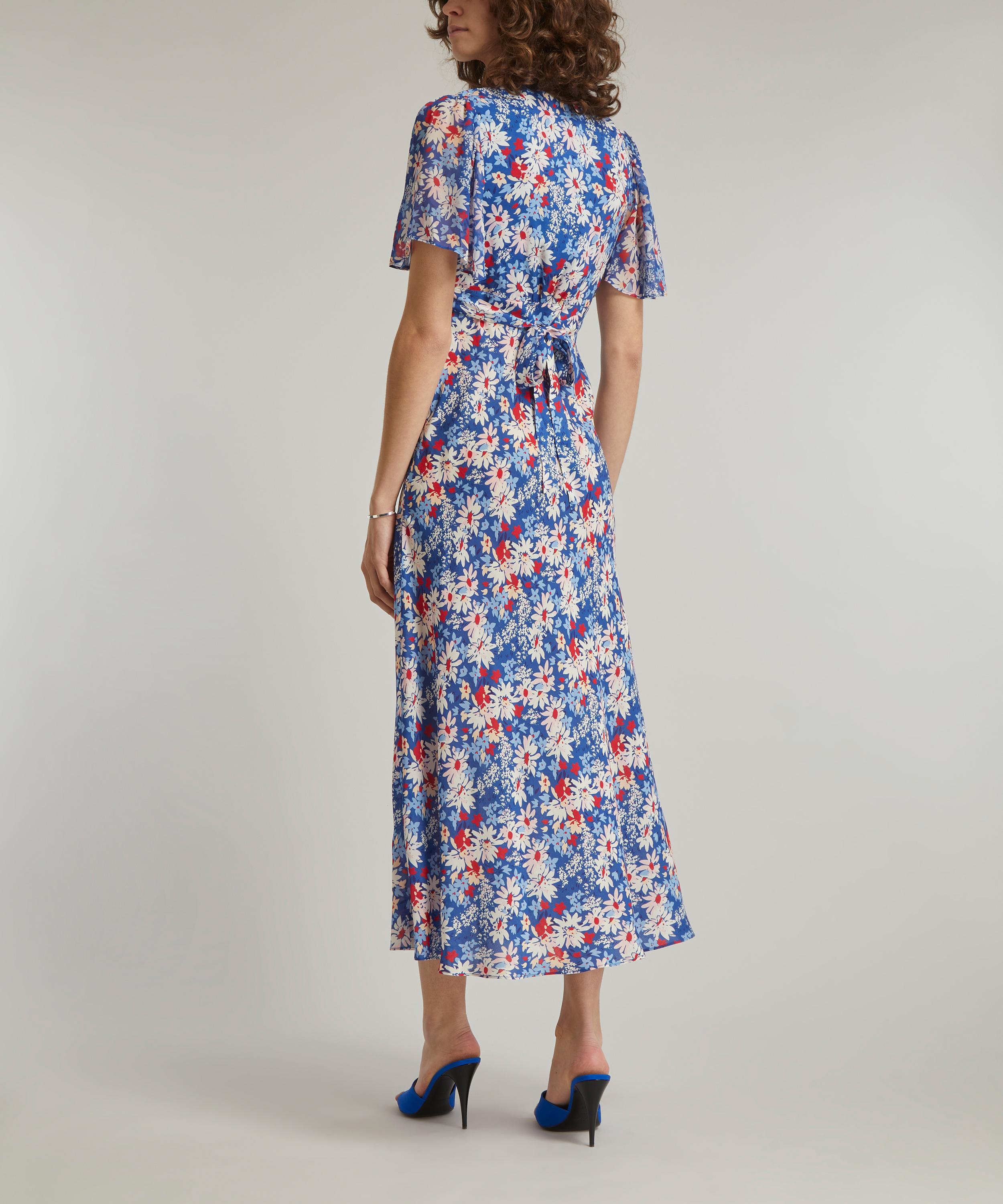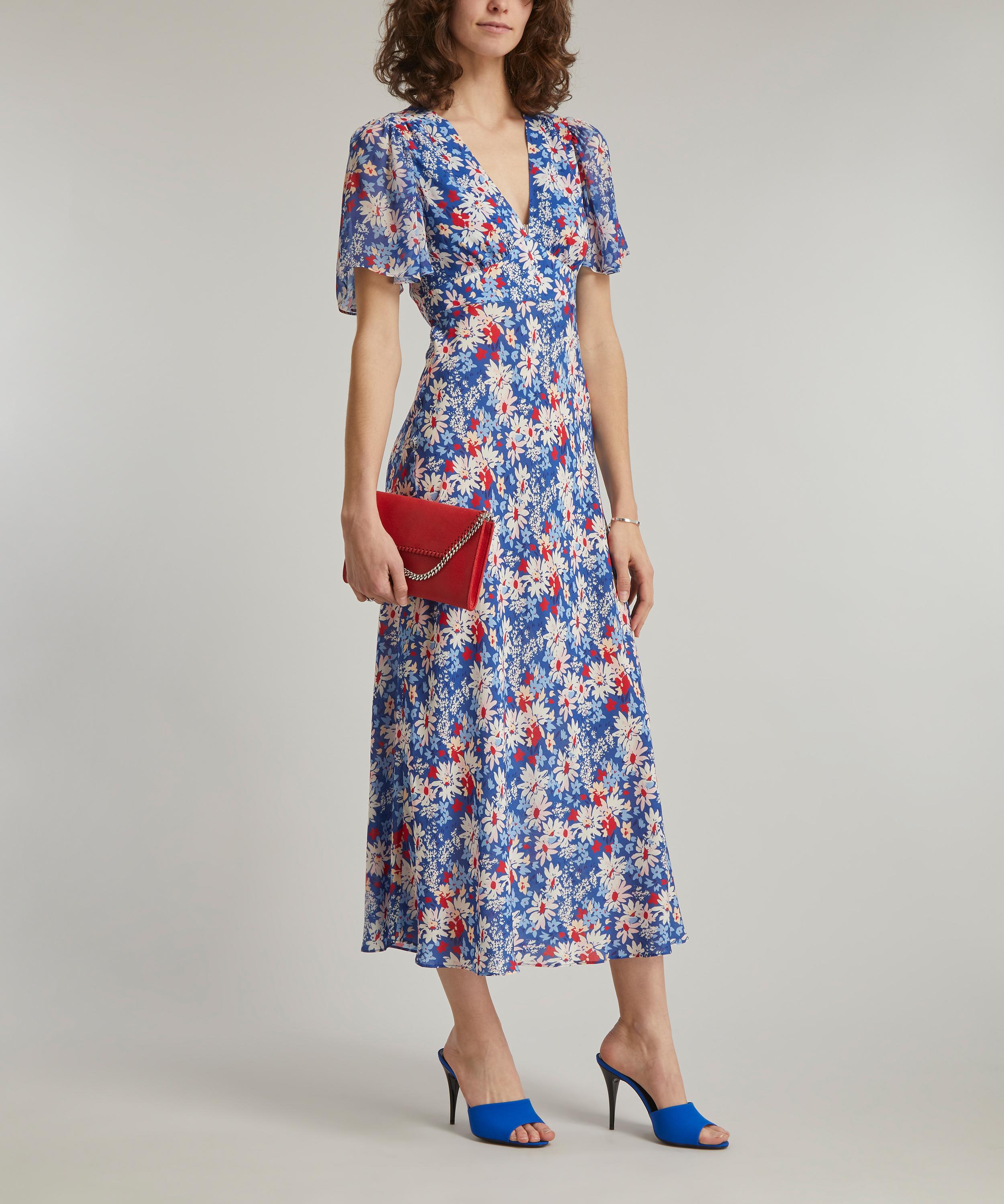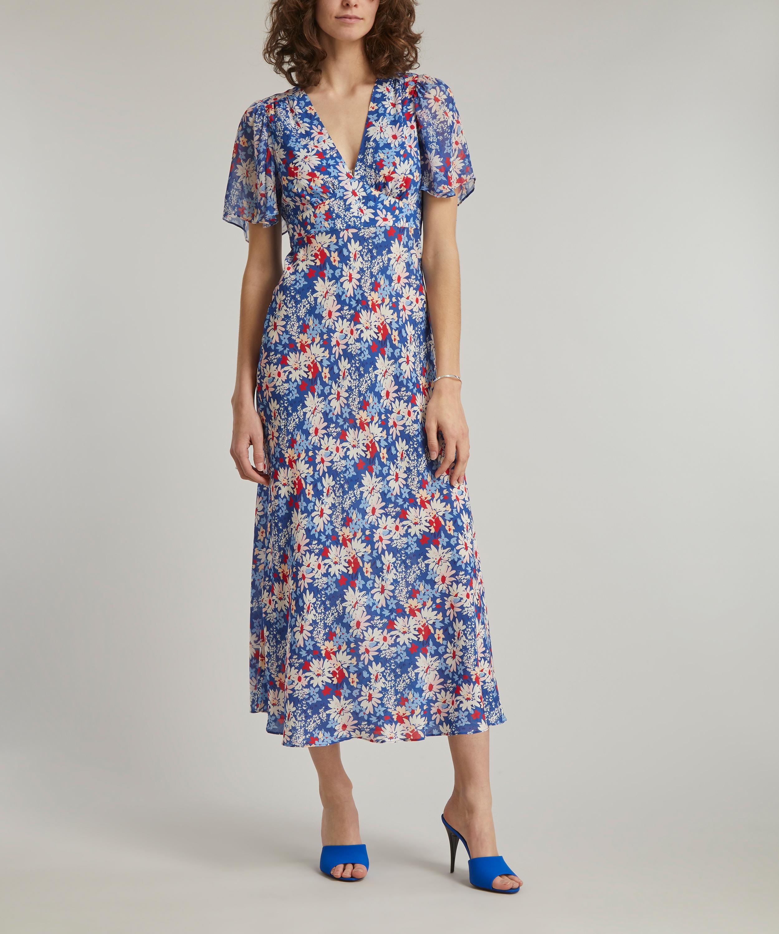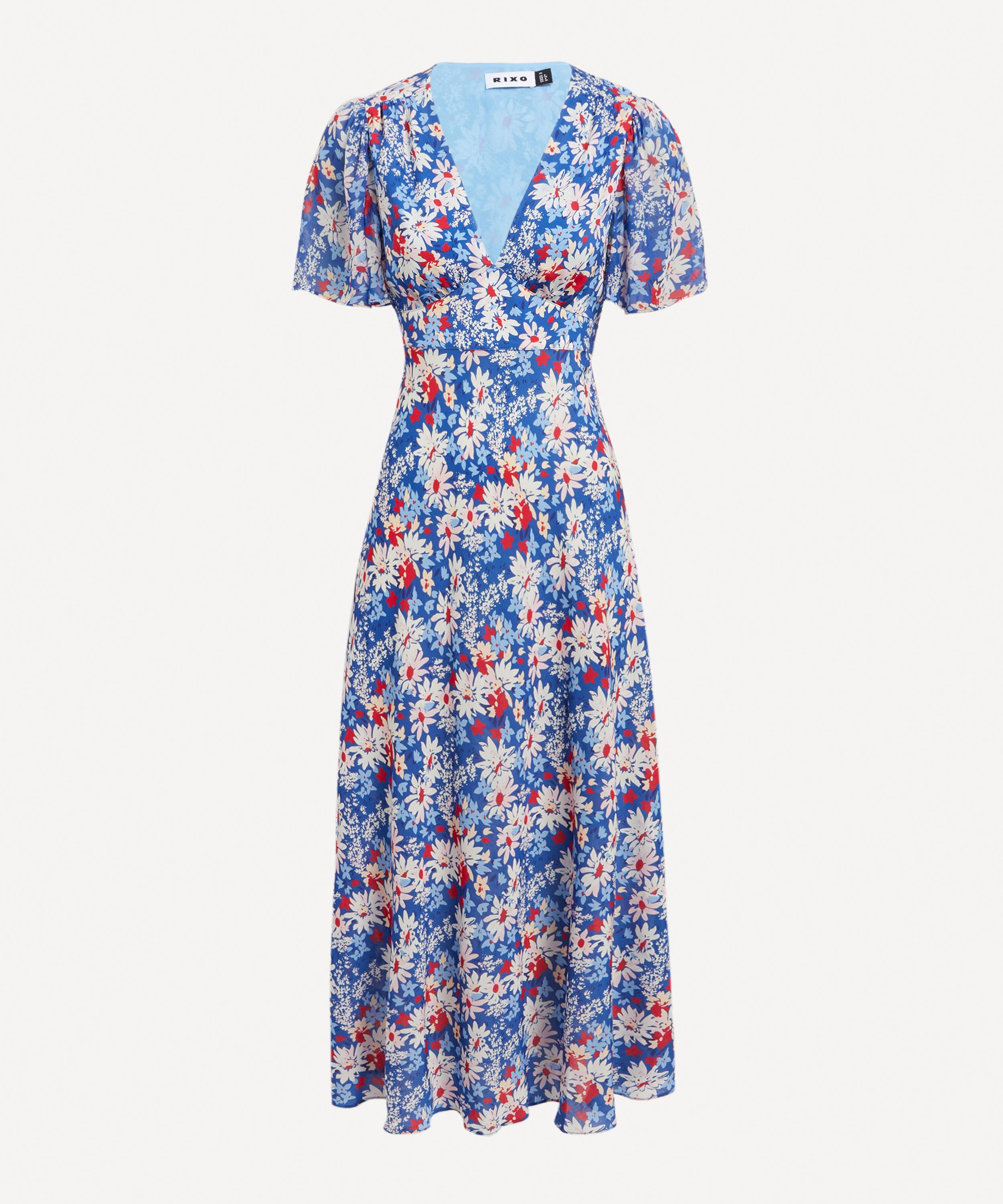 Effortlessly feminine with daring vintage appeal, the Florida dress from RIXO embraces the brand’s contemporary take on classic silhouettes. Featuring a retro-inspired daisy print throughout, this floaty floral midi-dress is effortlessly elegant with its flattering empire waist, flutter georgette sleeves and classic V-neckline.