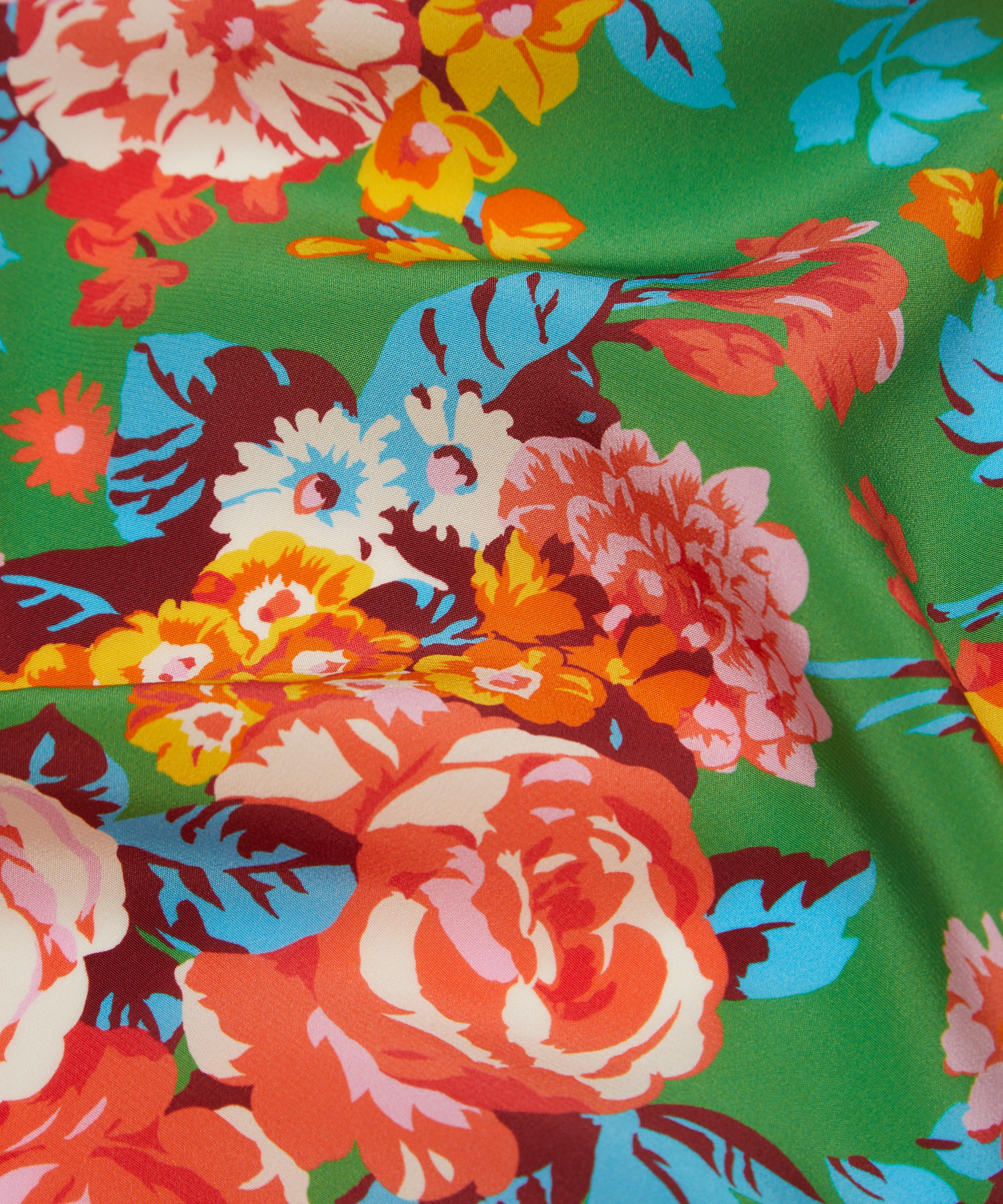 Crepe de chine is one of the best silk bases for daytime wear – it’s effortlessly luxe, with a lightweight drape that’s made more durable by its matte, slightly rough surface. Try using crepe de chine to create a louche effect with wide-leg trousers and loosely tailored shirts, or with fluted sleeves and ruffled accents for a romantic feel.
