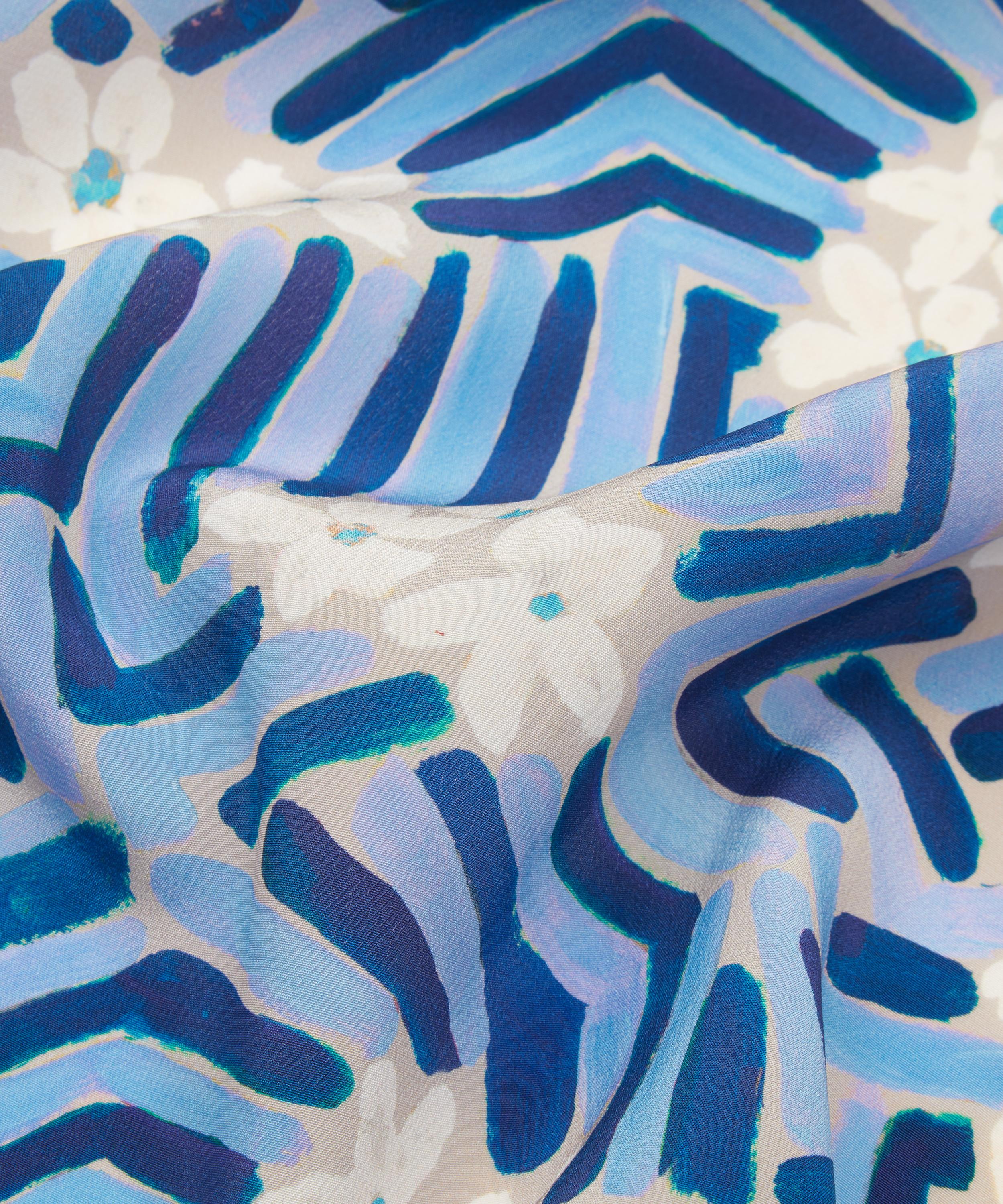Crepe de chine is one of the best silk bases for daytime wear – it’s effortlessly luxe, with a lightweight drape that’s made more durable by its matte, slightly rough surface. Try using crepe de chine to create a louche effect with wide-leg trousers and loosely tailored shirts, or with fluted sleeves and ruffled accents for a romantic feel.