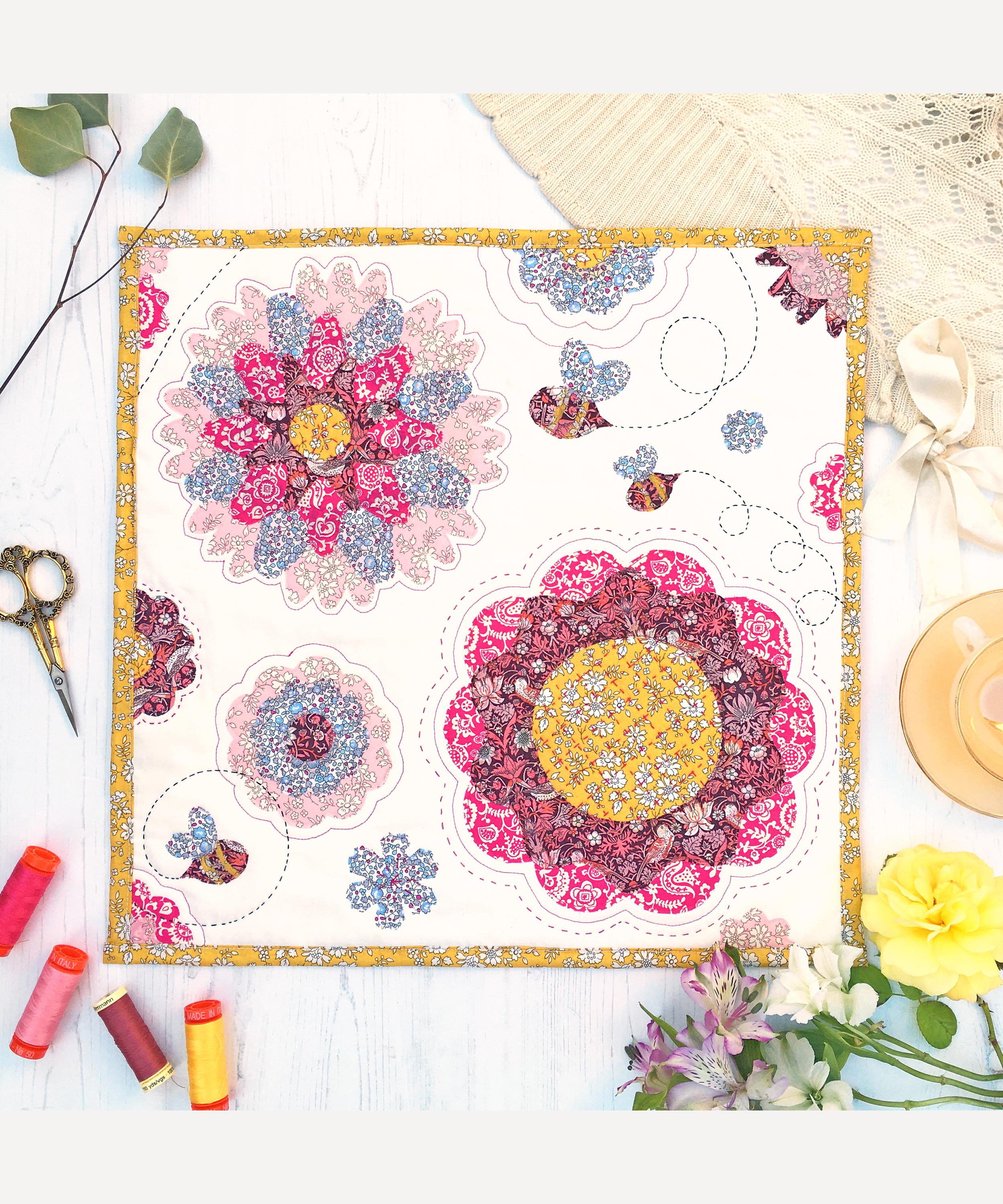 A great project for beginners and experienced makers alike, this cushion will bring beautiful wildflower meadows into your home. It is constructed using the raw edge appliqué technique and decorative quilting stitches. Complete the cushion using the materials and templates provided and position on a bed or sofa to inject some Liberty print charm into your interior.