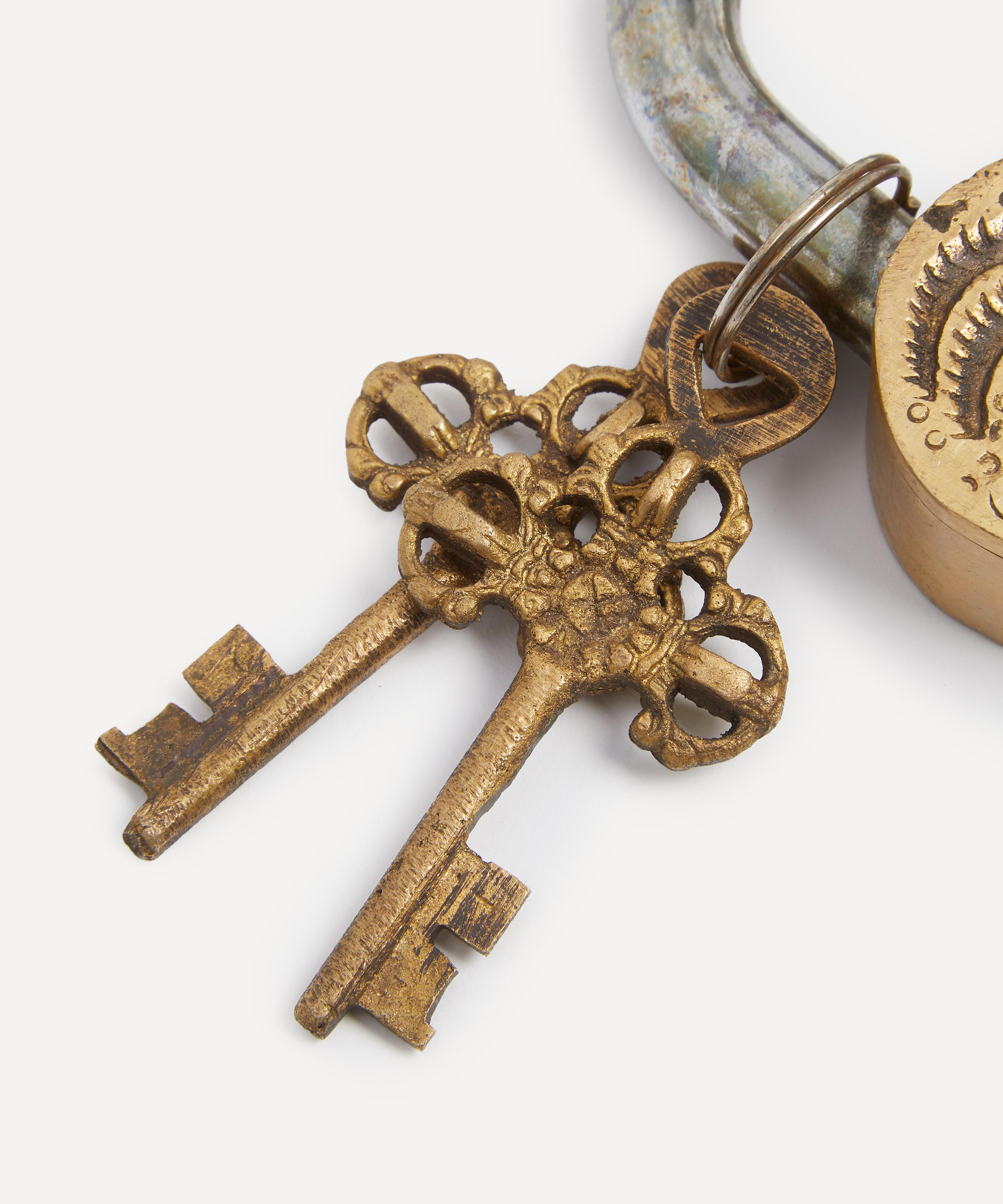 Meticulously crafted from brass, this padlock features a wonderfully idiosyncratic, intricate design. Including two working keys, gift to a loved one as a thoughtful symbol of your enduring bond.