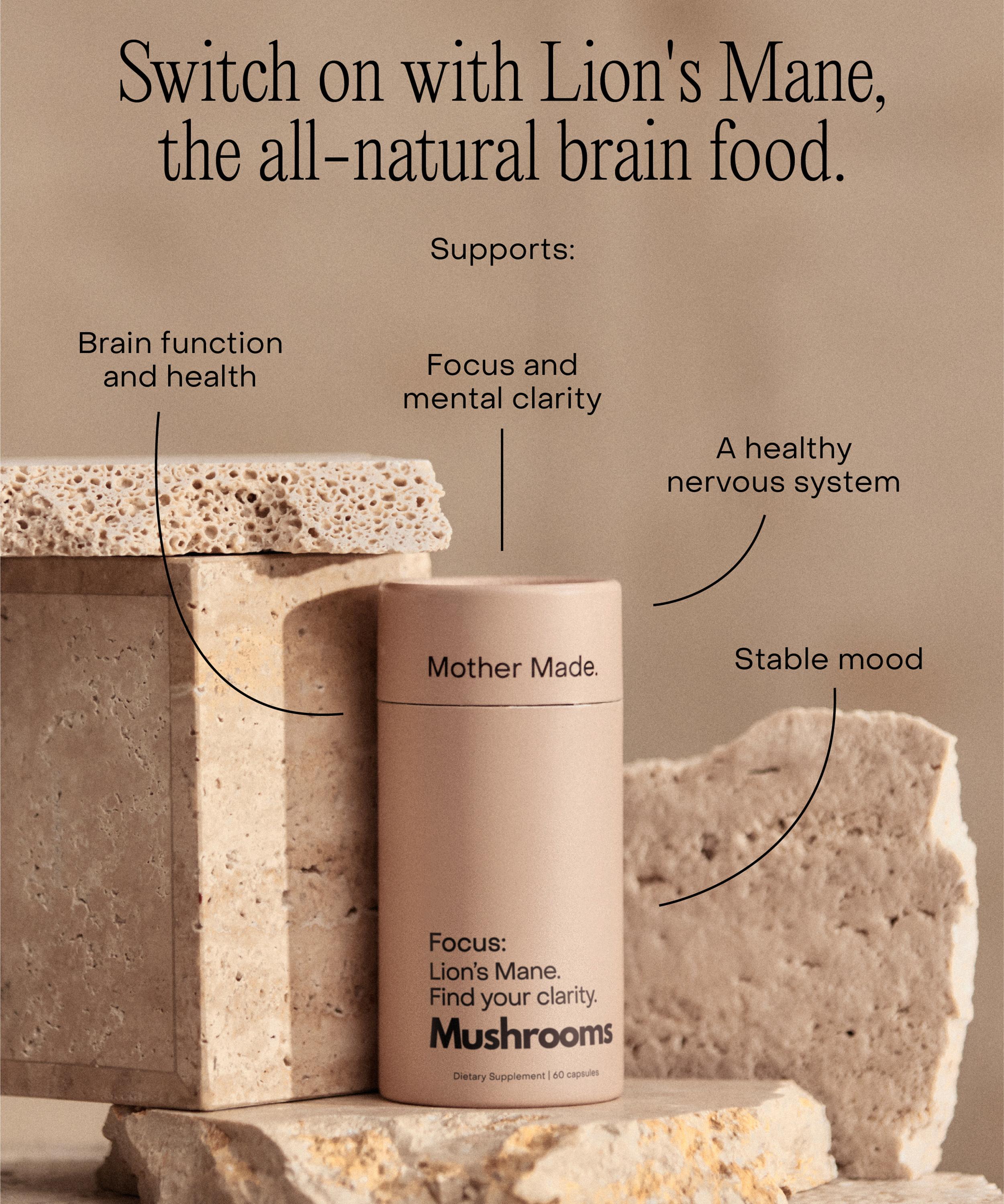 The ultimate sustenance for your brain, the Focus: Lion’s Mane daily capsules from Mother Made provide support and care for optimal cognitive function.