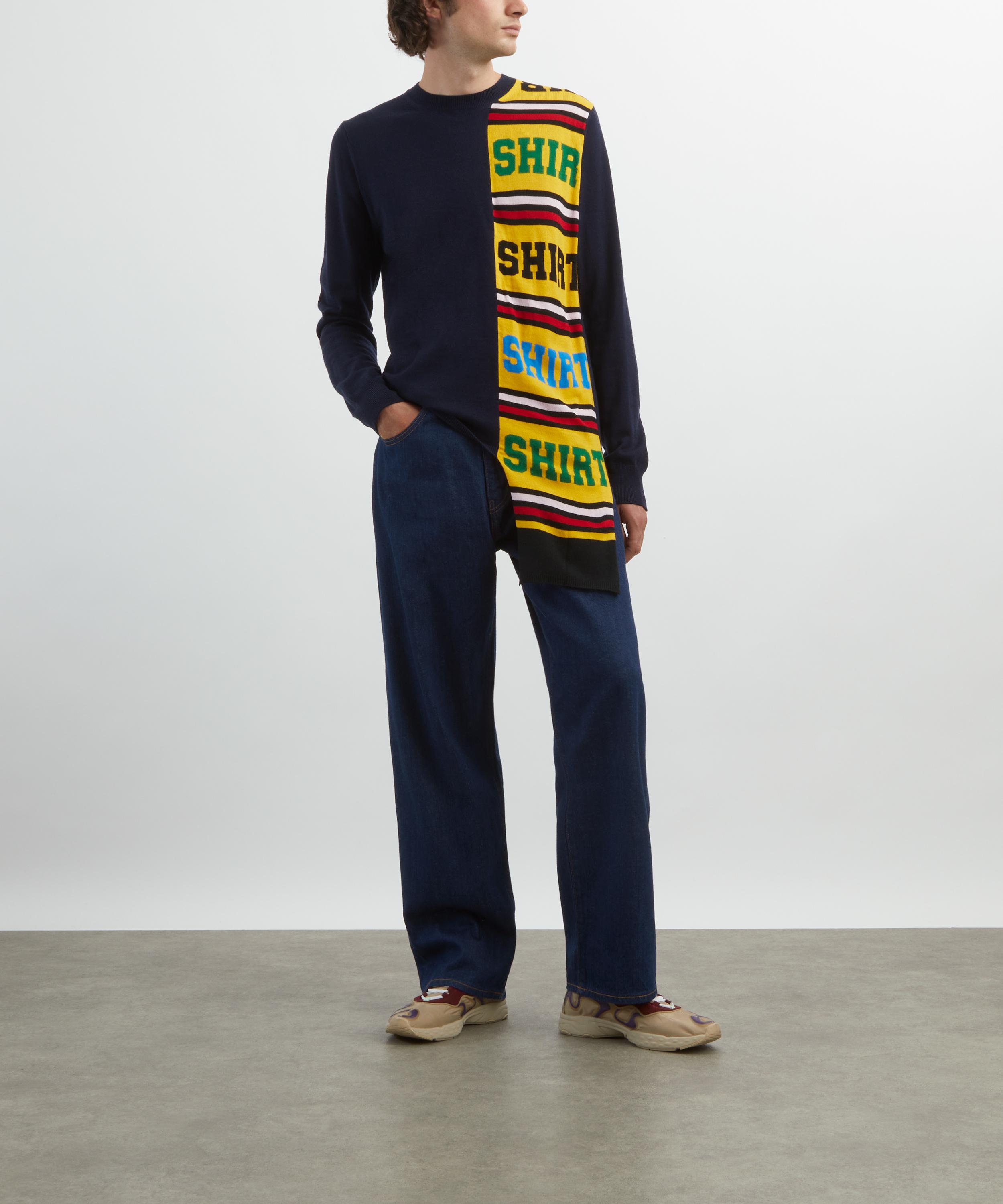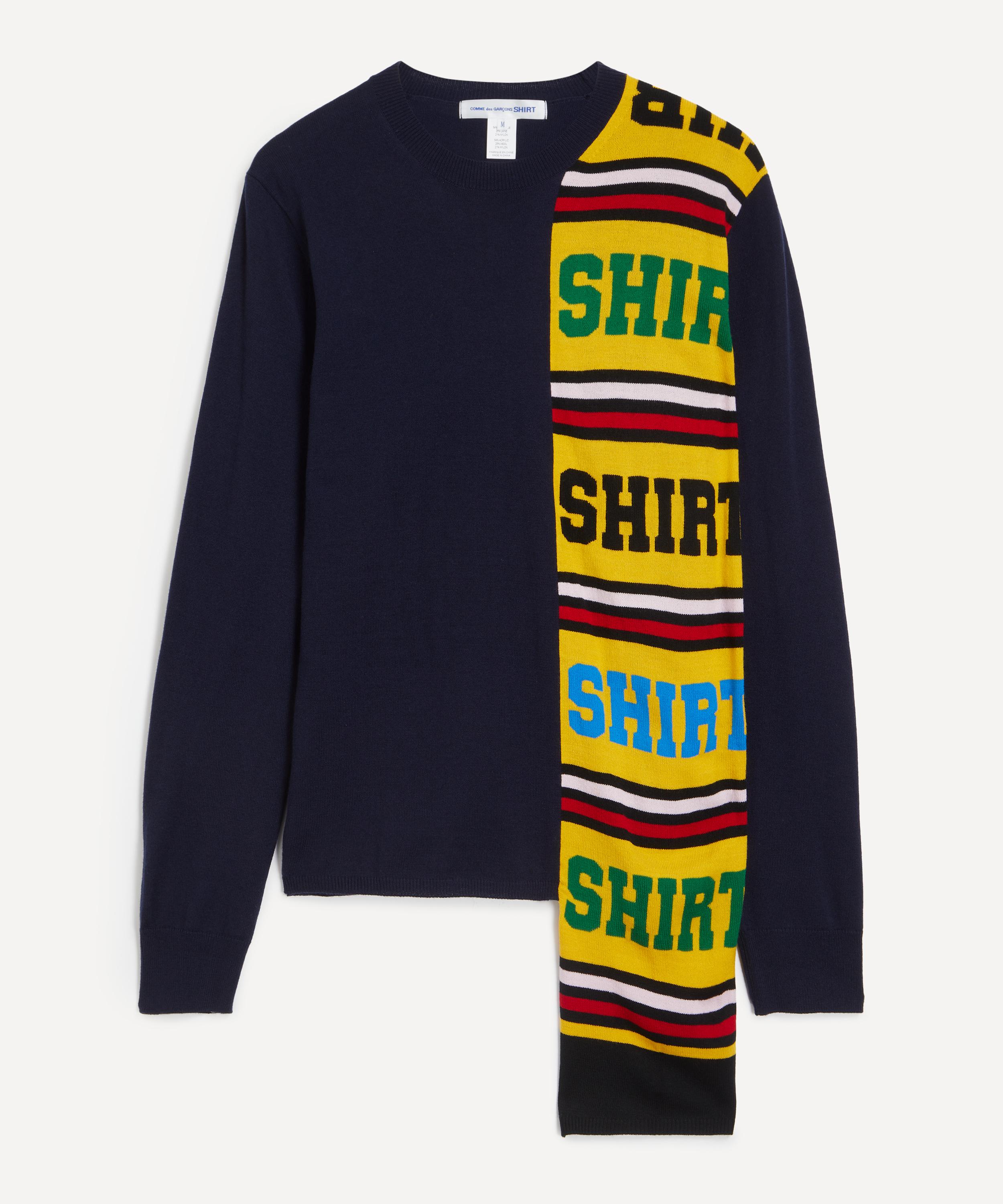 The Football Scarf Knitted Jumper by Comme des Garçons SHIRT adds a sporty twist to a classic knitwear staple.