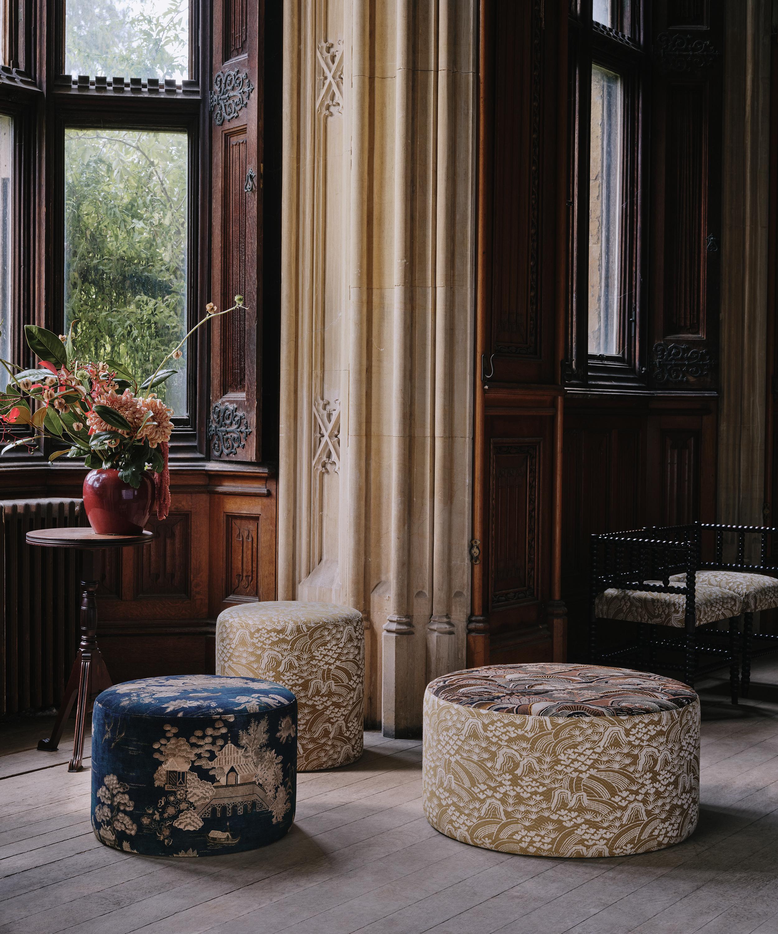 The Botanical Atlas fabric collection celebrates our historic lineage of craftsmanship and design through a cross-pollination of styles and visual narratives. Richly layered embroideries, opulent textured weaves, and contemporary printed velvets and linens are juxtaposed with a selection of elegant stripes and mesmerising geometrics - expertly crafted using traditional and cutting-edge techniques in Italy, Belgium, and India. Based on a fabric swatch found in the Liberty archive, Forest Hills is reminiscent of traditional Japanese woodblock prints and embraces the aesthetic and characteristics of a Zen Garden.