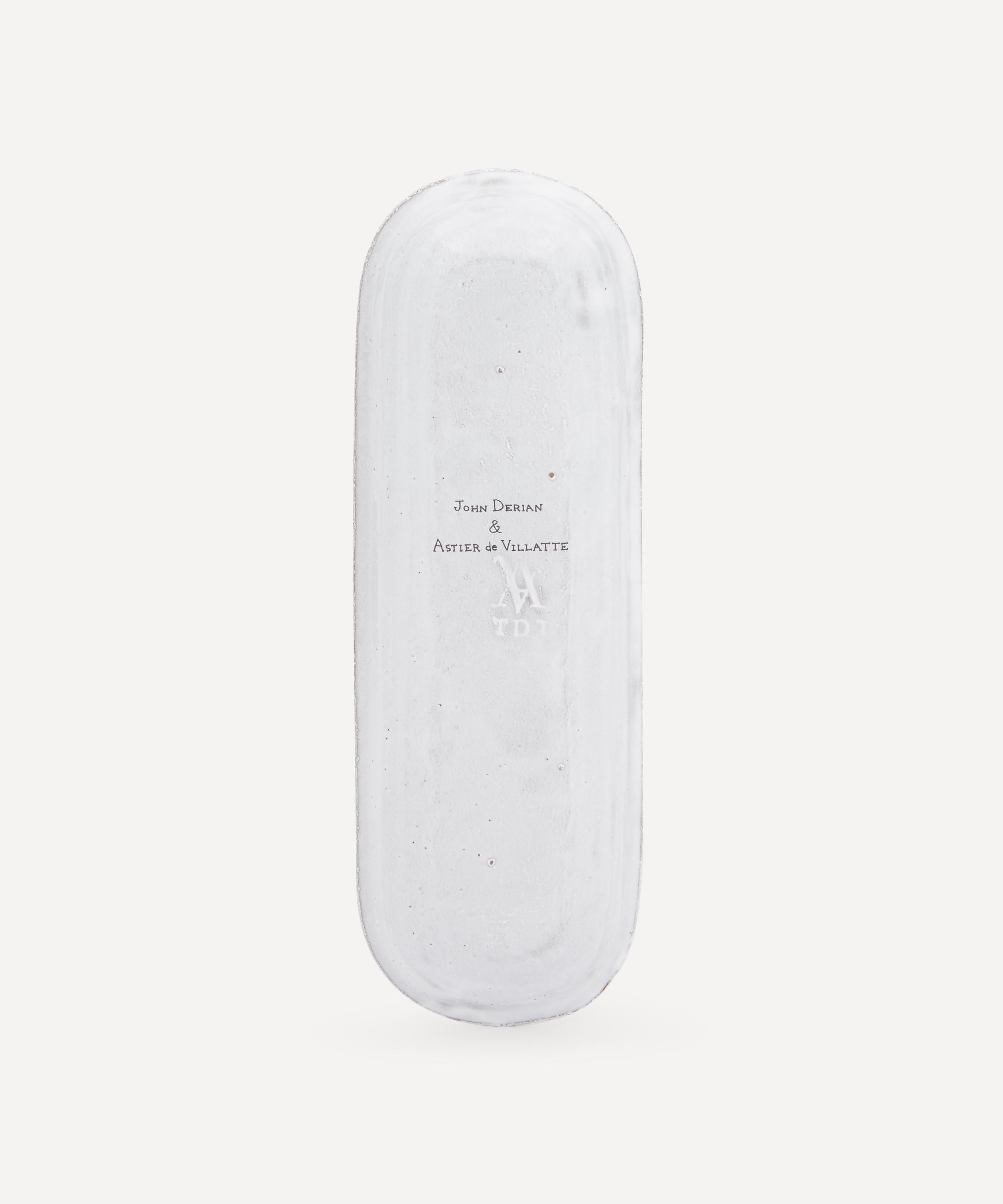 Votary of pre-industrial fabrication, Astier de Villatte is celebrated for being the one and only studio in Paris to hold and harbour the traditions of artisanal ceramic production. Restoring the ancestral systems of moulding and stamping, this platter is made using techniques from the Middle Ages which involve moulding a sheet of handmade clay, double firing the ‘biscuit’ piece and glazing the product in white enamel – a lengthy process that requires a drying time of up to one month. Characterised by its oval shape, curved rims and John Derian découpage, the platter is engraved with the brand’s signature crest – depicting an interlacing A & V – alongside the initials of one of the 40 master artisans who created it. Each handmade piece tells a beautiful story, romancing and imparting a sense of nostalgia into its owner. Display it with additional ceramic pieces from the collection to breathe an air of authenticity into your table setting.