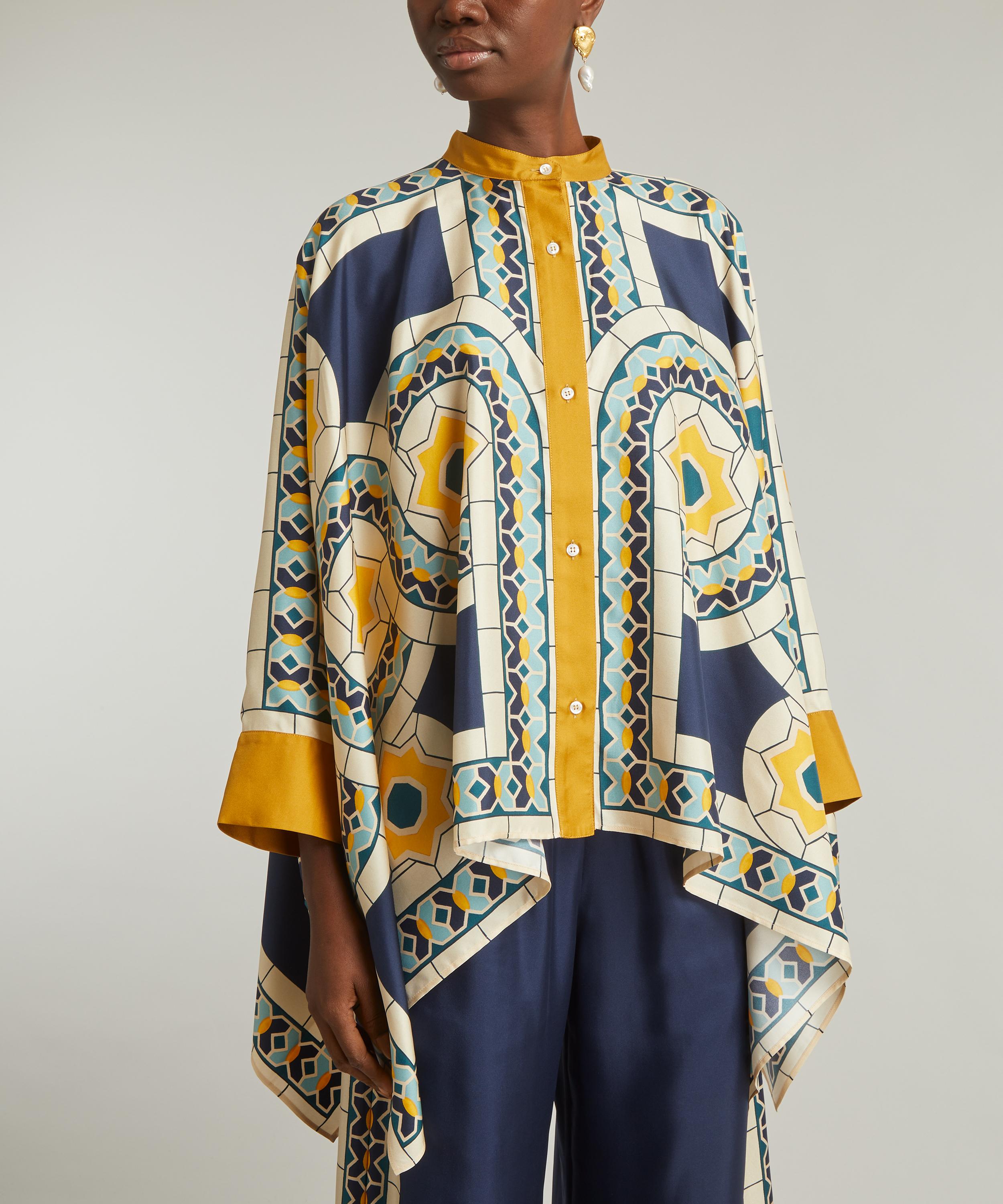 The ultimate summer-ready style with its lightweight silk twill construction, and draped, waterfall cut, the Foulard shirt will instantly transport you to Italy’s Amalfi Coast with its vibrant, sun-drenched print.