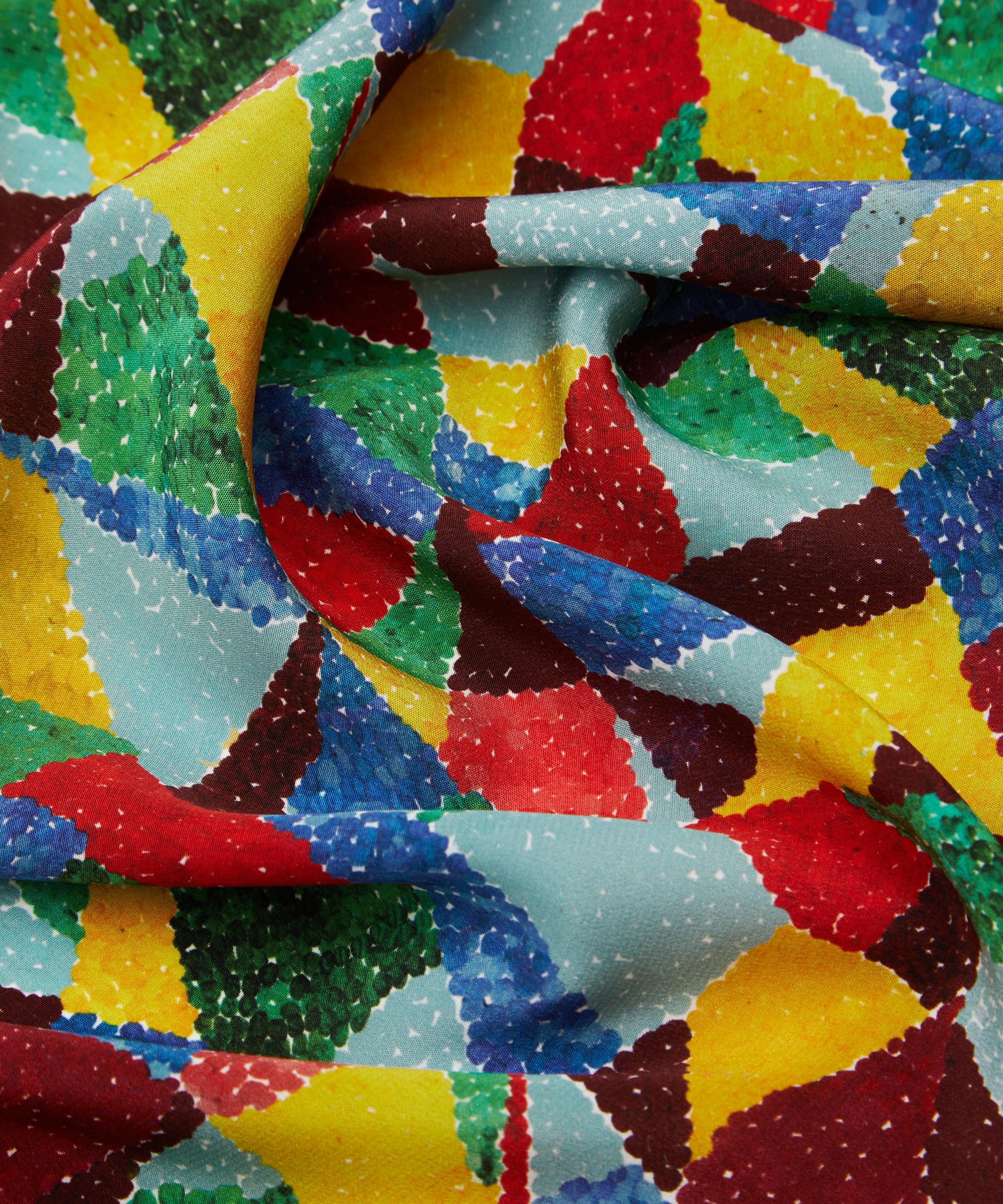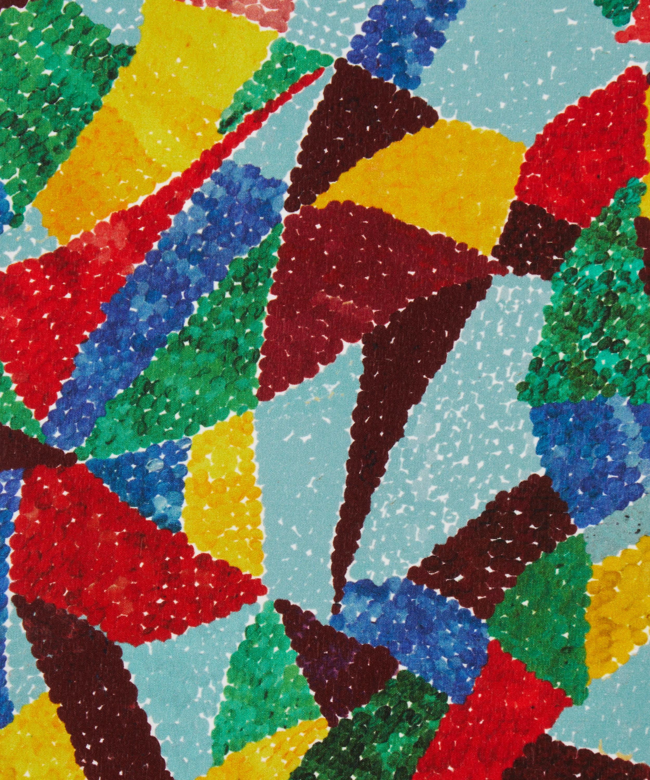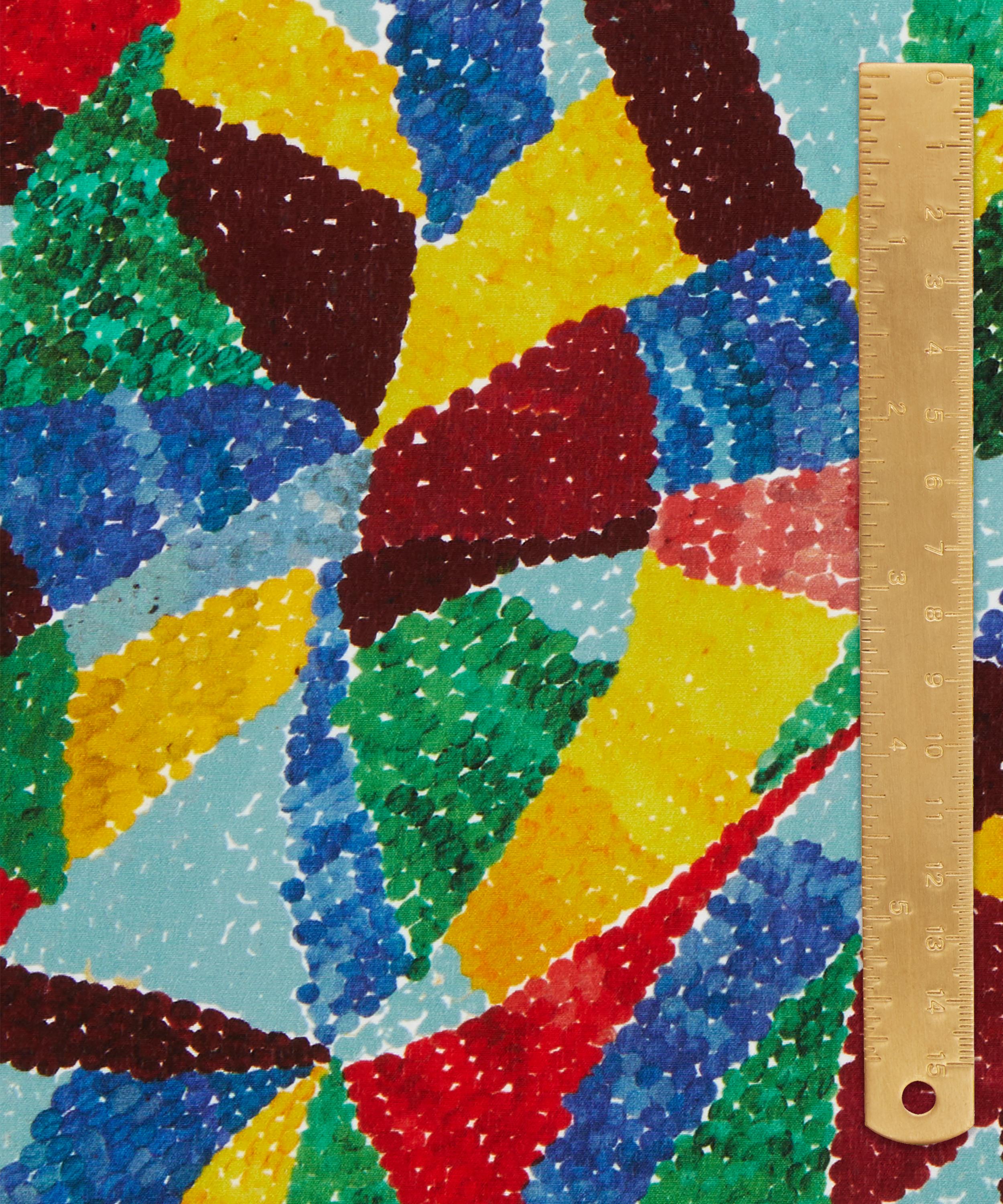 Fracture is a new design created by the Liberty Design Studio for the Futurliberty Collection and explores the geometric shapes and forms that can often be seen in Futurist paintings. The designers dipped the end of a pencil into acrylic paint, and stamped dots of colour on to paper to create the interlocking shapes and forms. The variation in tones within the paint create a layered feeling of movement and texture.