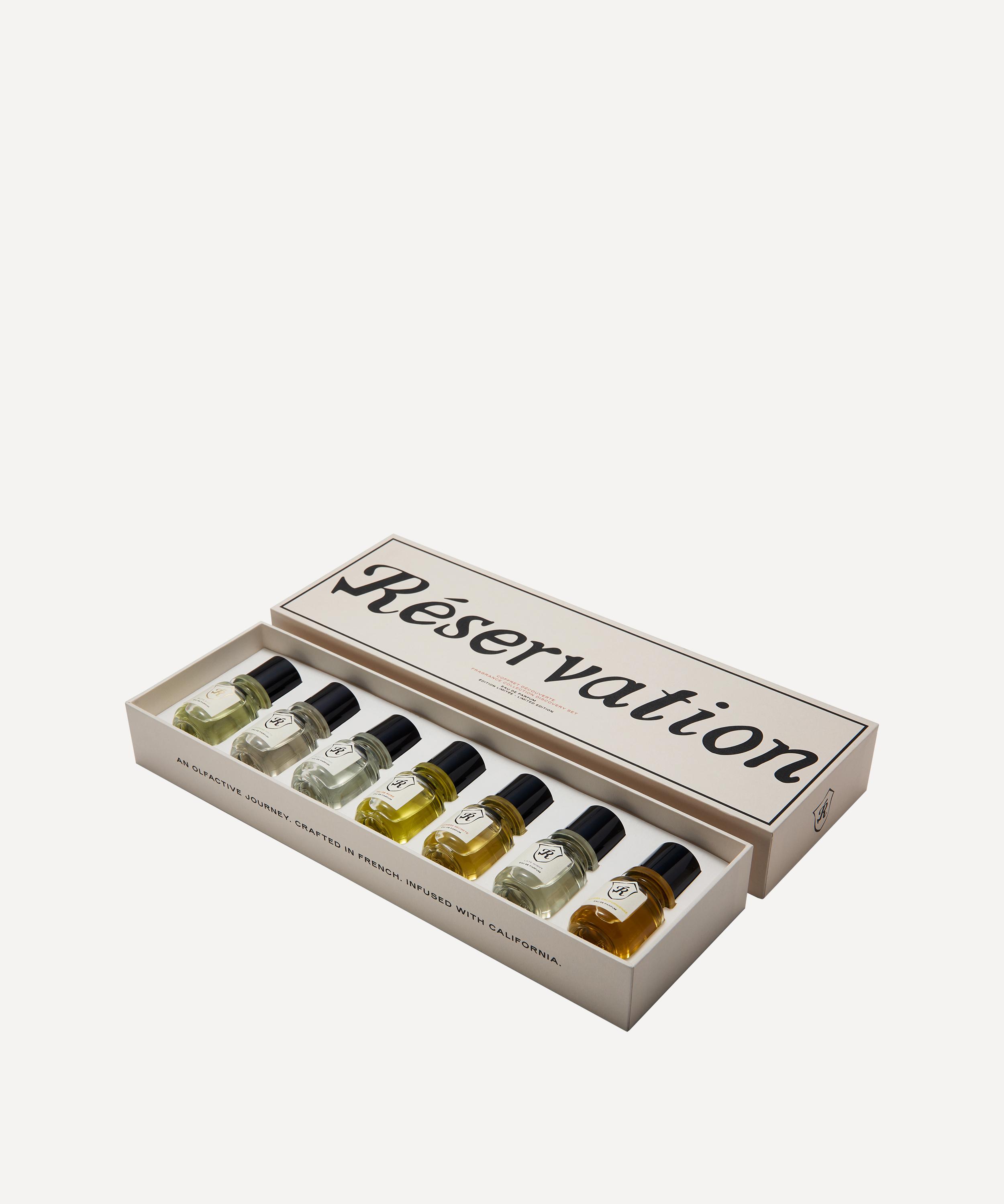 Discover the signature scent for your everyday allure with Réservation Parfum’s Fragrance Collection Eau de Parfum Discovery Set, comprised of various fragrances that radiate unique charm.
