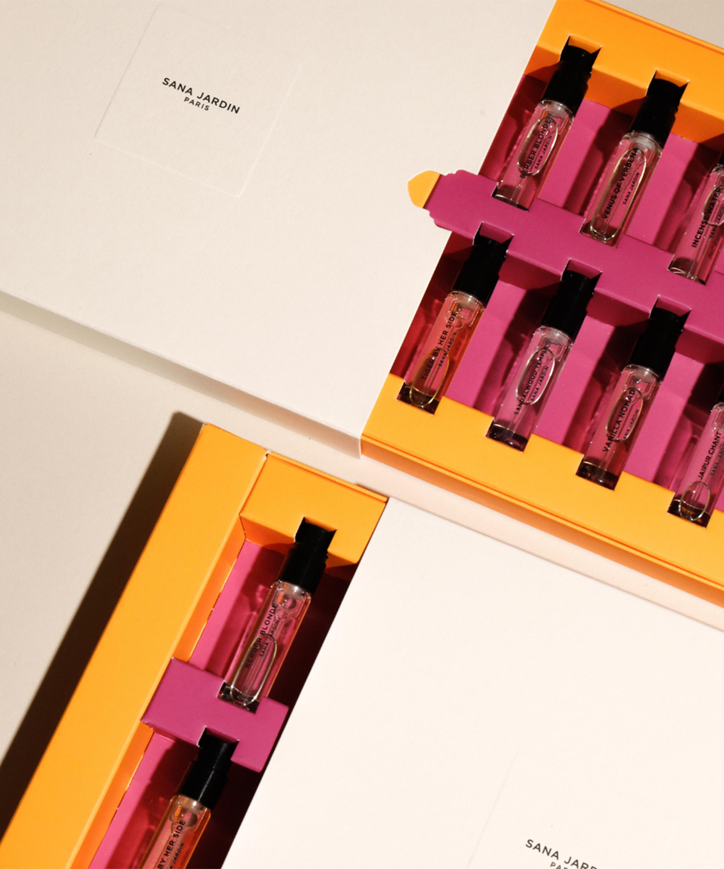 Discover your new signature fragrance with this eight-piece eau de parfum discovery set from sustainable Parisian fragrance house, Sana Jardin.