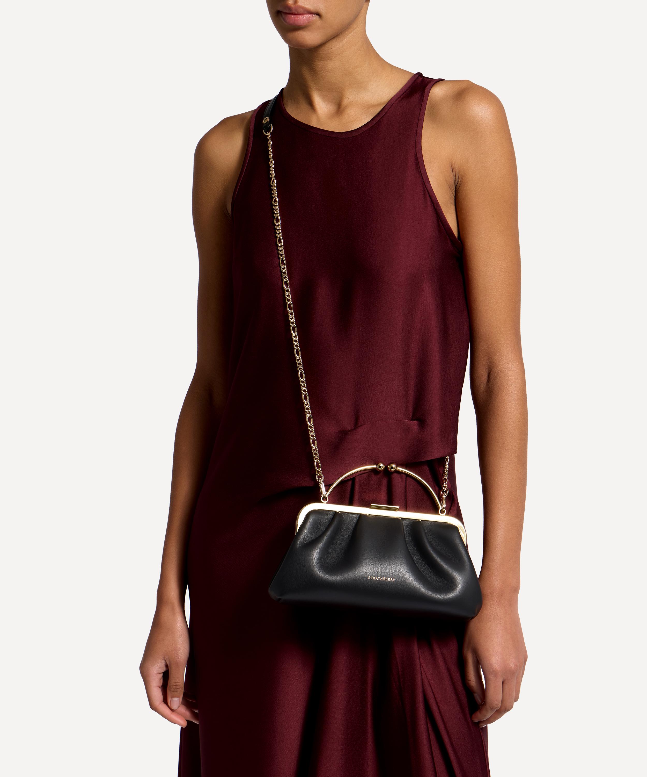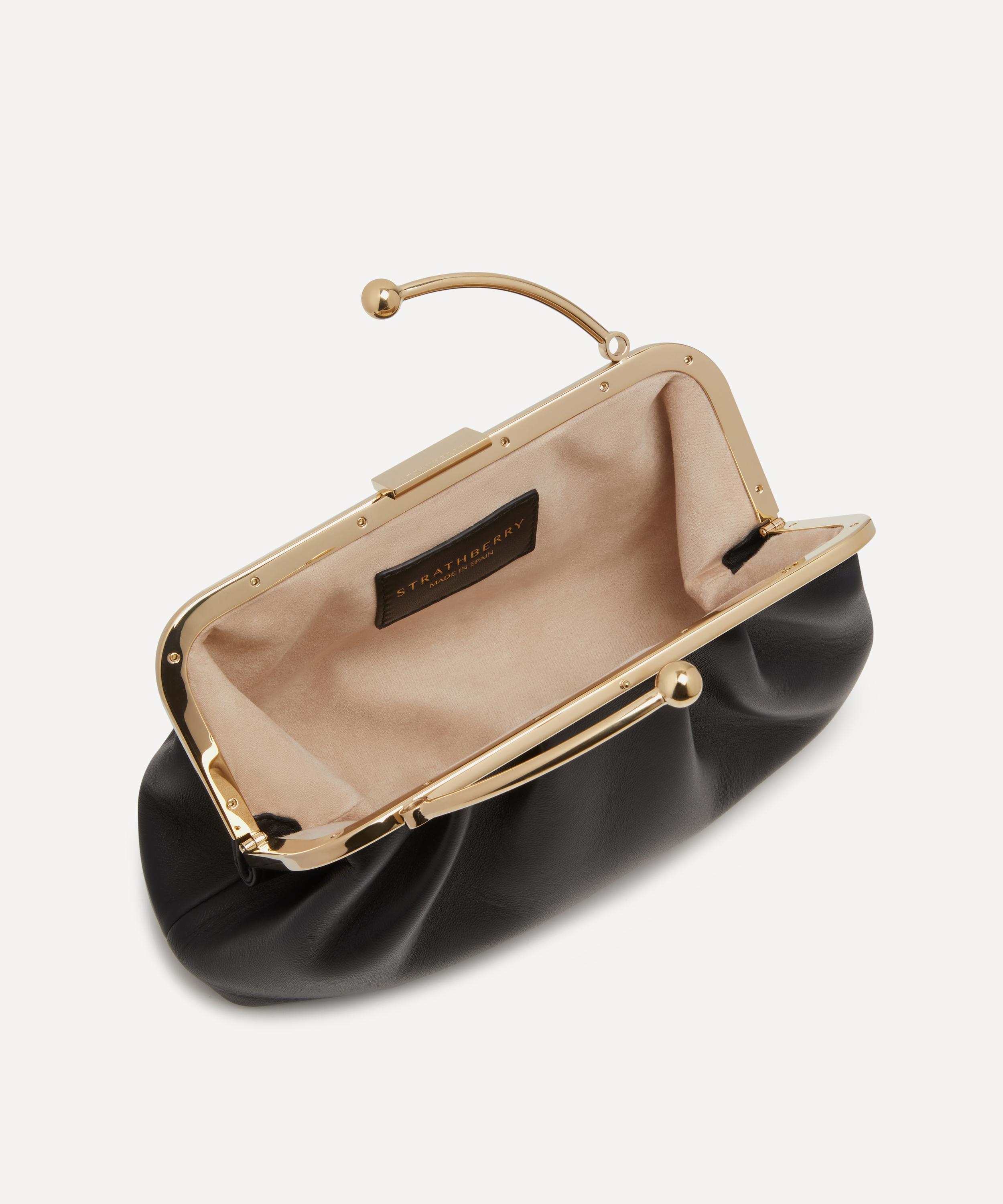 Strathberry’s blend of artisanal flair and contemporary design is reflected in this Frame Clutch bag. Handcrafted in Spain, it’s shaped from supple leather to a soft, slouchy profile with a compact internal compartment that keeps your essentials at your fingertips. The bag is defined by polished gold-tone metal music bars – a signature motif used here to create a curved top handle – and arrives with an optional chain strap for versatile carrying.