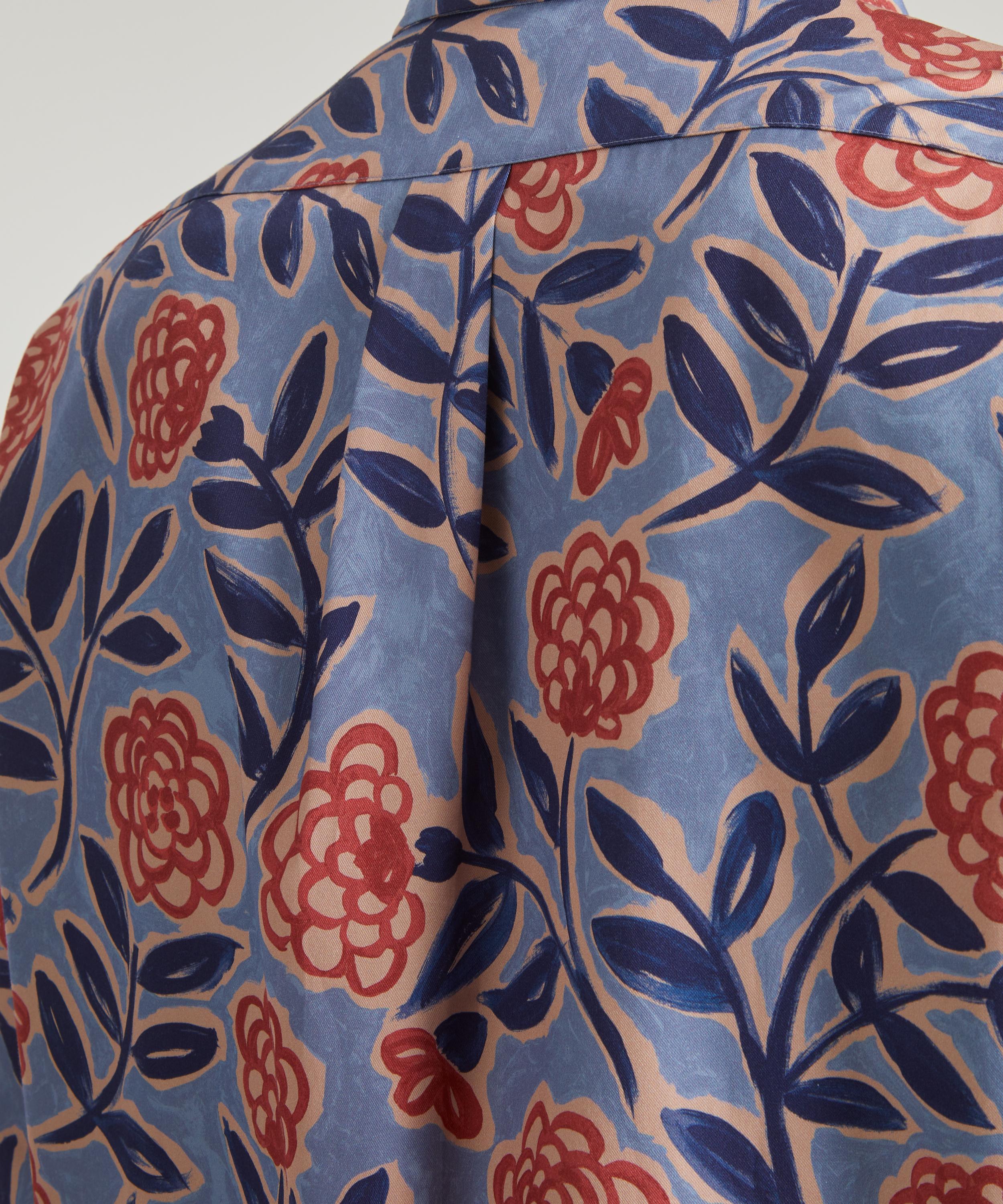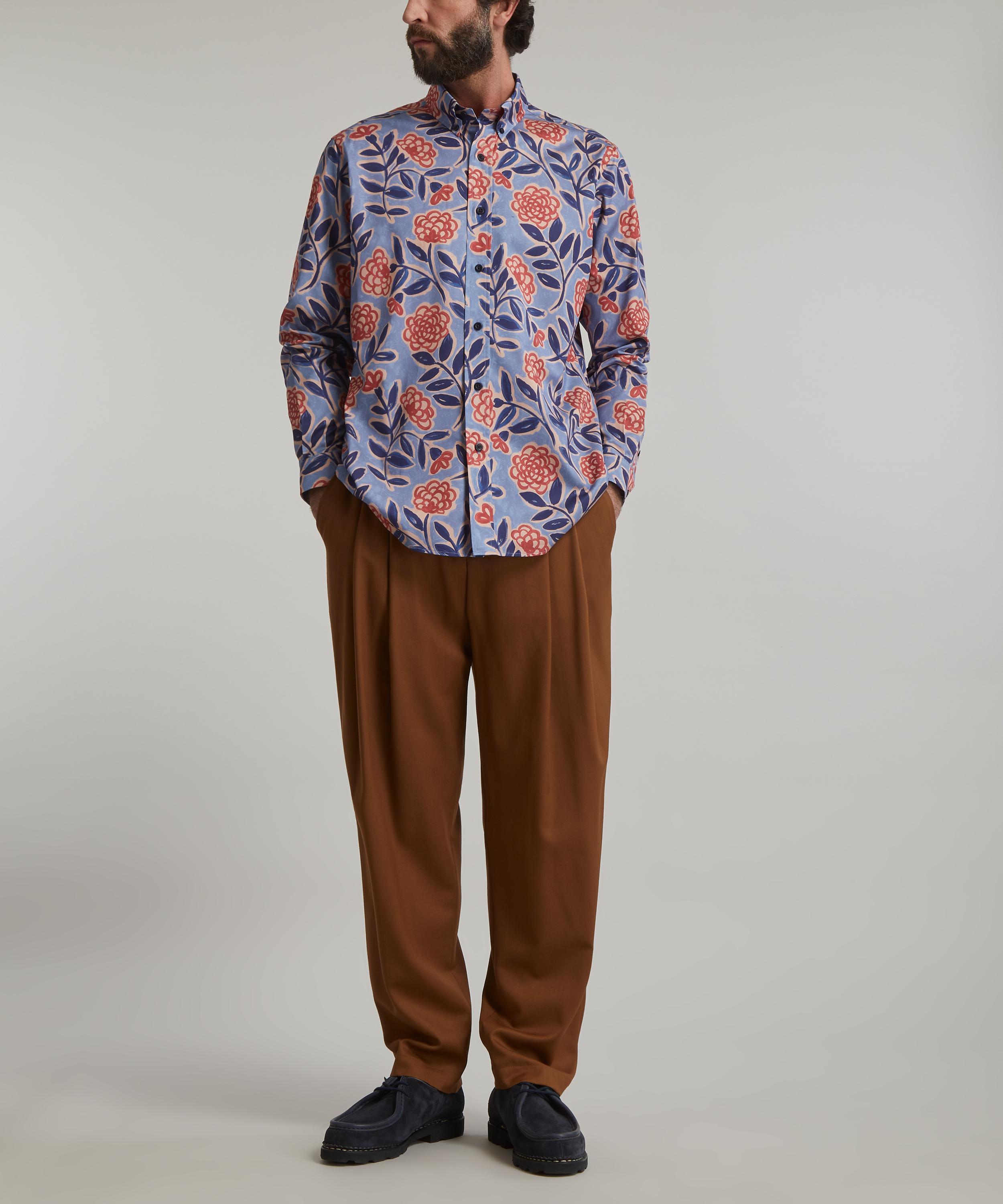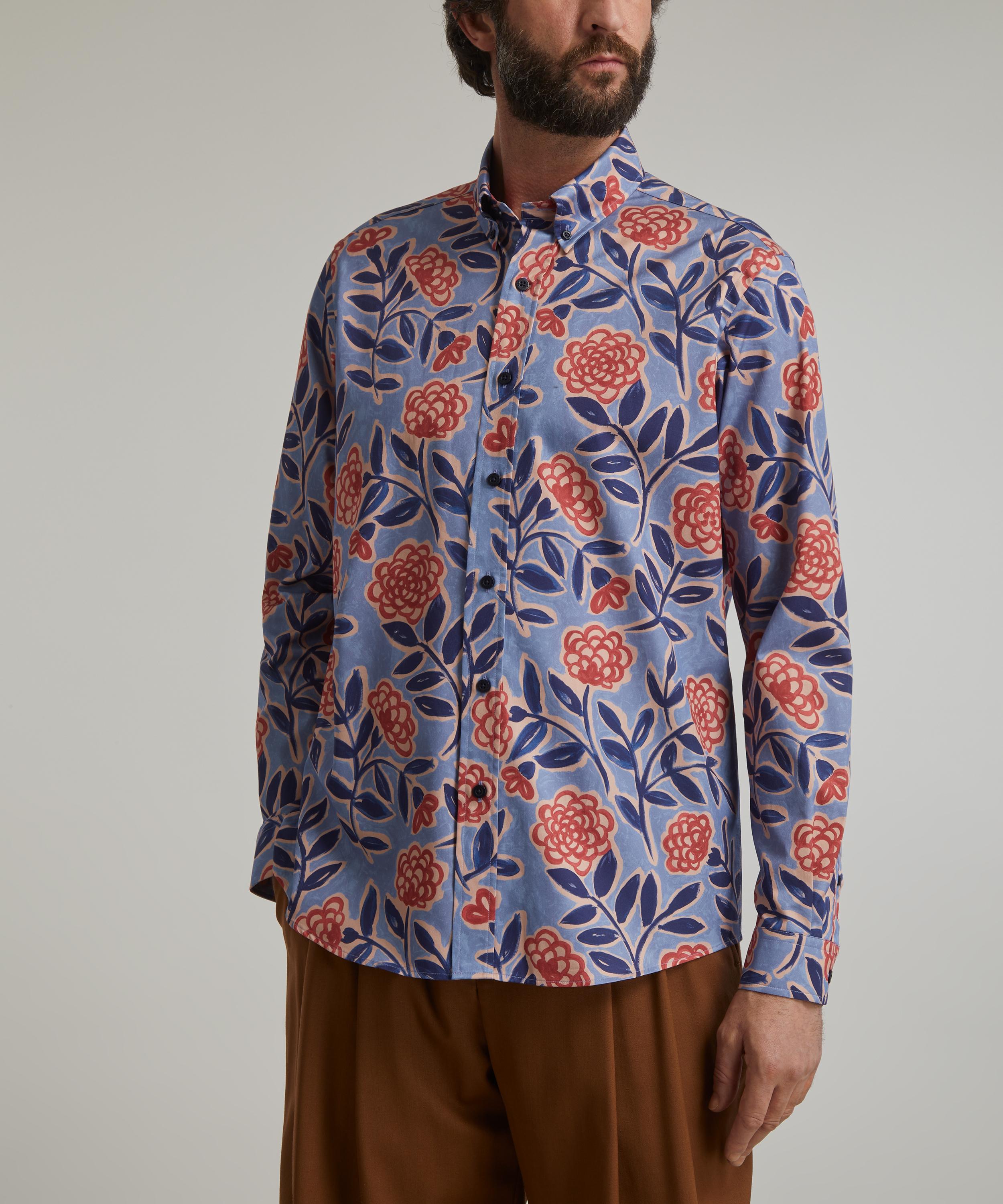 Developed to complement every build, our Alex men’s shirt has a classic silhouette that looks equally good fully buttoned or undone as an overshirt. Constructed from heavier-weight 185gsm cotton twill and finished with corozo nut buttons, the shirt is expertly printed in Italy with our Frieze design from our AW19 archive collection. Featuring simple, bold florals sweeping over the fabric in broad brushstrokes this hand painted design is a wearable piece of art. For your off-duty edit, layer the long-sleeved shirt over a clean white tee with shorts and sneakers, or elevate with suit trousers and a jacket for a classic look.