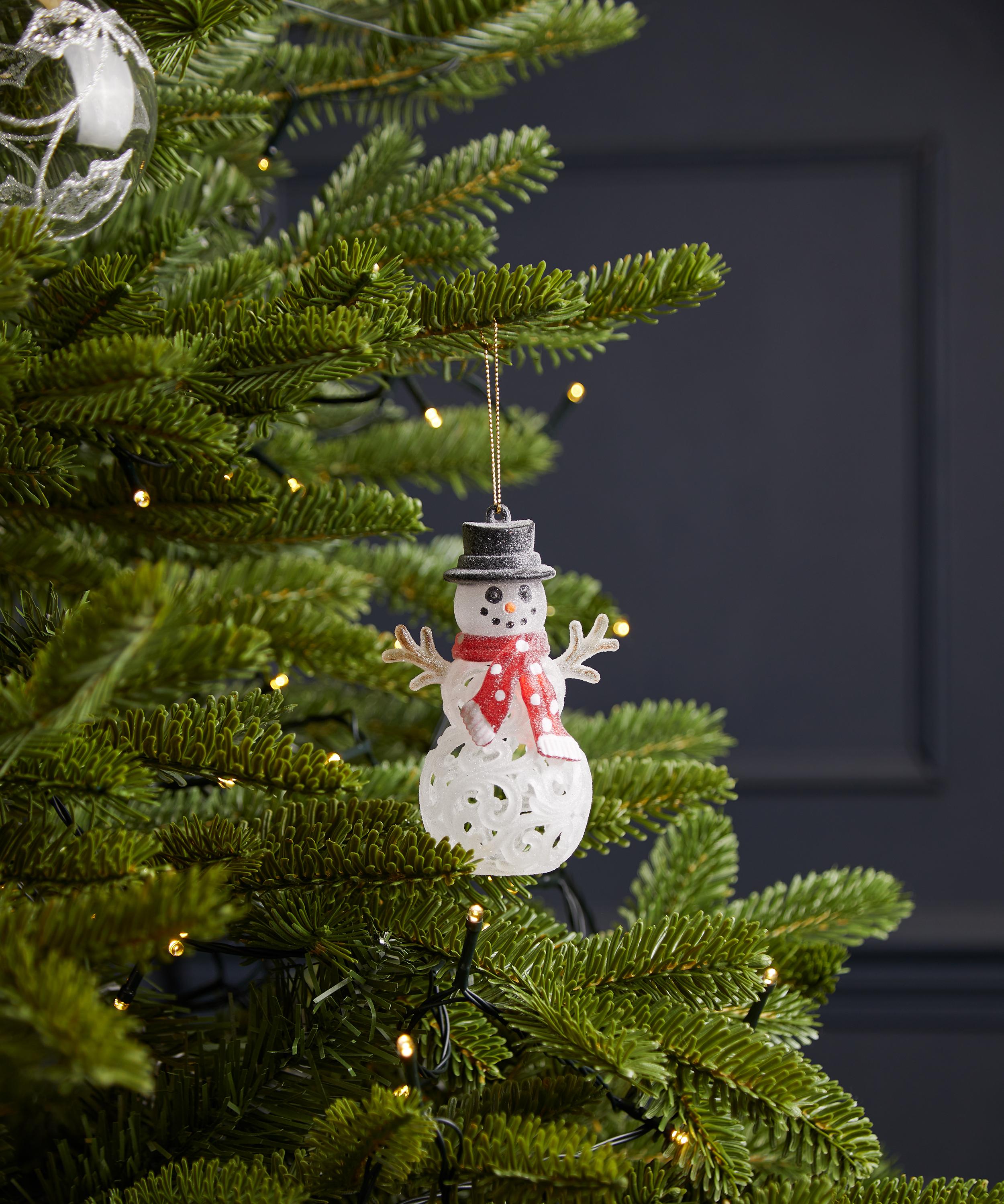 In all its whimsical wonder, the Frosted Snowman with Scarf ornament adds the perfect touch of playful gaiety to this year’s merry fun.