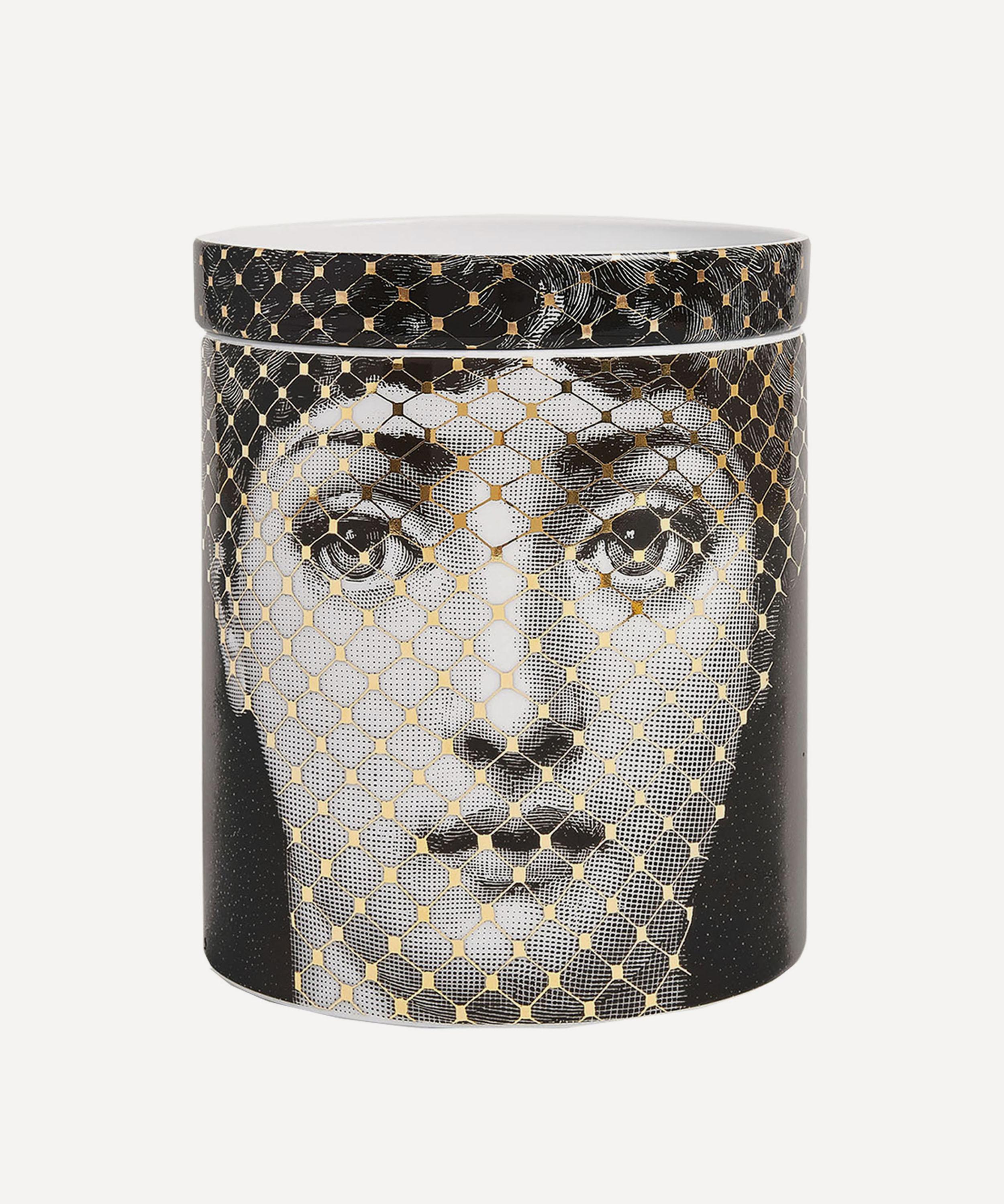 Infuse your home with the luxe charms of Fornasetti with the Mascherina scented candle - housed in a vessel featuring the designer’s muse, Lina Cavalieri. The ceramic jar houses an allergen-free vegetable wax candle, infused with Fornasetti’s Frutto Proibito scent – a seductive fragrance that awakens the senses and fills your home with a rich aroma of Mediterranean and citrus top notes paired with jasmine, tuberose and sweet rosewood caresses.