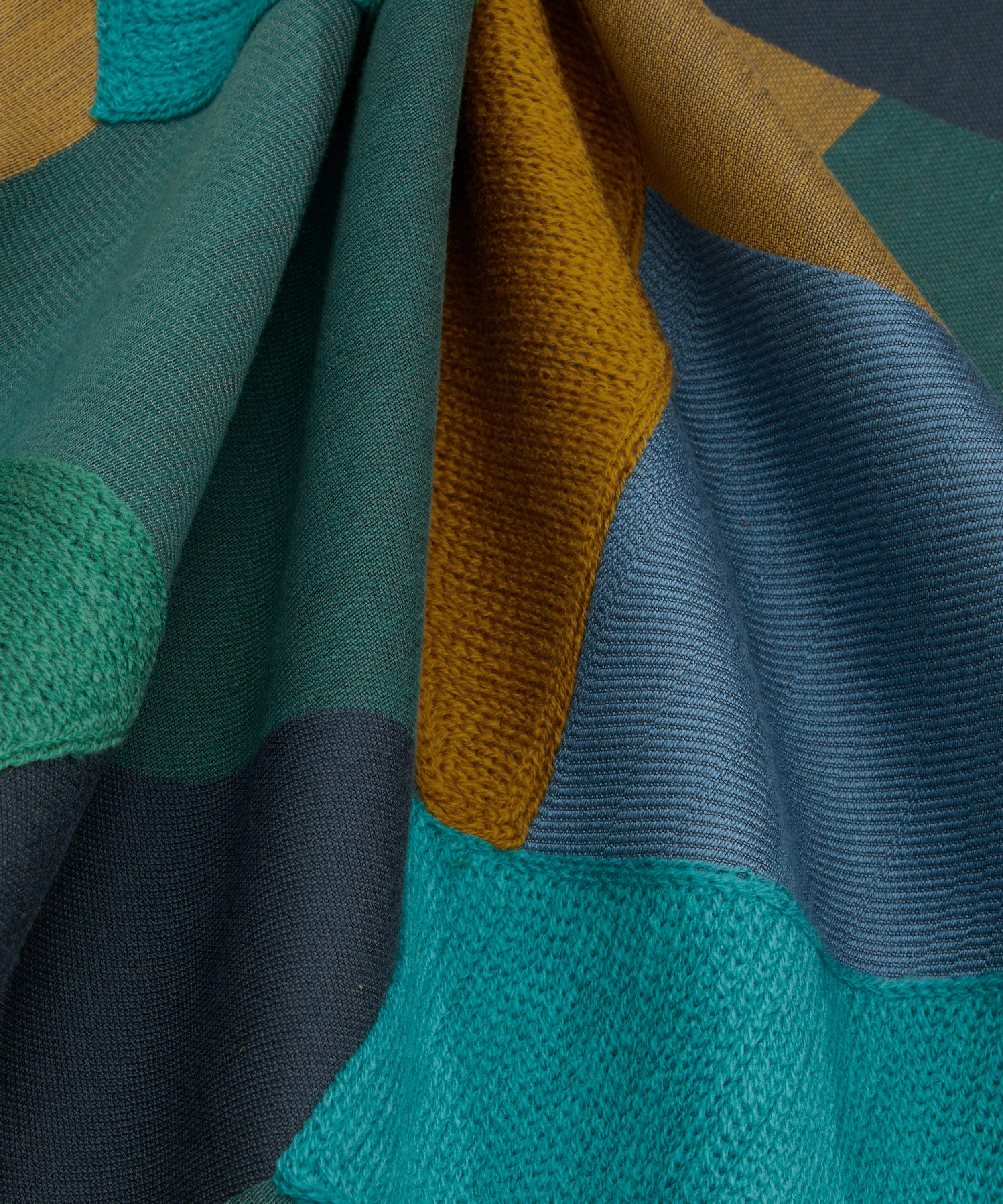 Future Embroidery is inspired by the beautiful geometric fields surrounding interior designer Federico Forquet’s home in Tuscany. The print features a collage of jacquard woven and embroidered shapes, created using a hand-guided machine – ideal for drapery and decorative accessories such as cushions.