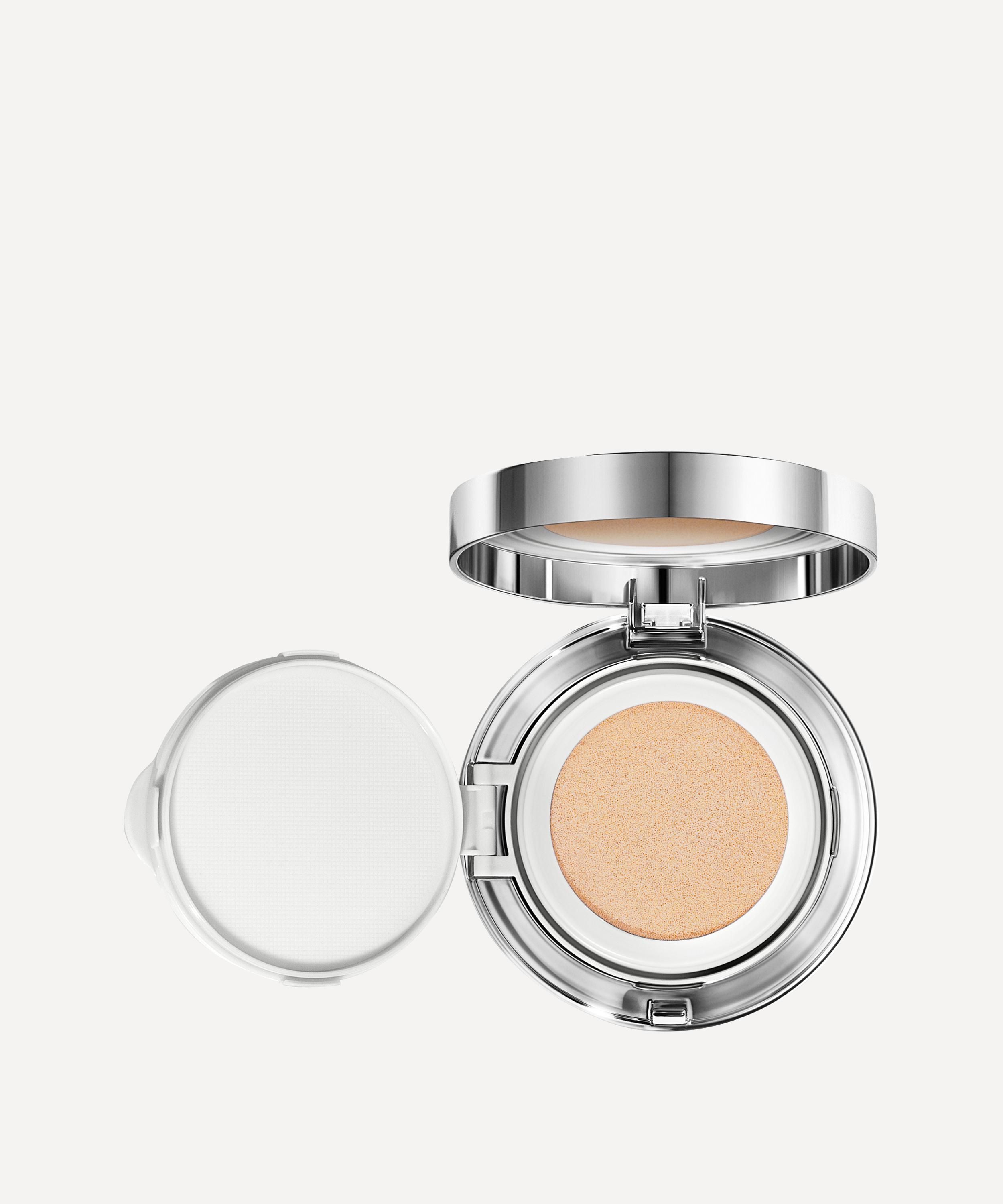 Lightweight and instant-perfecting, this refillable cushion foundation is super-powered with skin care ingredients that blur imperfections to harness a flawless complexion. A network of sugars forms an instant shield against pollution, whilst bionymph peptide stem cell extract softens the appearance of fine lines, and high water content delivers a natural, fresh look. Each shade is flexible and adapts to skin tone for a perfect colour match, while the cushion compact means ultimate buildable coverage. True to the brand's philanthropic spirit, each cushion sold feeds an orphan baby elephant rescued by the Sheldrick Wildlife Trust.