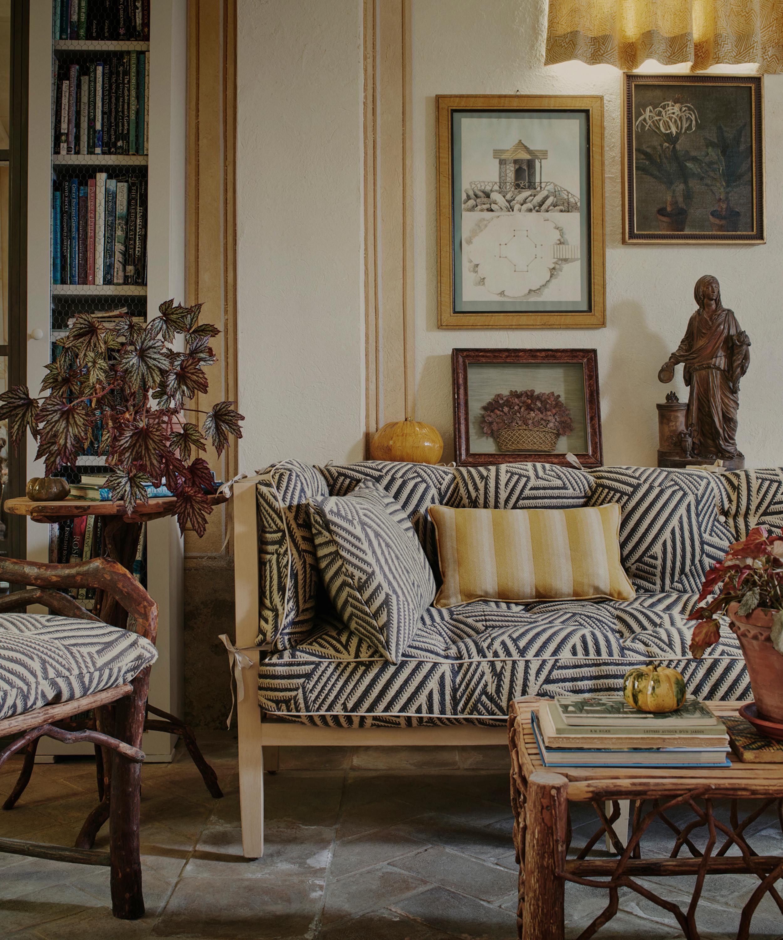 Liberty’s rectangular cushion is crafted in England from soft and luxurious wool-linen blend with a plump duck feather filling.