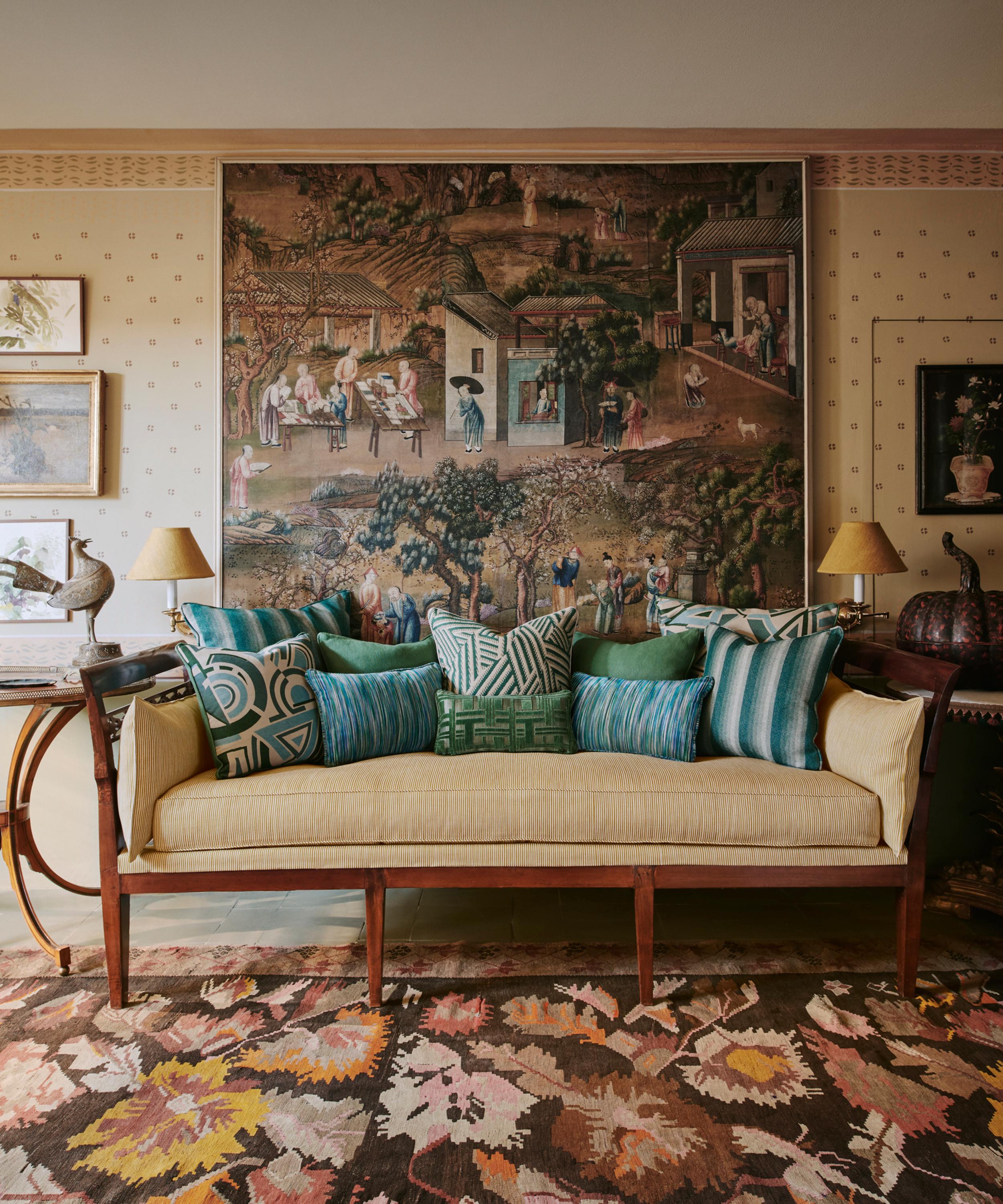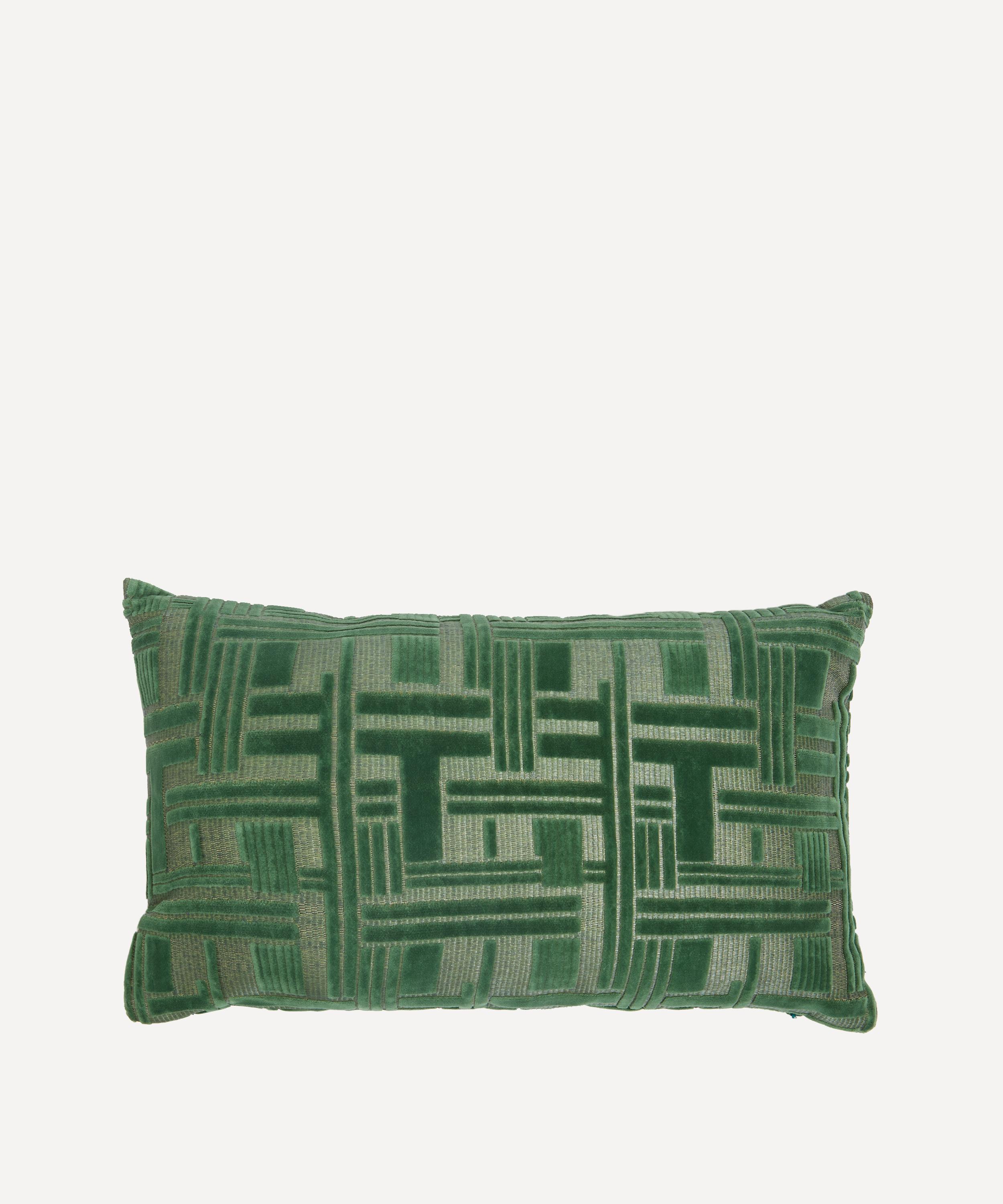 The cushion features our Tudor Columns print – a new design for the FuturLiberty collection – paying homage to the iconic Tudor Liberty flagship store, showcasing a high-density jacquard velvet, juxtaposed with a raffia ground. Throw the cushion on a daybed or armchair, for a luxe archive-inflected approach to modern interior styling.