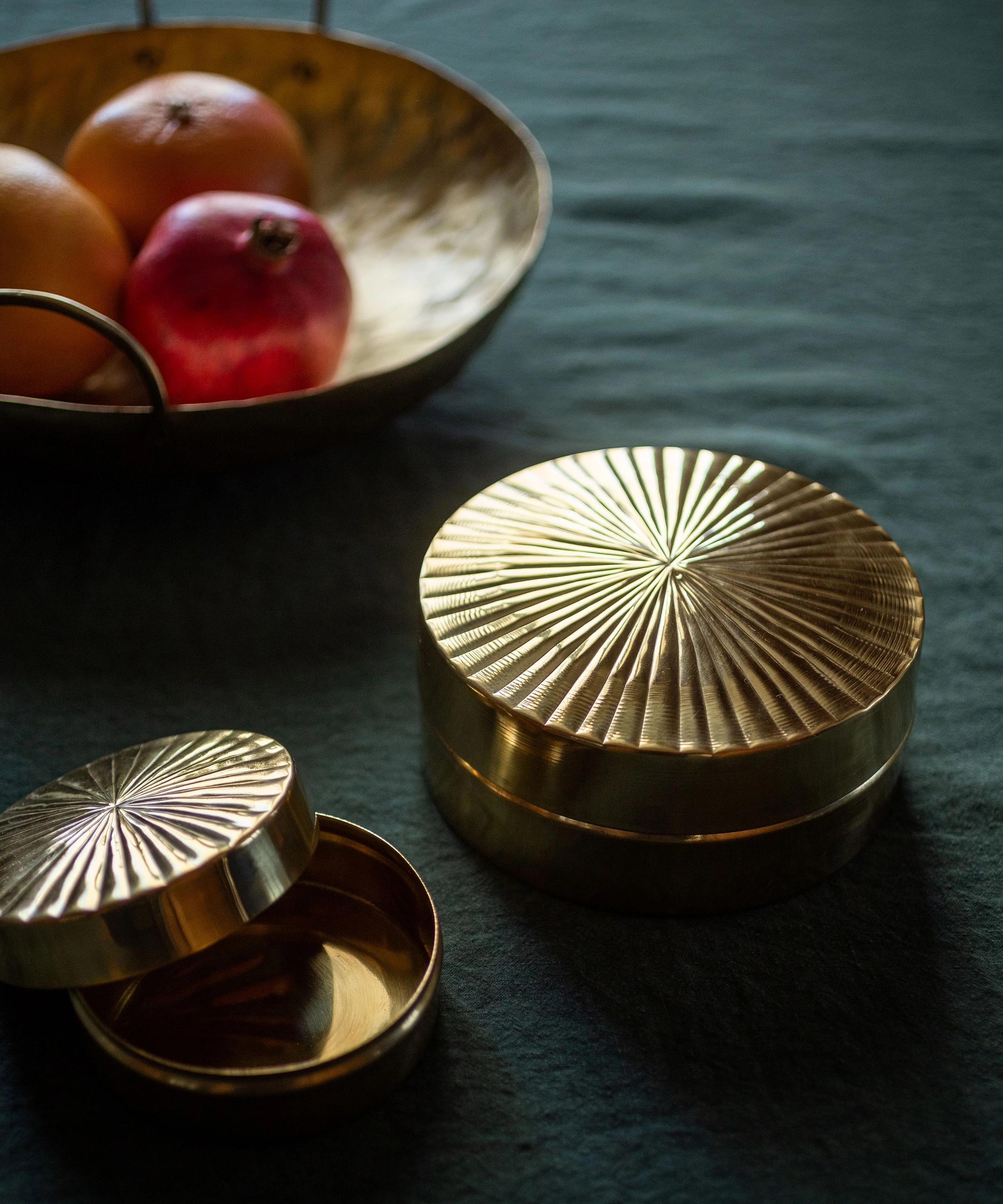 A homeware brand that celebrates the eclectic landscape of a lived-in home, this box features a tactile sun motif to the top, constructed entirely from brass for a luxe finish - perfect as a pocket-emptier in your interior spaces.About Caravane