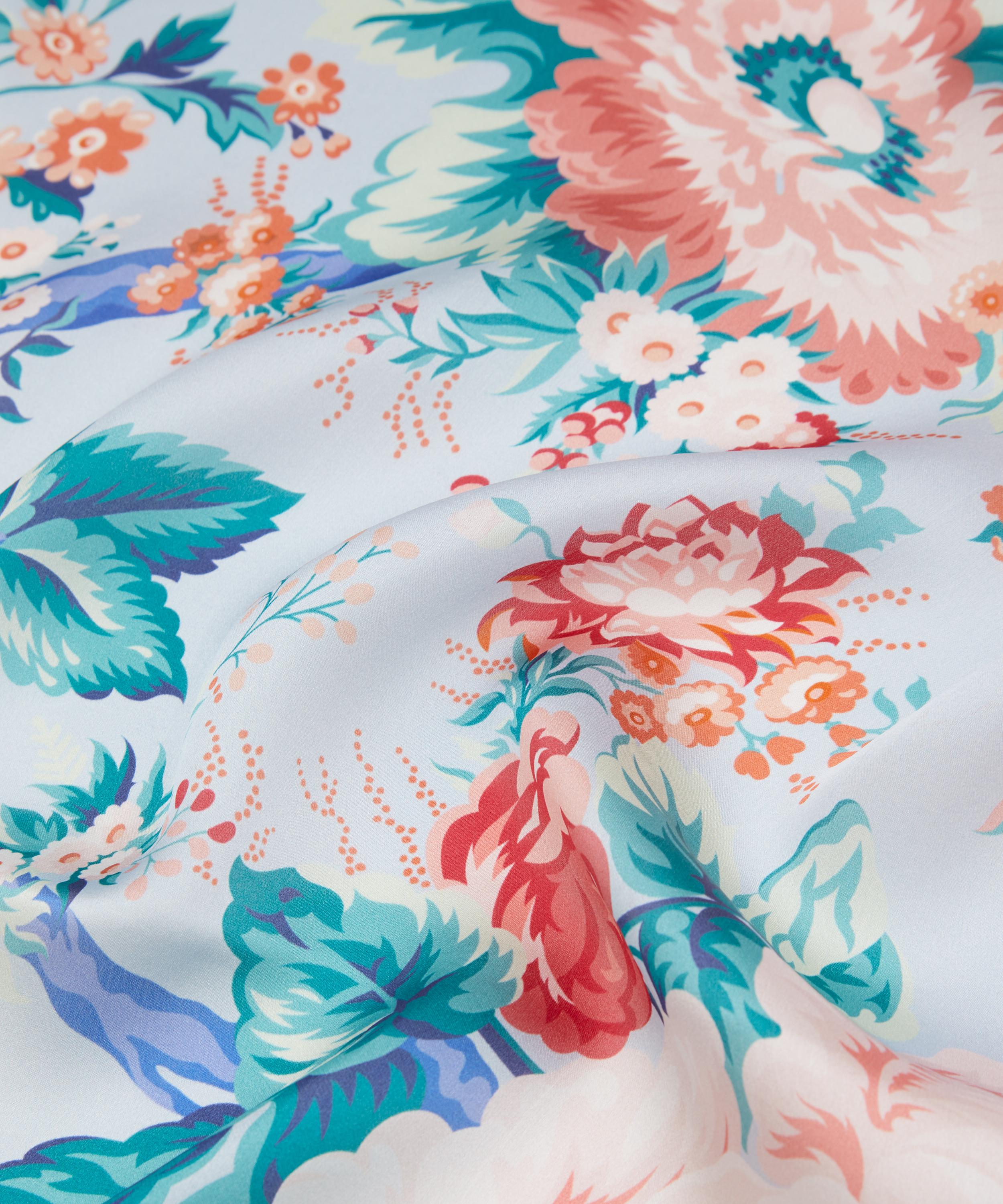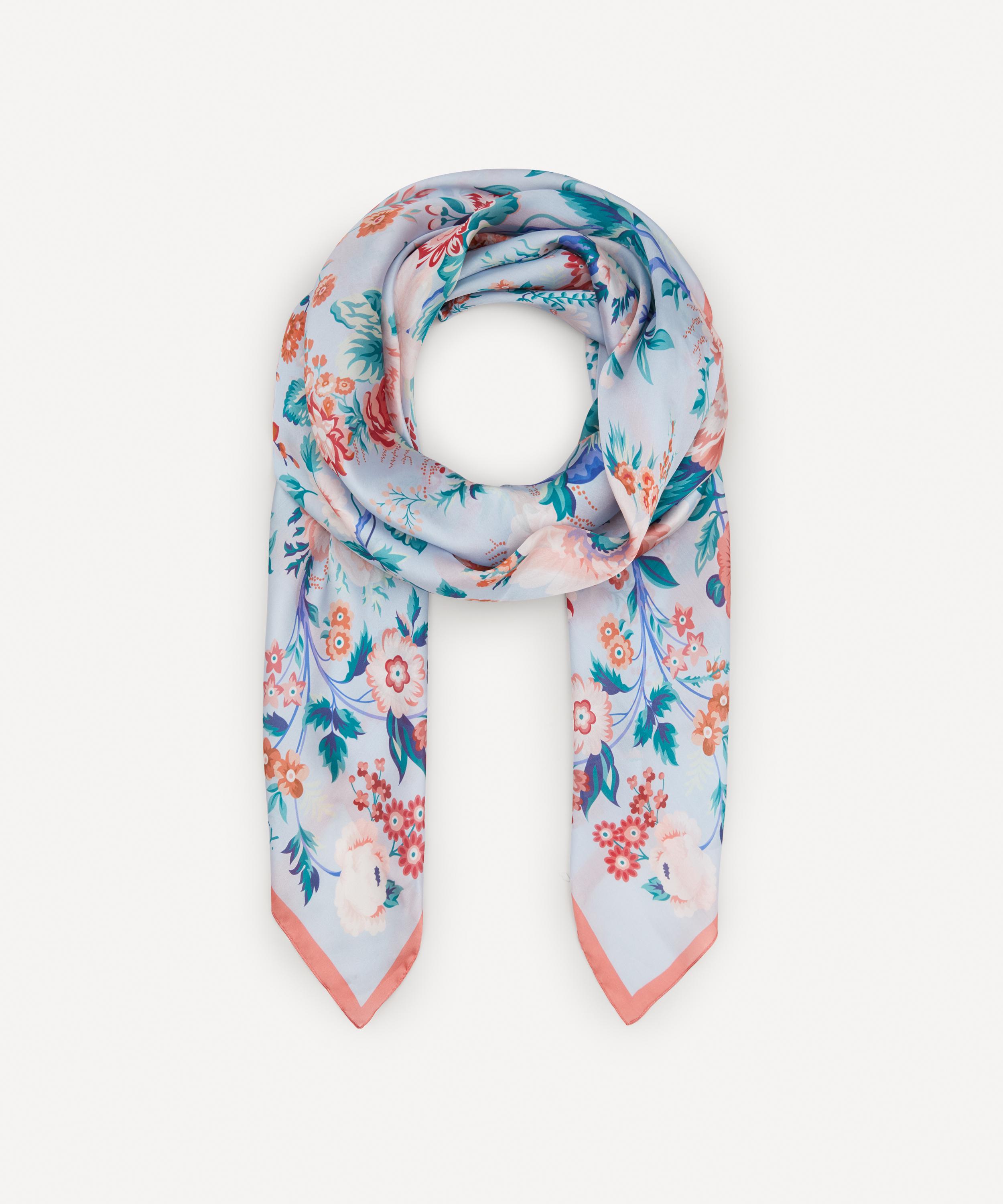 Whether looped around your neck or the handles of a tote, a Liberty silk scarf is a heroine of versatile styling. The scarf is printed with Garden of Life – an offbeat Tree of Life design drawn in soft pencil crayon with sunflowers, tulips, roses, pansies, lilacs, daffodils and lilies, inspired by Alice’s Adventures Through the Looking Glass and the garden of talking flowers she encounters there. A life-long modern icon to brighten up daily dressing.
