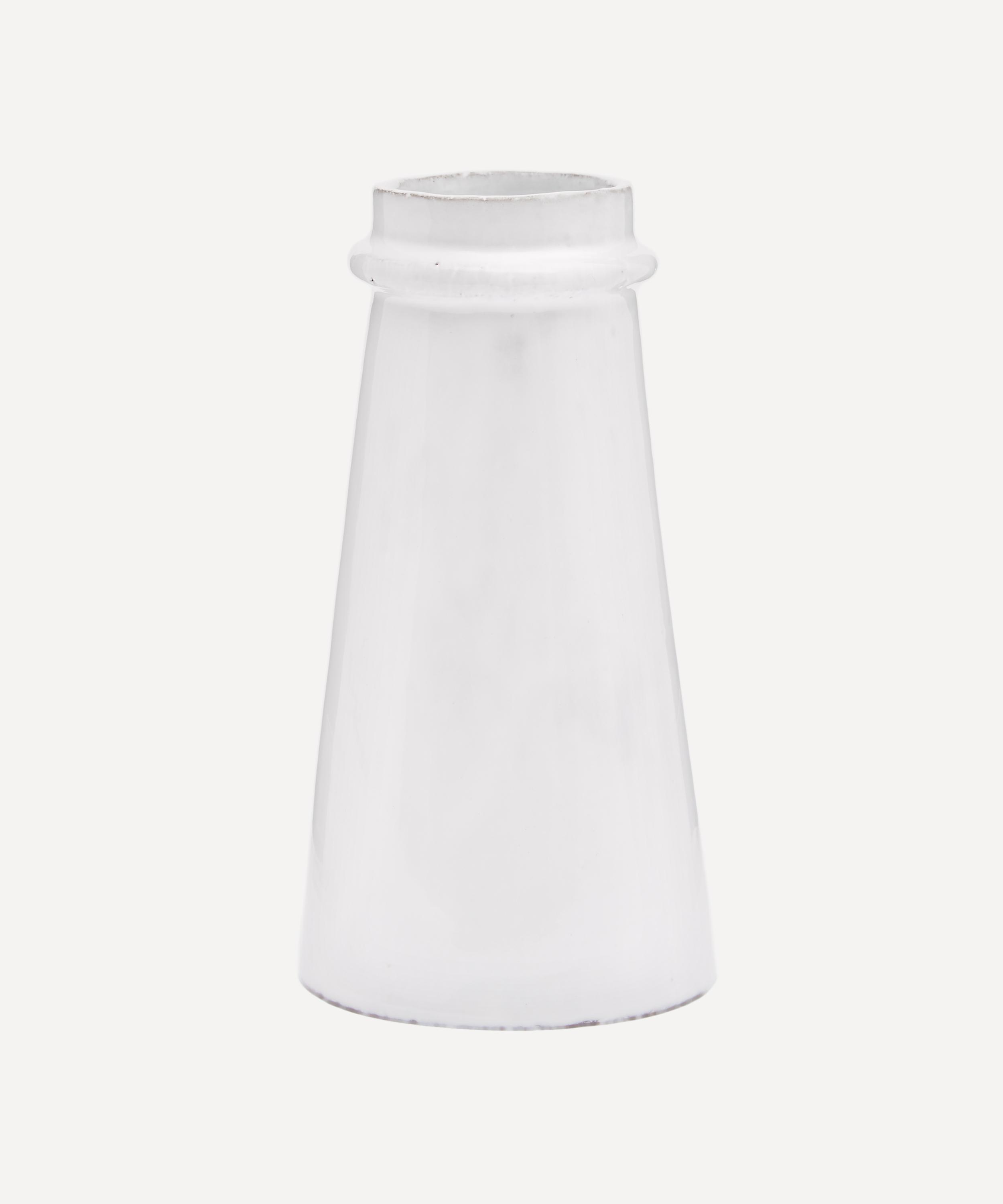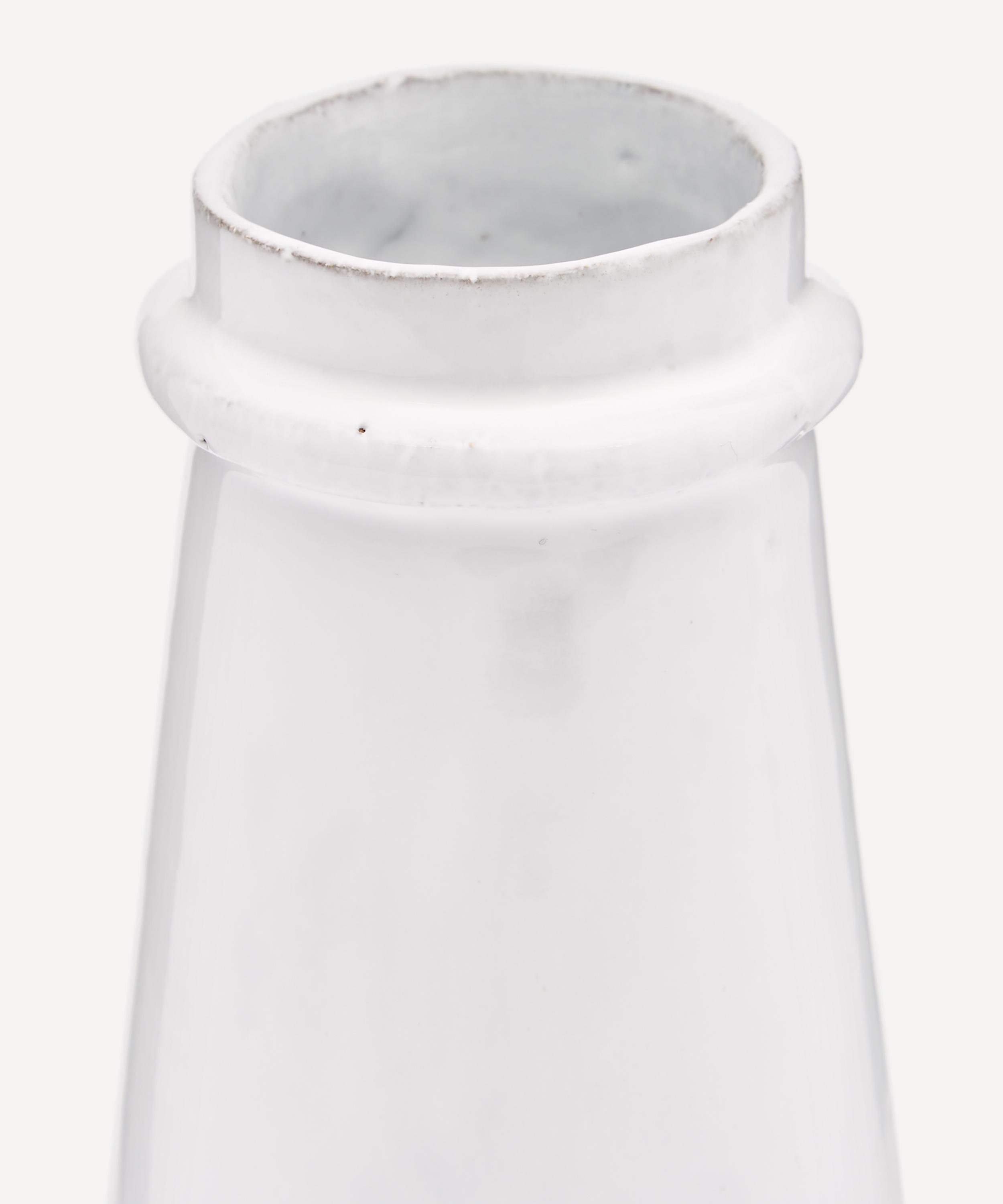 Votary of pre-industrial fabrication, Astier de Villatte is celebrated for being the one and only studio in Paris to hold and harbour the traditions of artisanal ceramic production. Restoring the ancestral systems of moulding and stamping, the Gargantua tiny vase is made using techniques from the Middle Ages which involve moulding a sheet of handmade clay, double firing the ‘biscuit’ piece and glazing the product in white enamel – a lengthy process that requires a drying time of up to one month. Characterised by a cylindrical, wide-bottomed silhouette, the tiny vase is engraved with the brand’s signature crest - depicting an interlacing A & V - alongside the initials of one of the 40 master artisans who created it. Each handmade piece tells a beautiful story, it romances and imparts a sense of nostalgia into its owner. Use this perfectly imperfect vase to display verdant fronds or vibrant bouquets.
