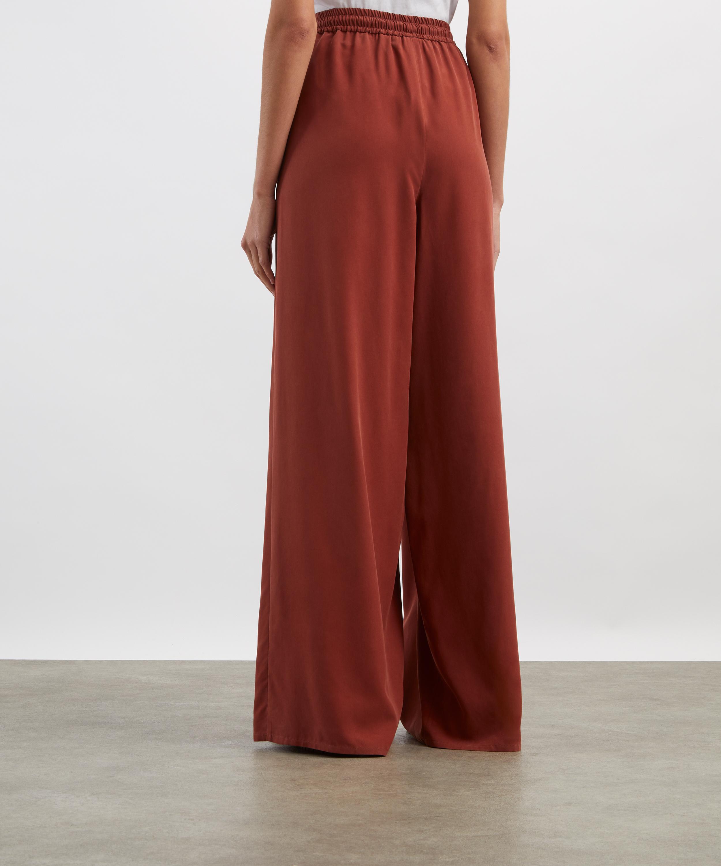Crafted from washed silk canvas in a rich terracotta hue, these relaxed trousers are defined by a voluminous wide-leg silhouette and finished with a drawstring waist for an effortless, fluid drape.