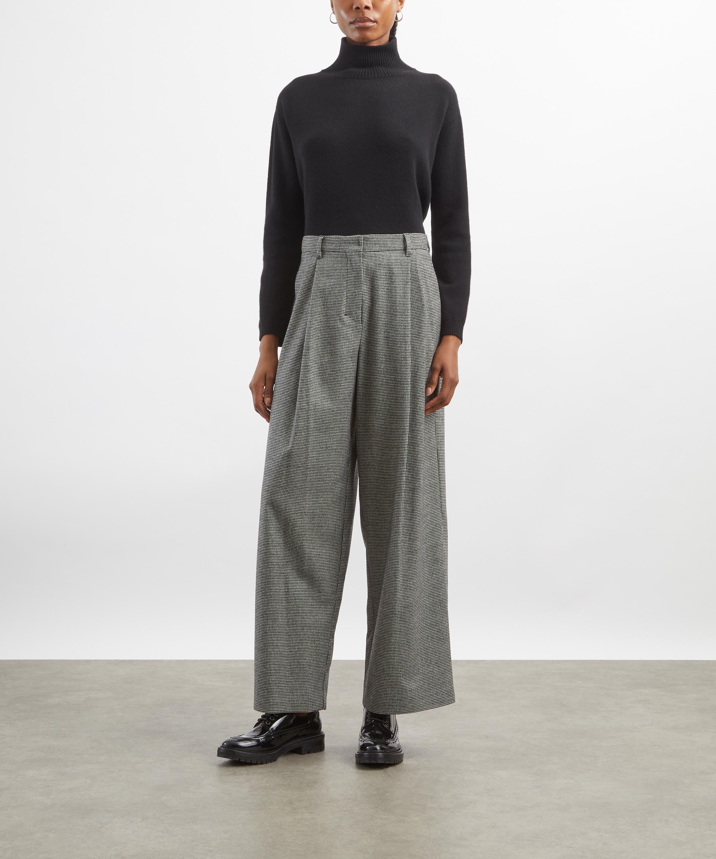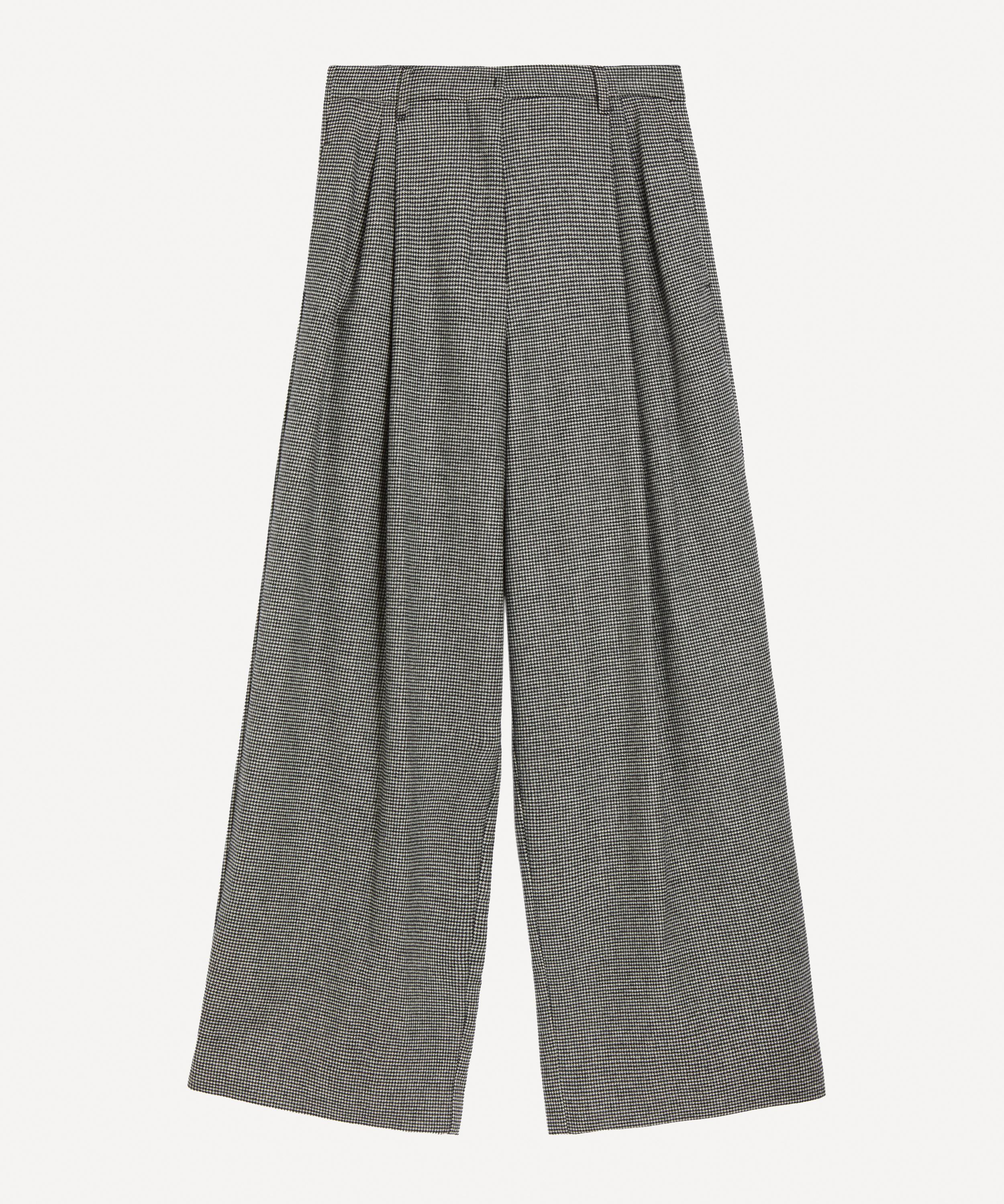 Cut from wool-cashmere Saxony fabric in a classic houndstooth pattern, these trousers feature a wide-leg silhouette with a high-cut waistband, slant side pockets, and pleated double-dart detailing at the front for a polished, tailored finish.