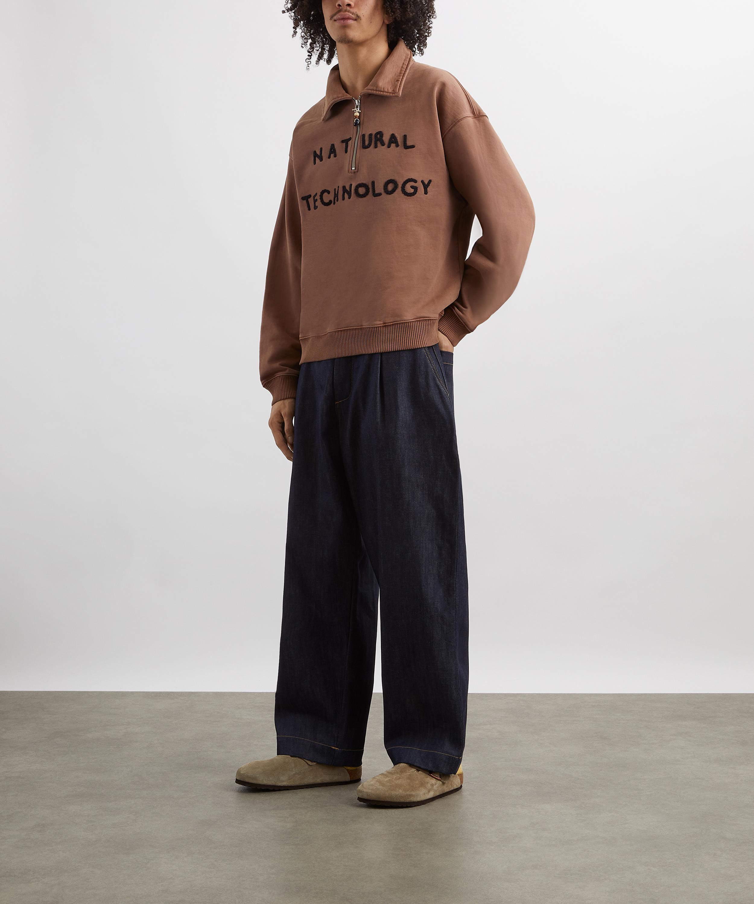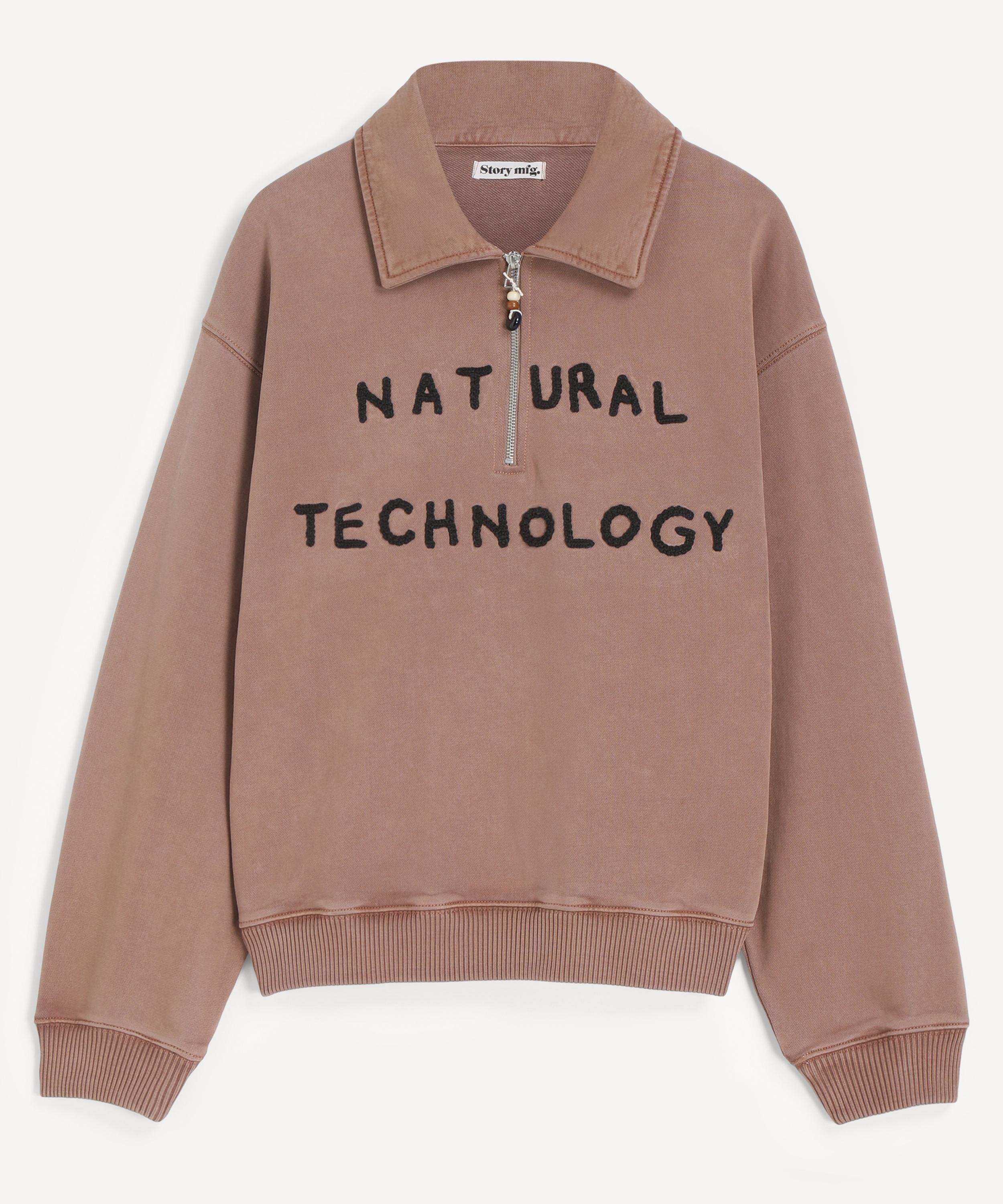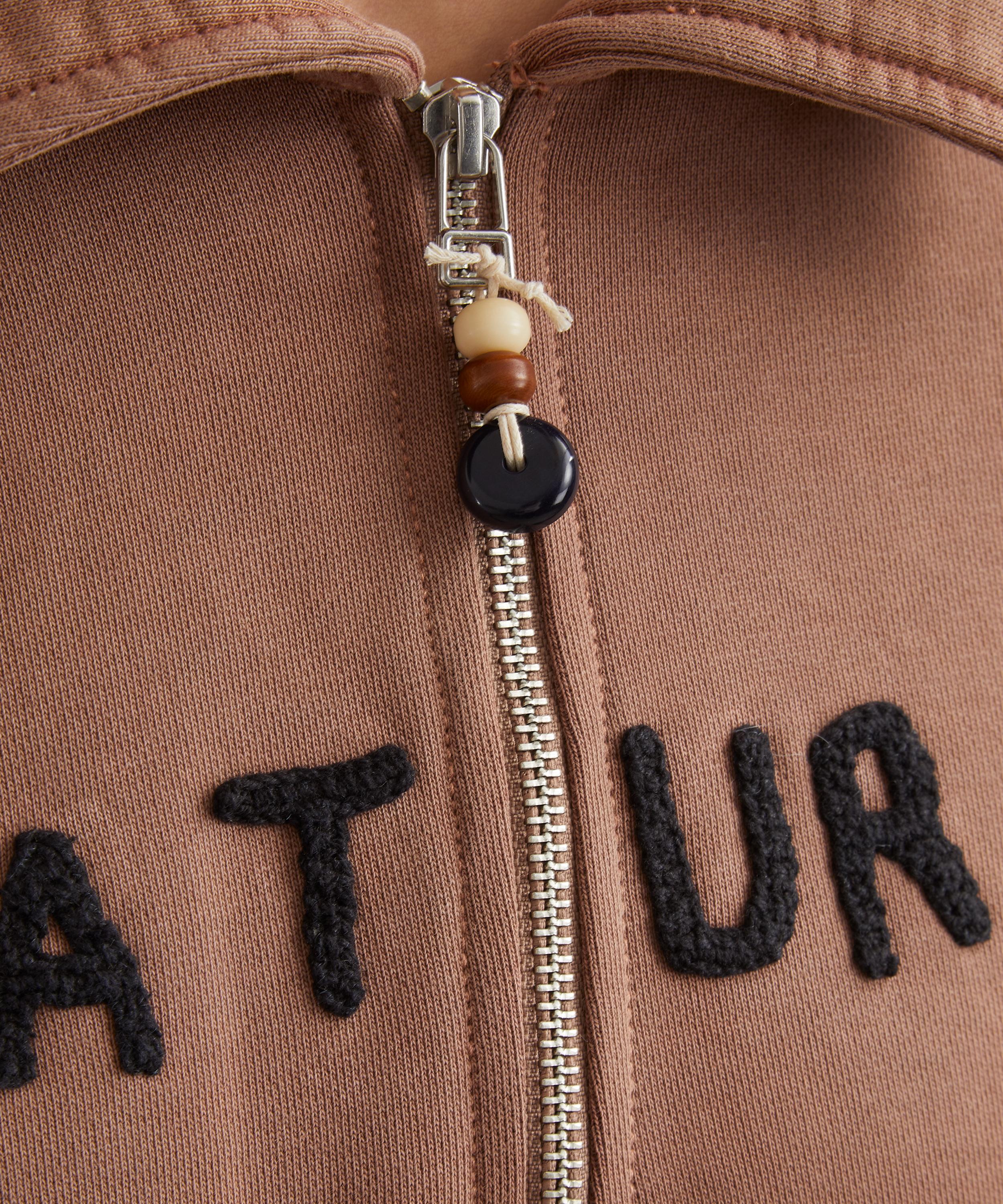 Crafted from heavyweight cotton jersey, the Geo Hoodie delivers a boxy, cropped silhouette with dropped shoulders and slouchy sleeves. Secured with a two-way zip, hand-crochet ‘Natural Technology’ lettering across the front lends an artisanal edge.