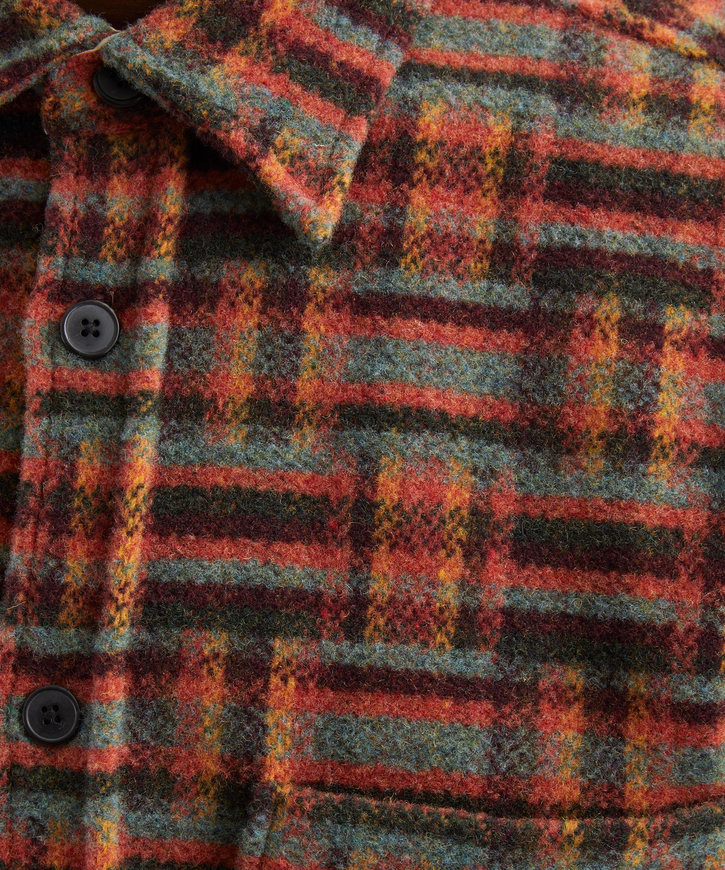 Beyond its expert tailoring, this wool shirt is crafted from thick, high-quality wool adorned with an abstract geometric design. Finished with a spread collar, button fastenings, curved hem, and front chest pocket, it balances meticulous construction with contemporary style.