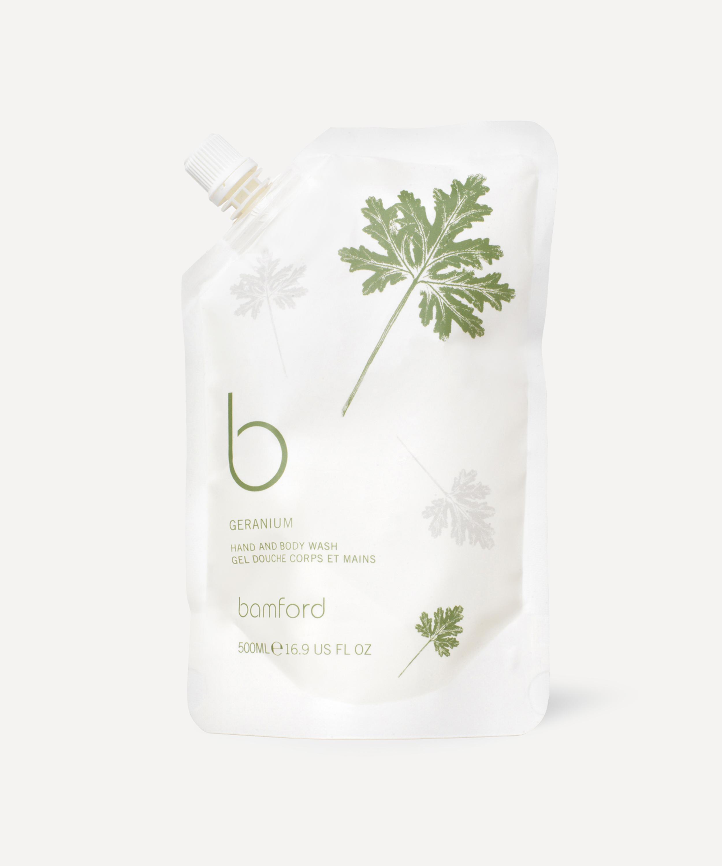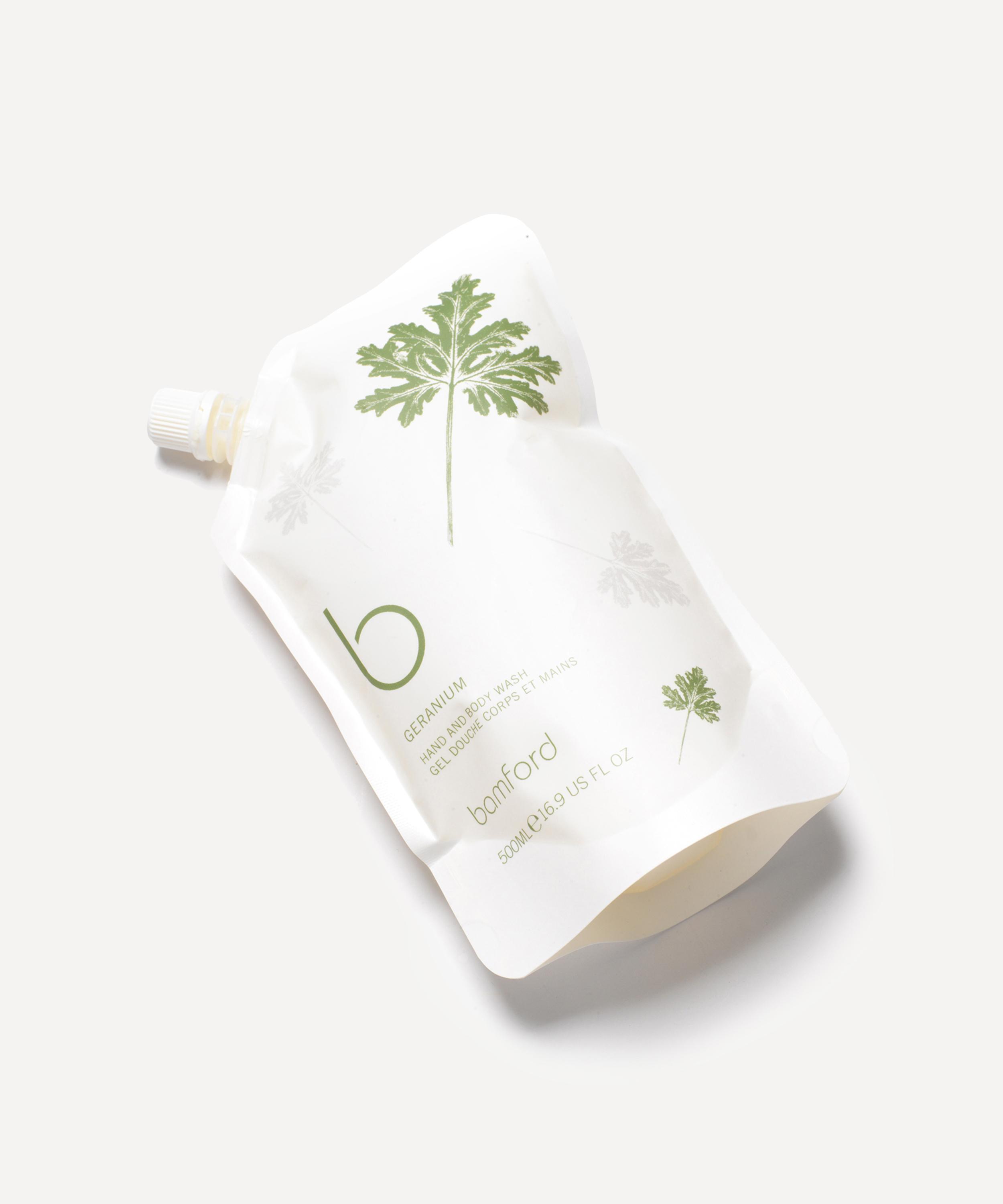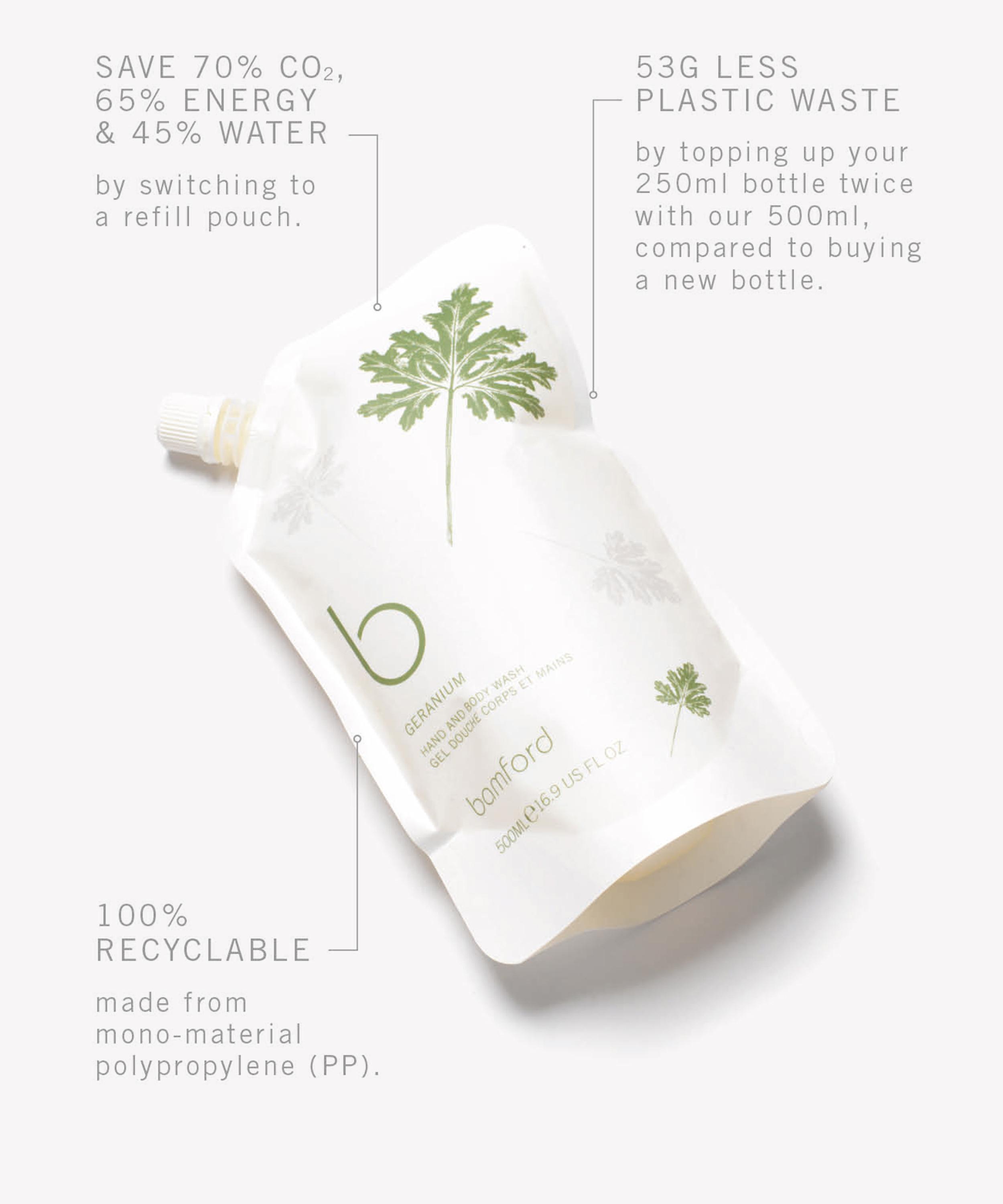 Top up your bottle of Bamford's best-selling Geranium Hand and Body Wash with this refill pouch, infused with an aromatic blend of plant-based cleansers, alongside fragrant extracts of lavender and peppermint.
