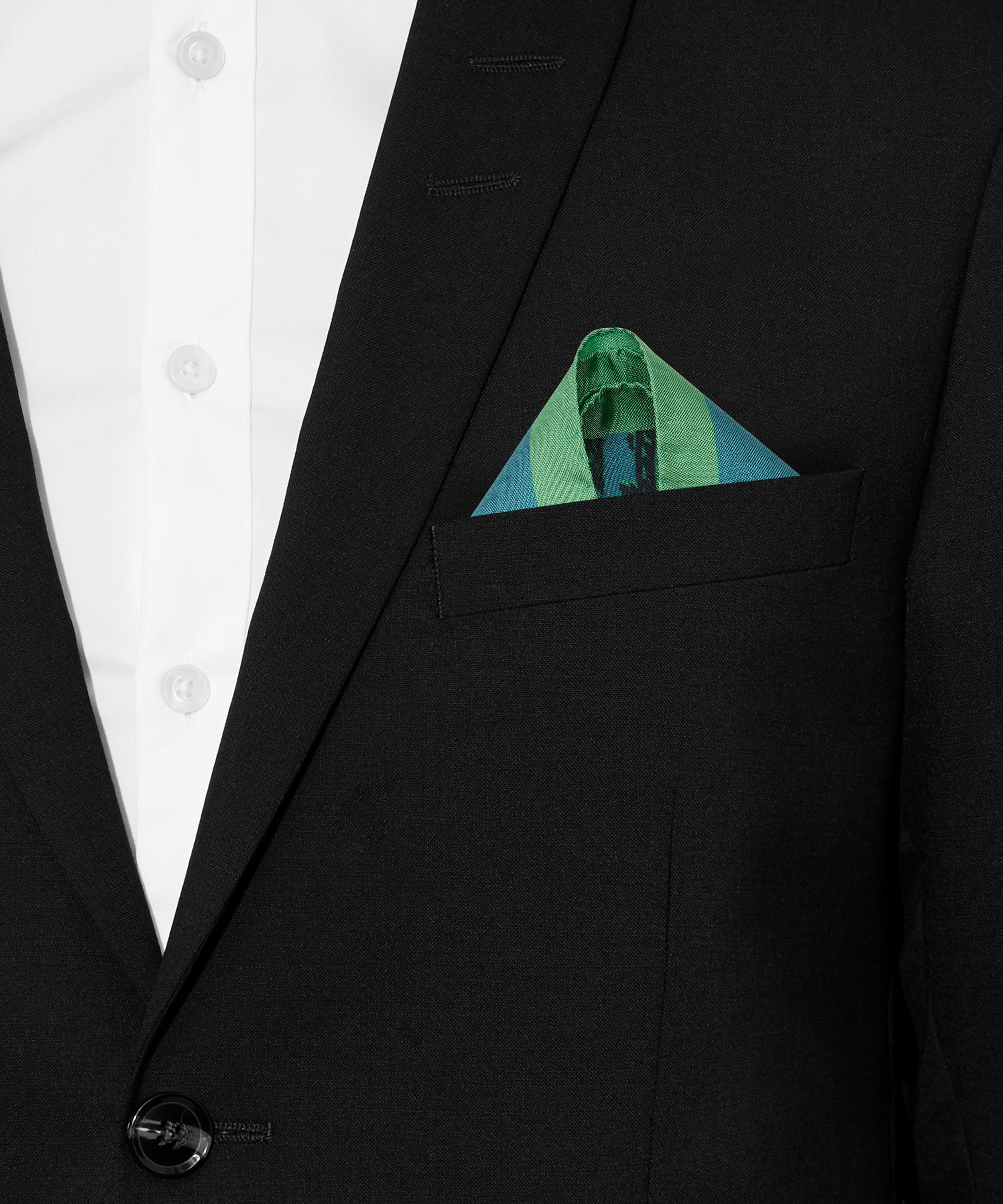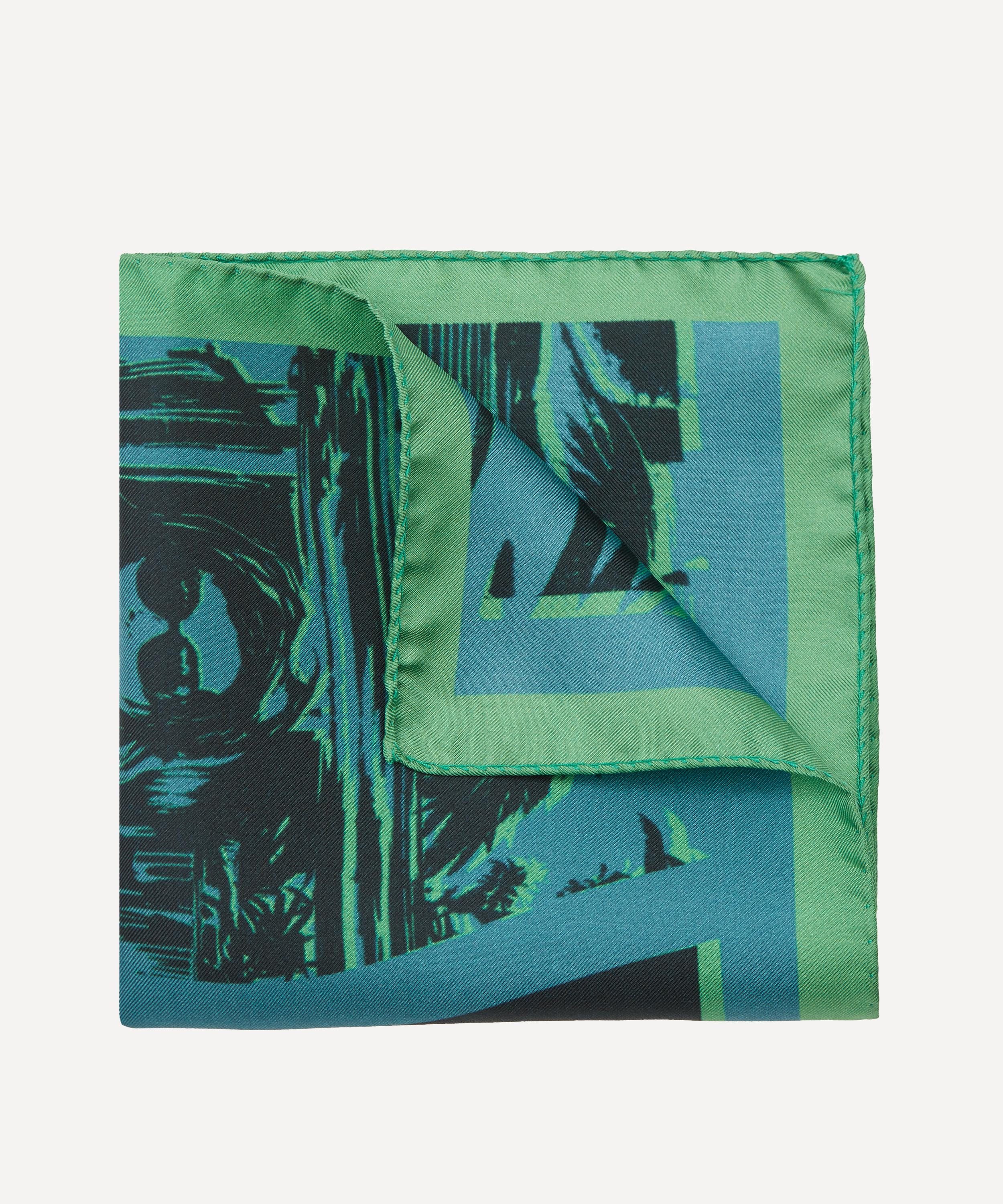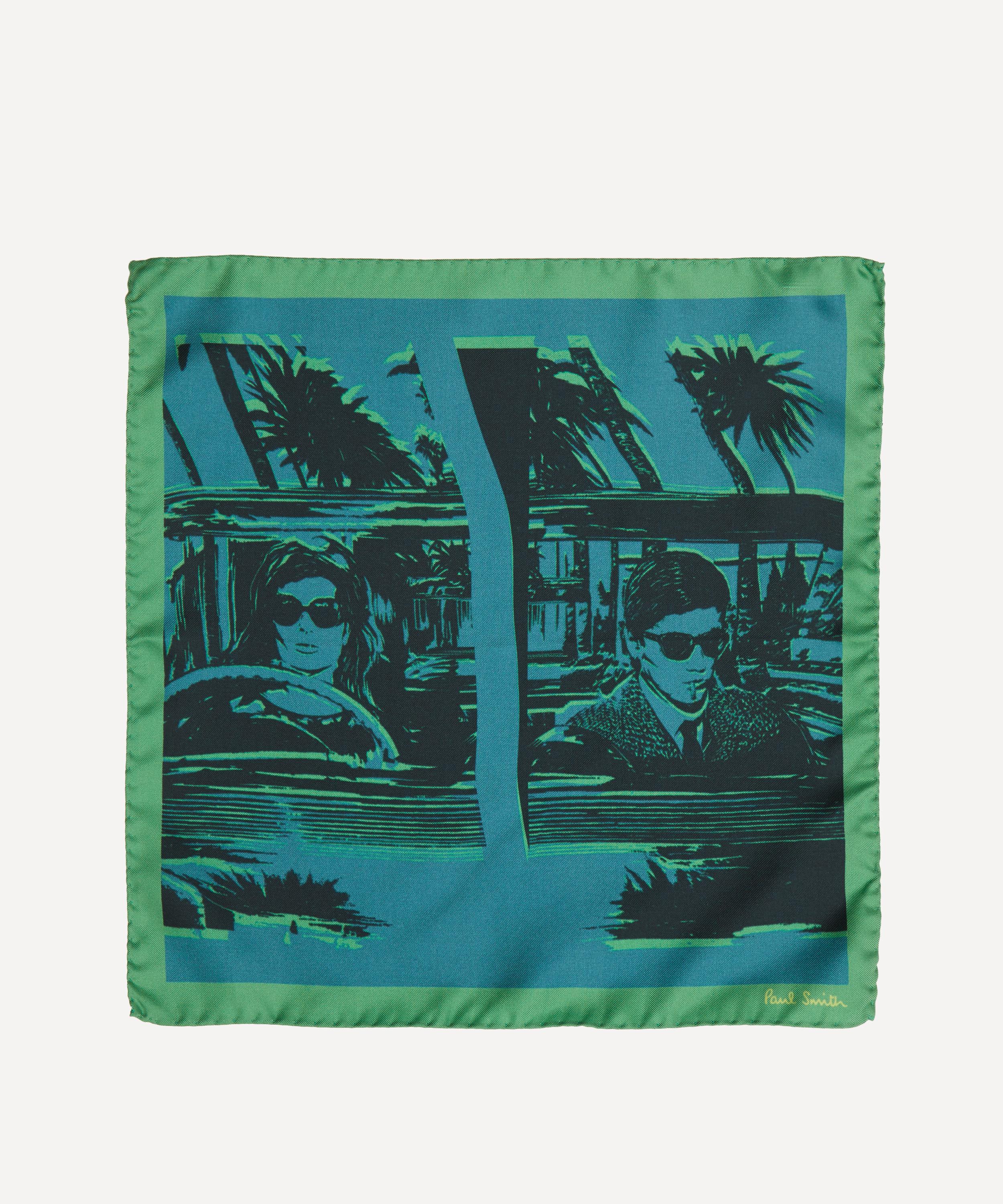 Quintessentially British brand Paul Smith gives the pocket square a typically irreverent update with a getaway tableaux print.