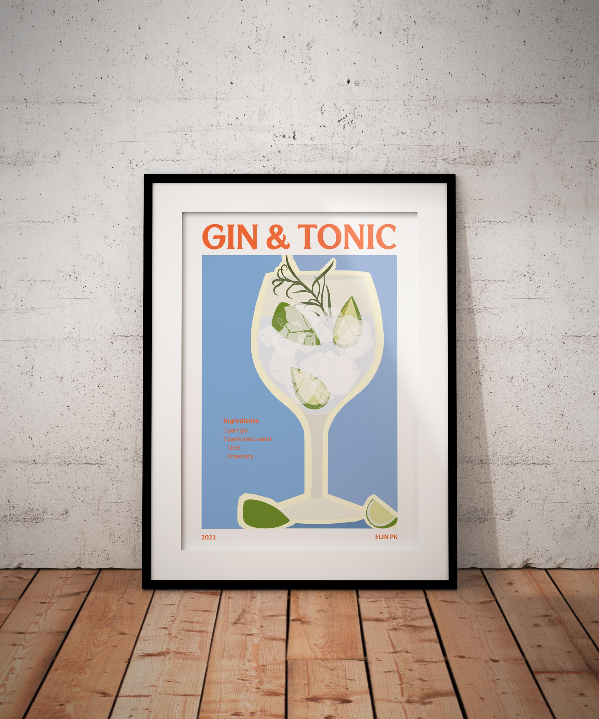 The Gin & Tonic print from Elin PK forms part of a collection of cocktail inspired designs, created by Swedish artist and illustrator Elin Palmaer Karlsson.