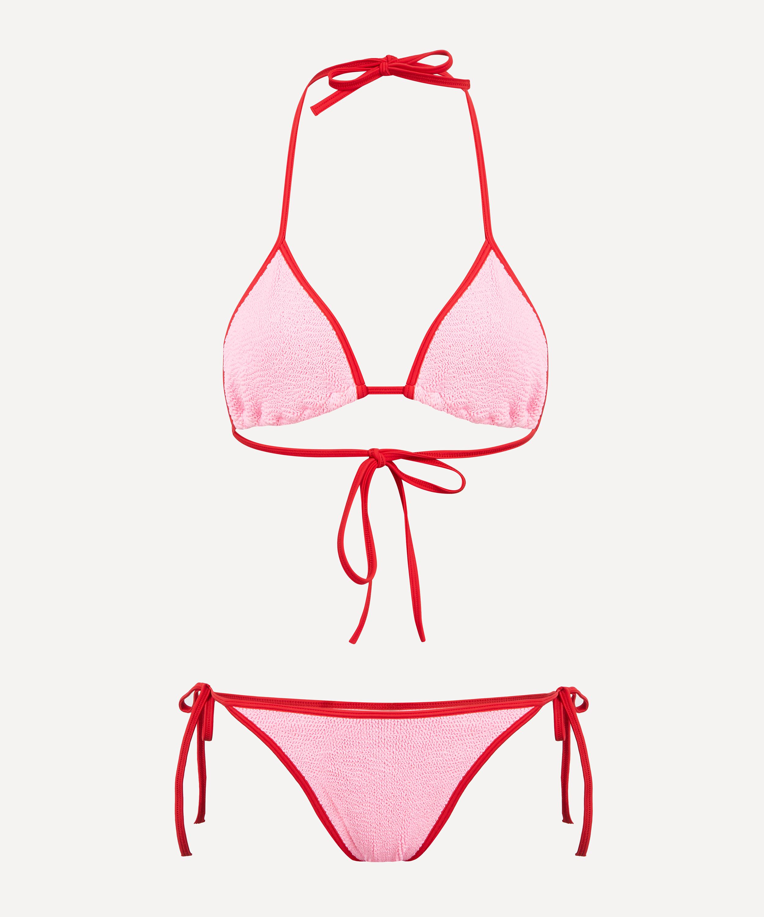 Once a classic, always a classic: the Gina Bubblegum Pink-Red Bikini from Hunza G remains an essential staple in swimwear.