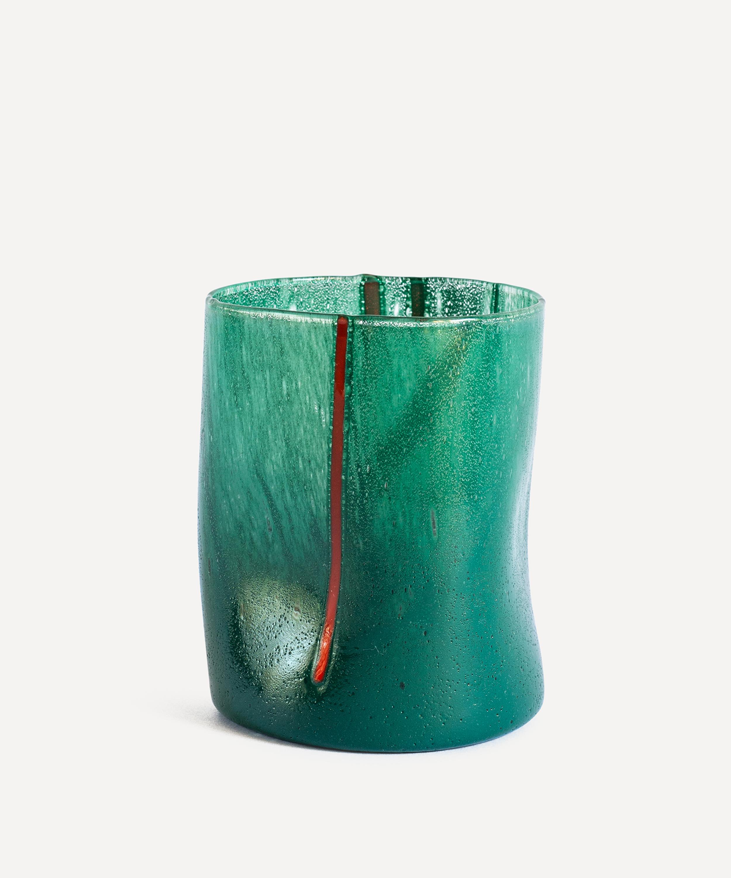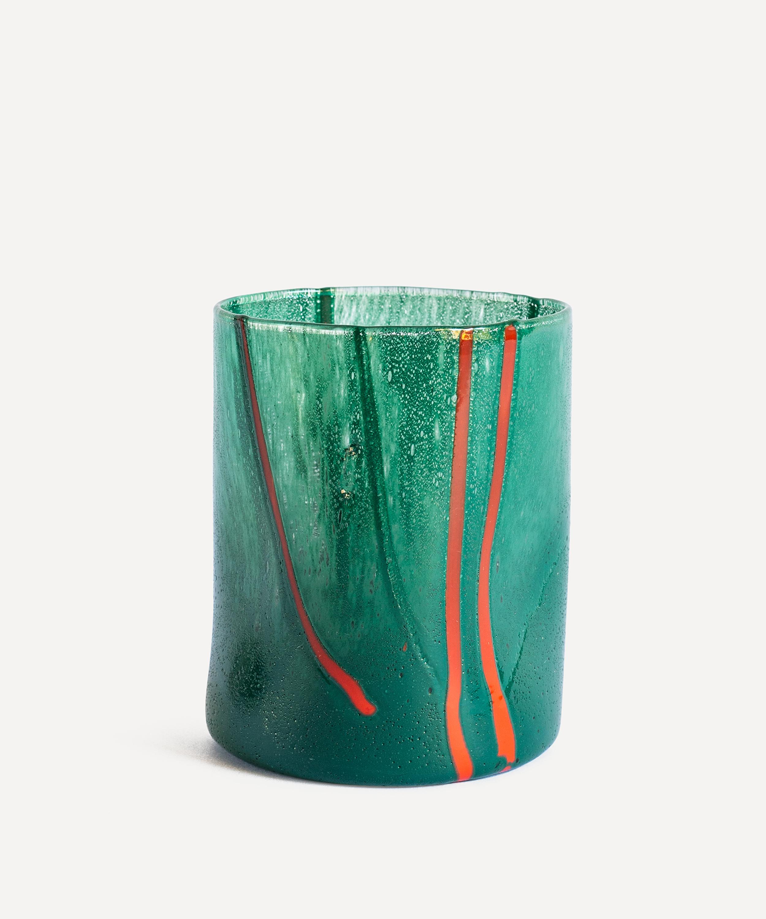 Part of the ‘Giro’ collection, meaning trip, tour and rotation in Italian, each glass is mouth-blown - the rotating motion causing the glass canes to slip and bend forging unique patterns that reflect the multidirectional energy of the theme. Each featuring a duo of bold hues, fill with a signature cocktail when hosting, or mix and match with your existing glassware for a personal dining curation.