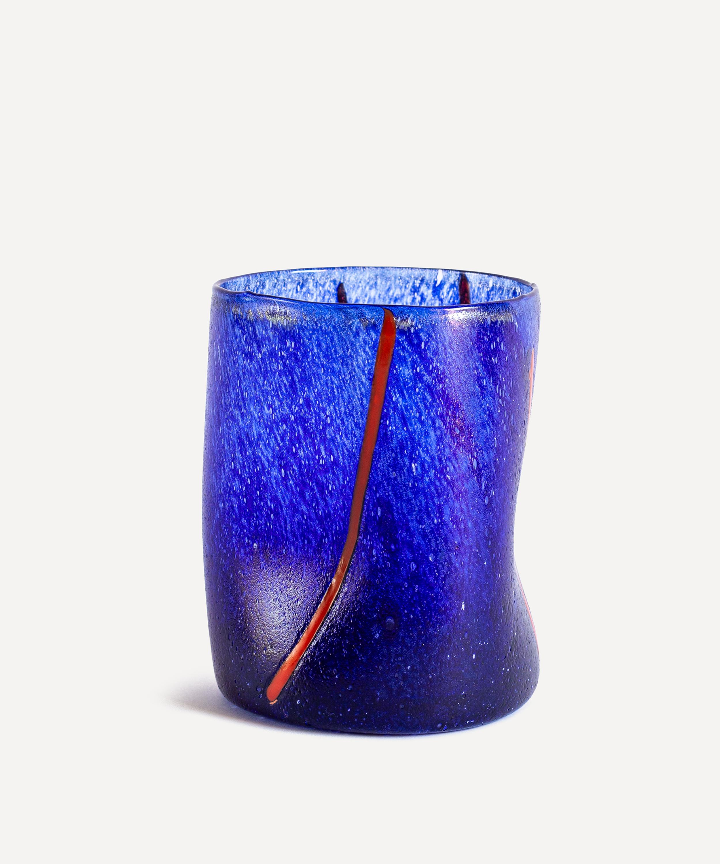 Part of the ‘Giro’ collection, meaning trip, tour and rotation in Italian, each glass is mouth-blown - the rotating motion causing the glass canes to slip and bend forging unique patterns that reflect the multidirectional energy of the theme. Each featuring a duo of bold hues, fill with a signature cocktail when hosting, or mix and match with your existing glassware for a personal dining curation.