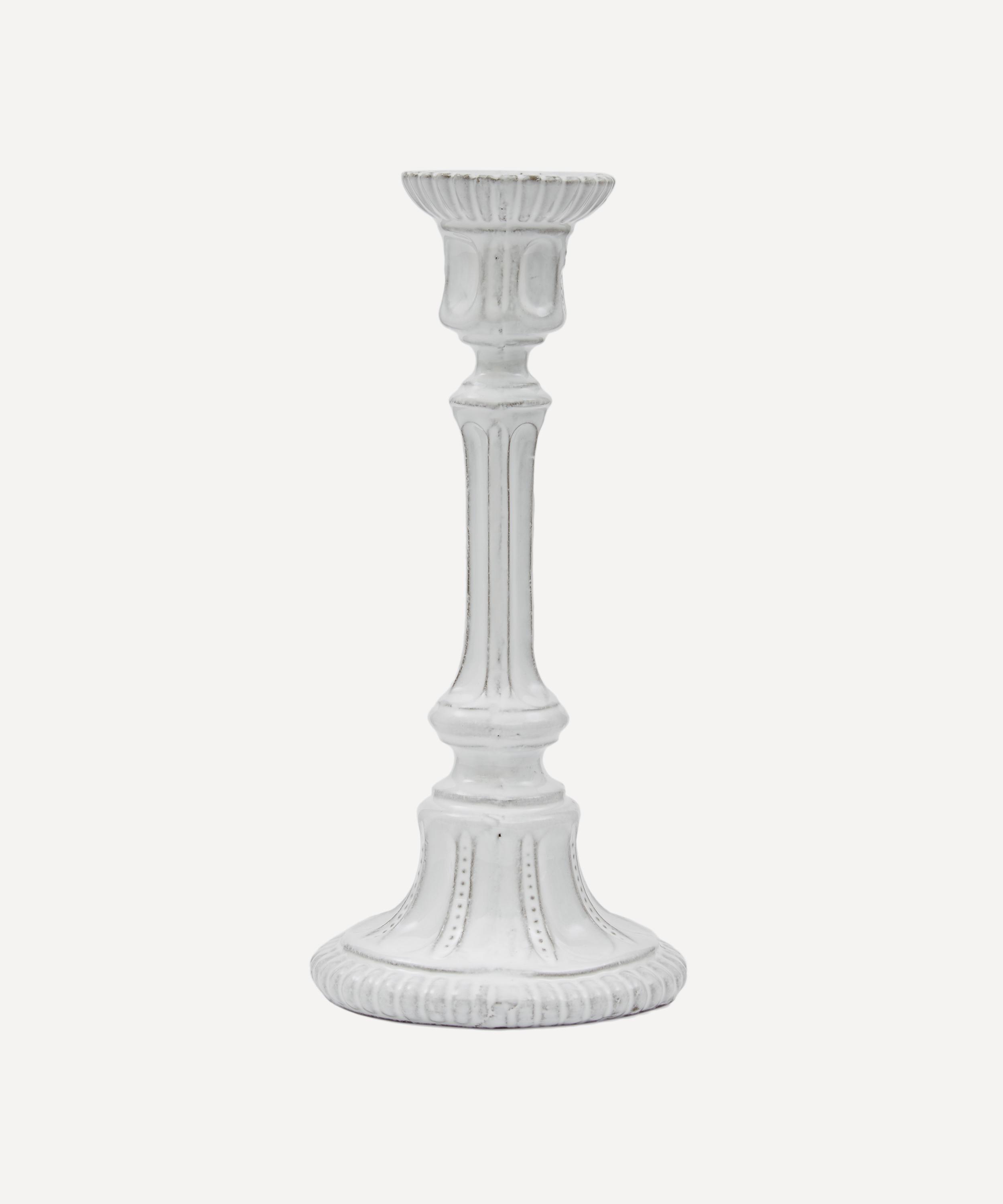 The Gisele candlestick holder from Astier de Villatte combines elegant design with the potential for rich, smoky home fragrance.